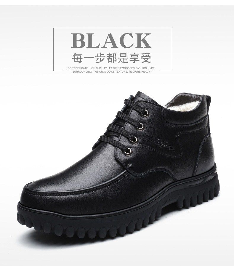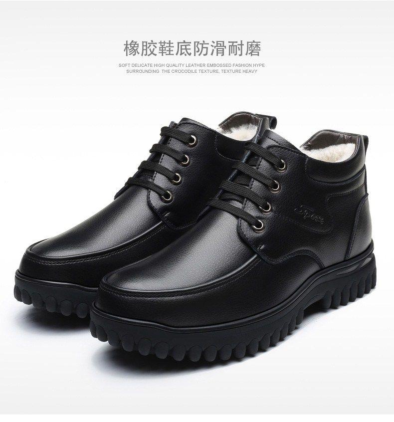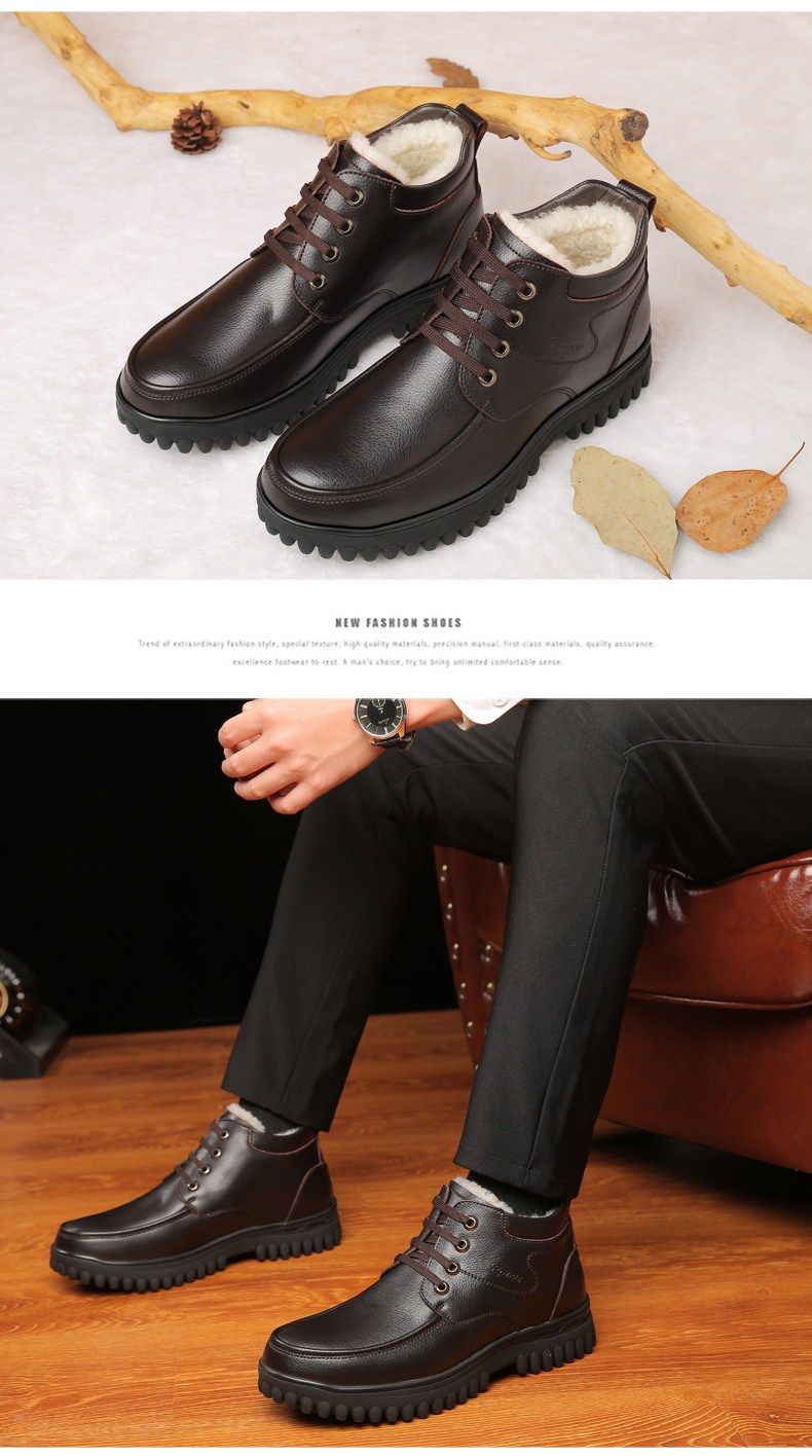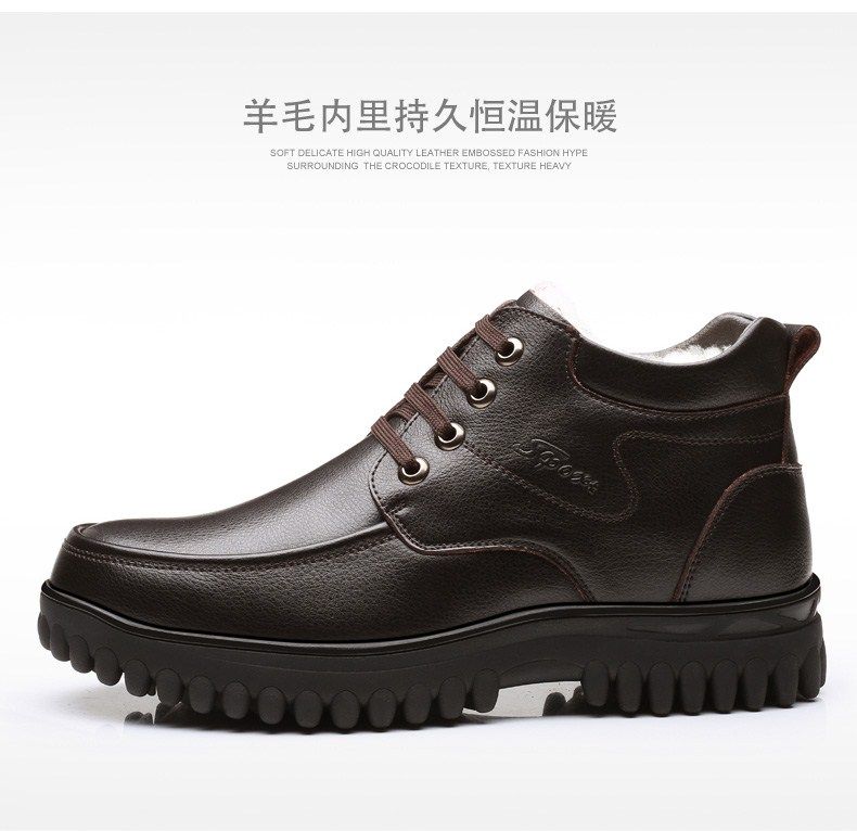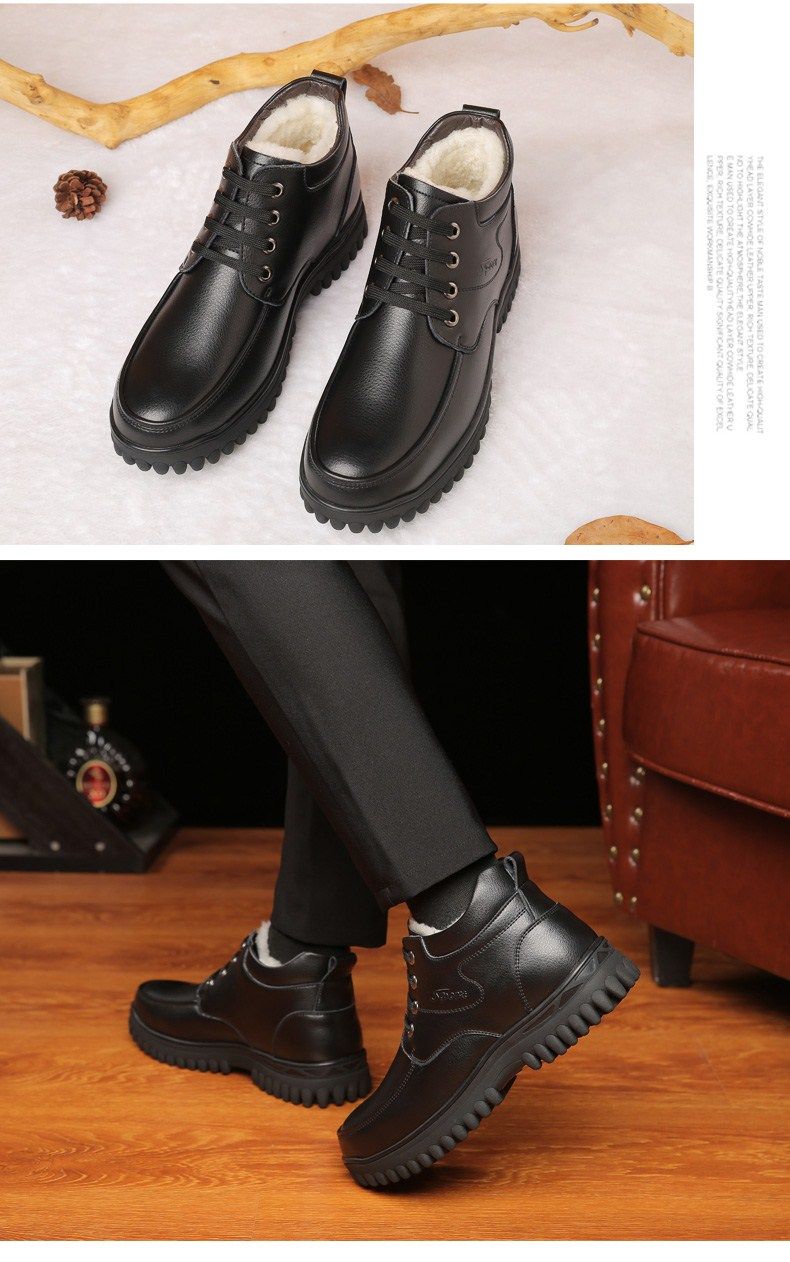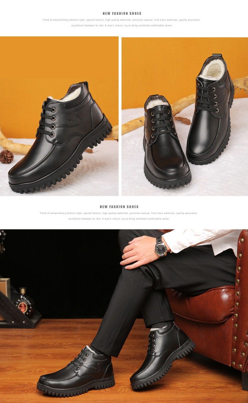Мужские зимние хлопковые ботинки 2025 года с флисом и толстой шерстью для тепла, мужские кожаные ботинки для мужчин среднего возраста, нескользящие.