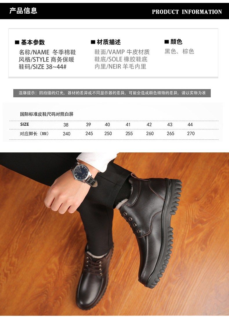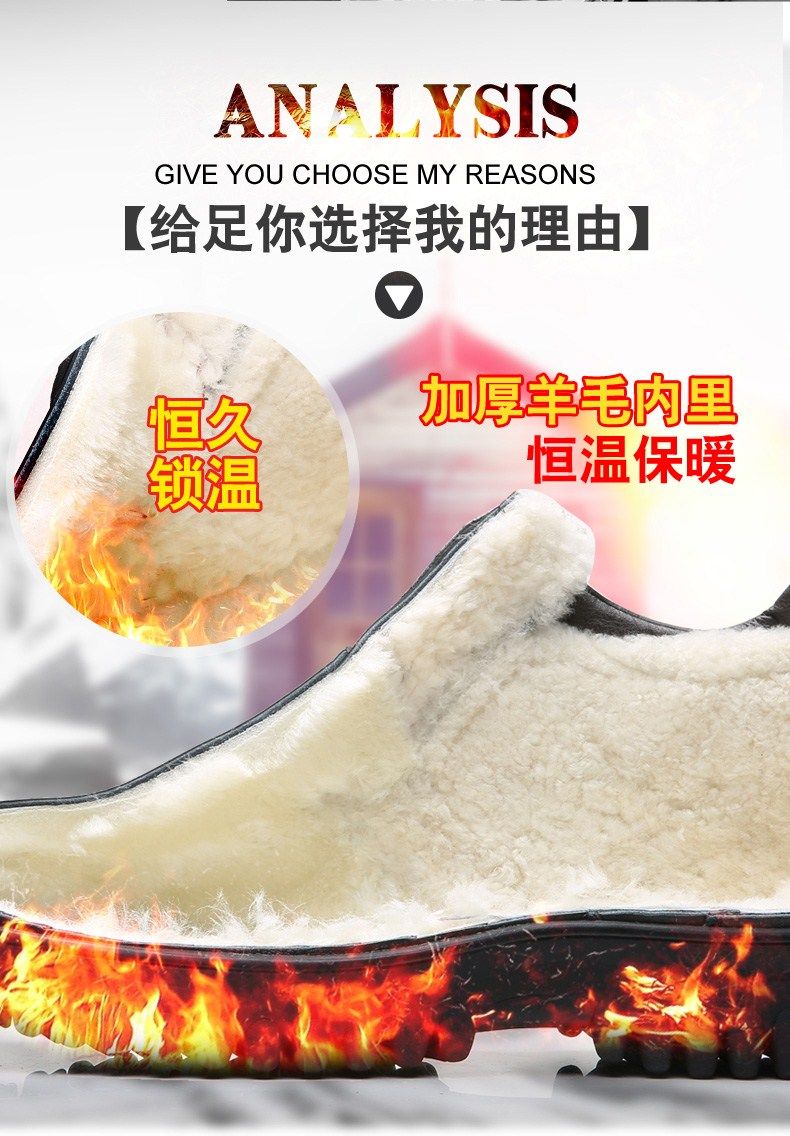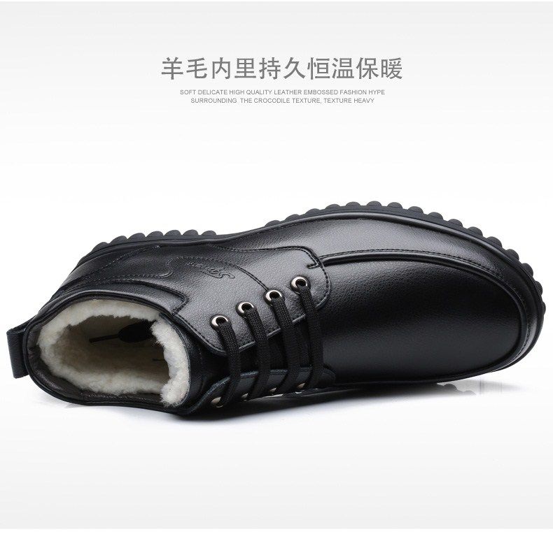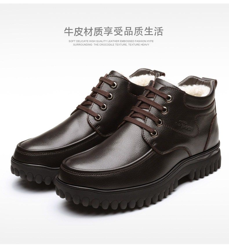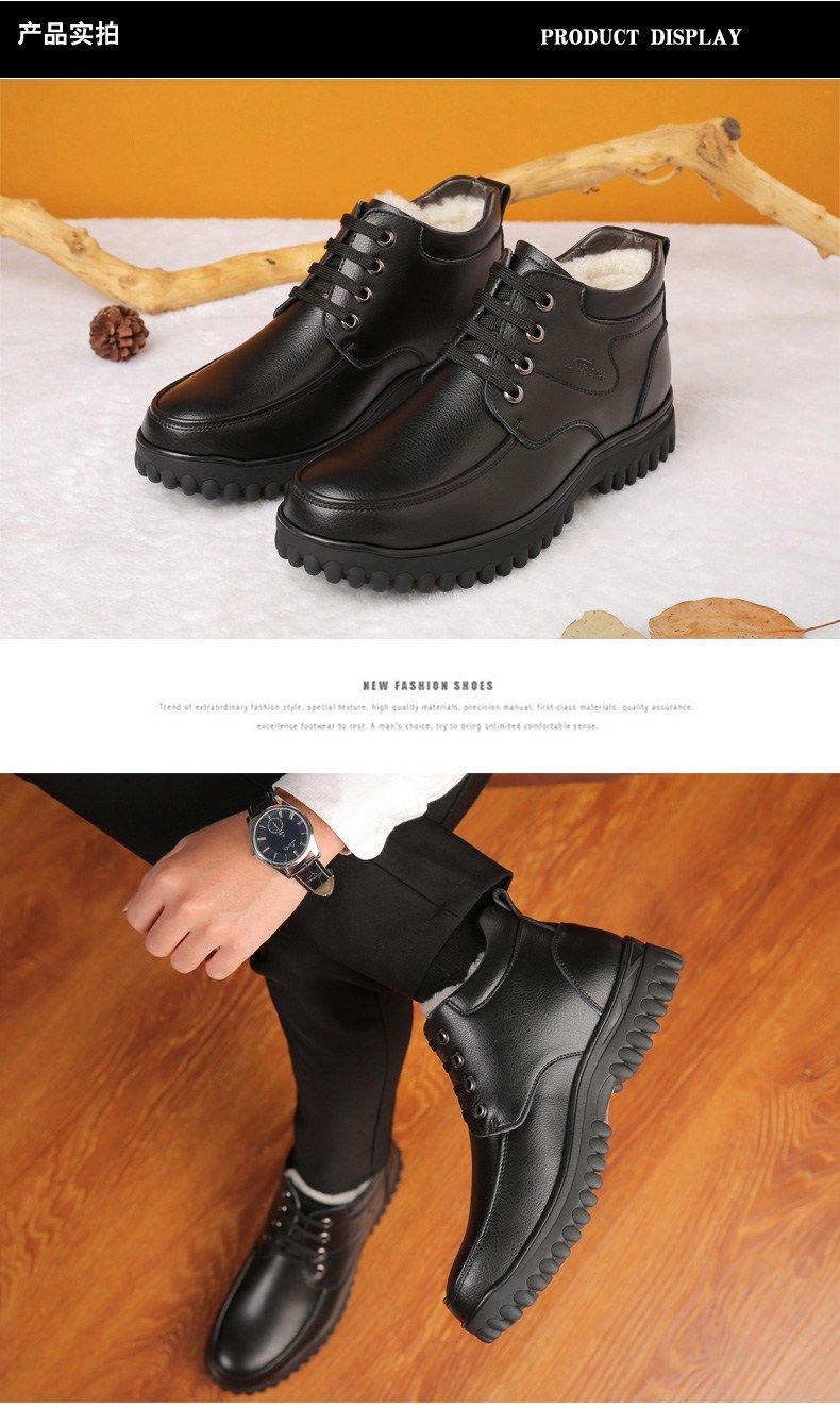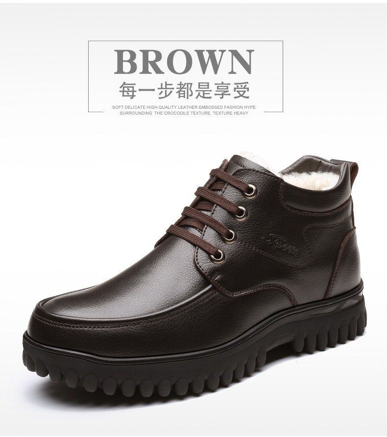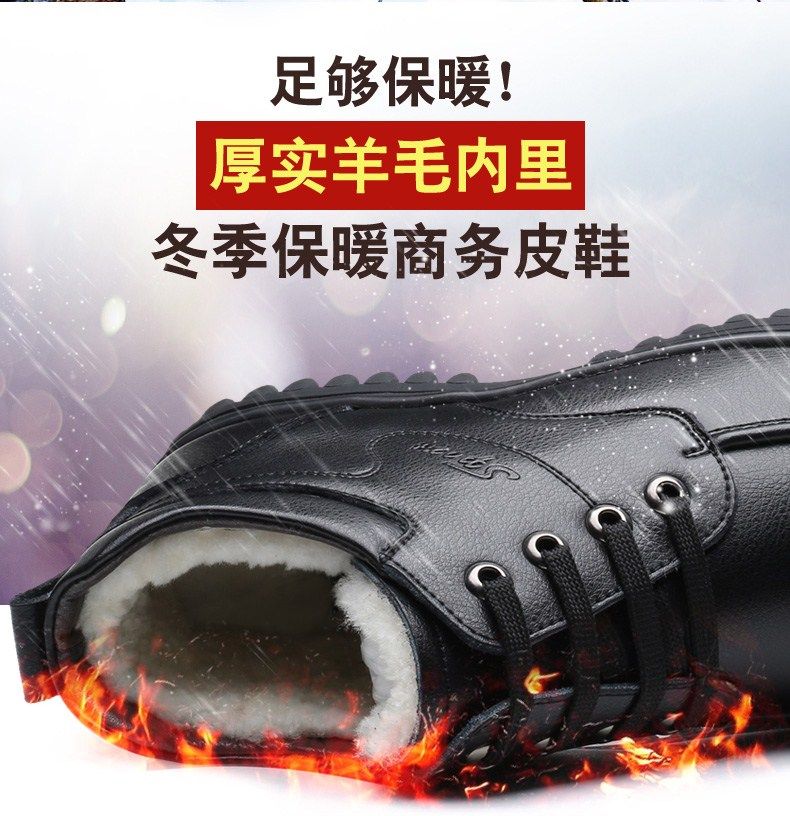 Мужские зимние хлопковые ботинки 2025 года с флисом и толстой шерстью для тепла, мужские кожаные ботинки для мужчин среднего возраста, нескользящие.