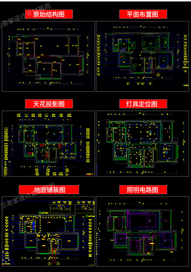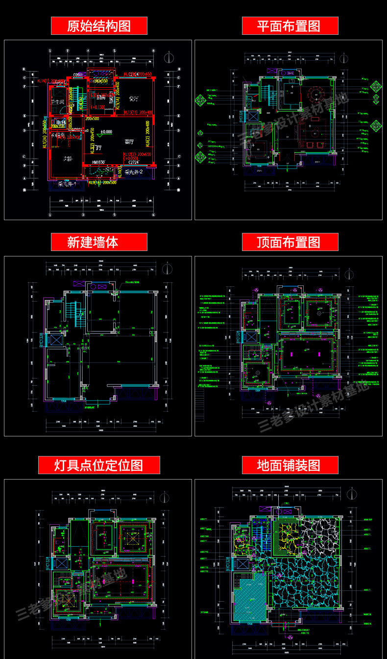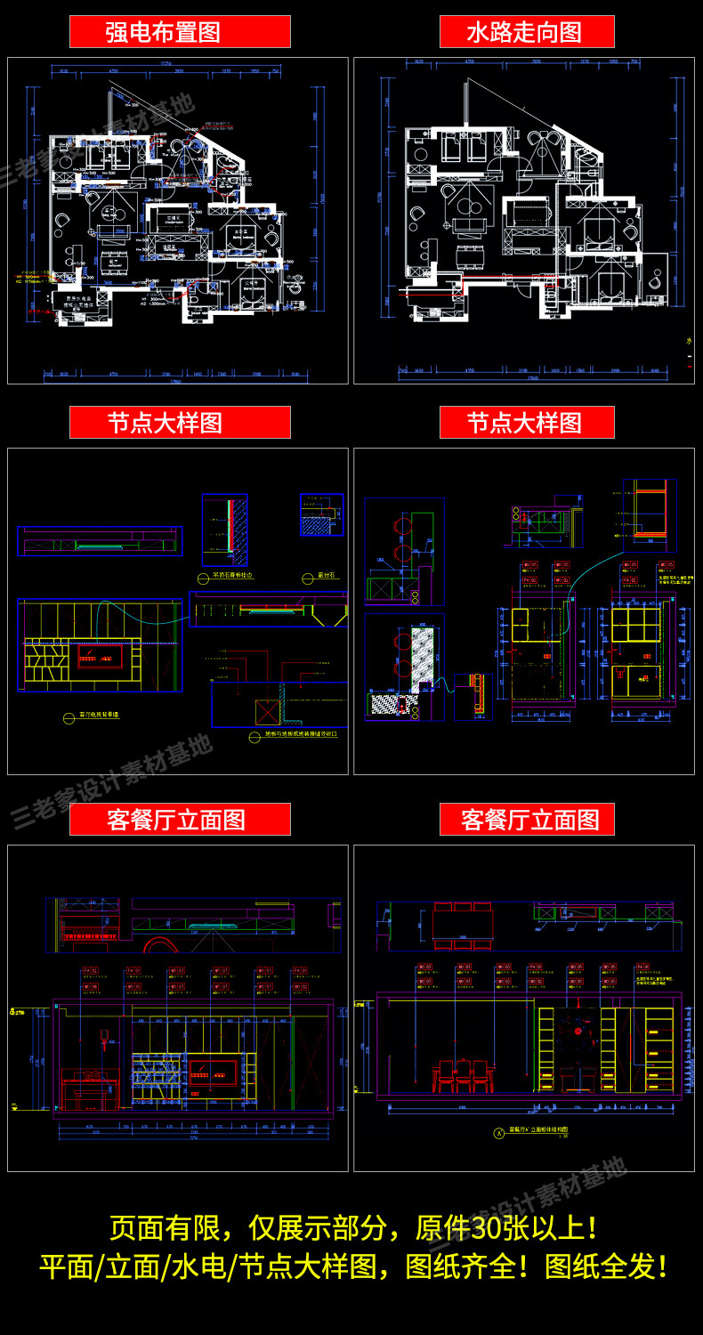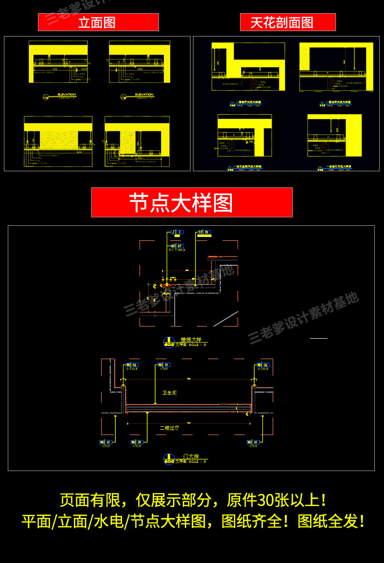 家装无主灯全套cad施工图纸平立面室内设计客厅卧室吊顶装修素材