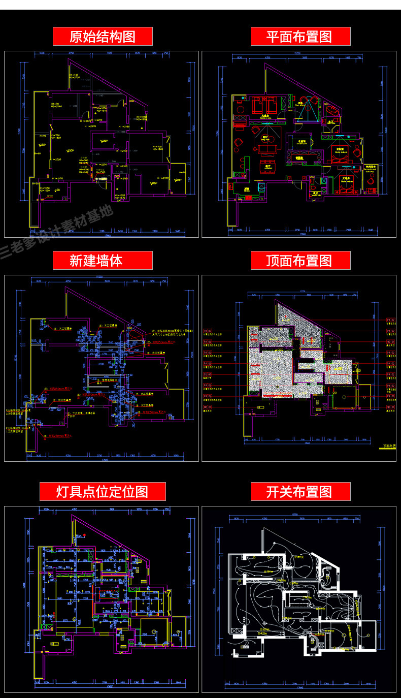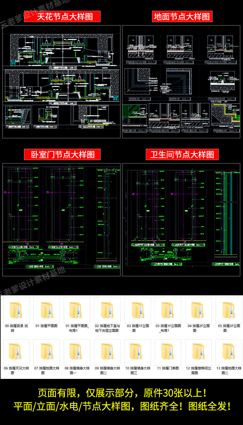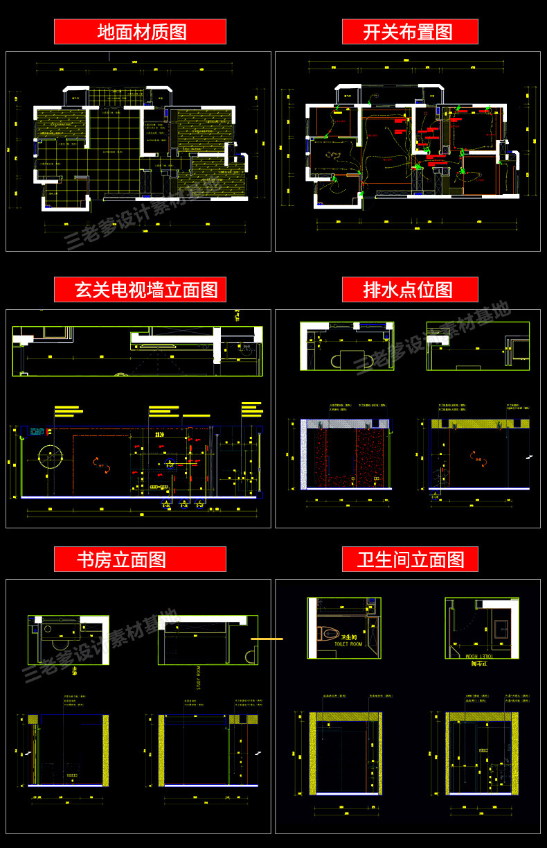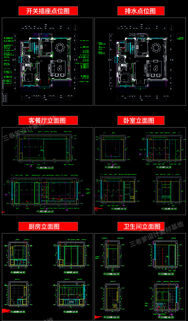 家装无主灯全套cad施工图纸平立面室内设计客厅卧室吊顶装修素材