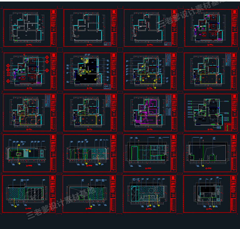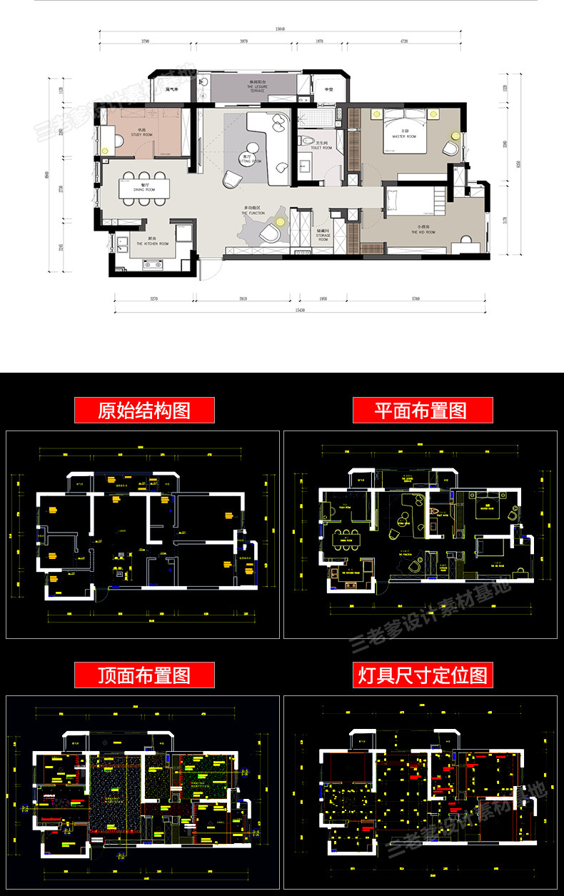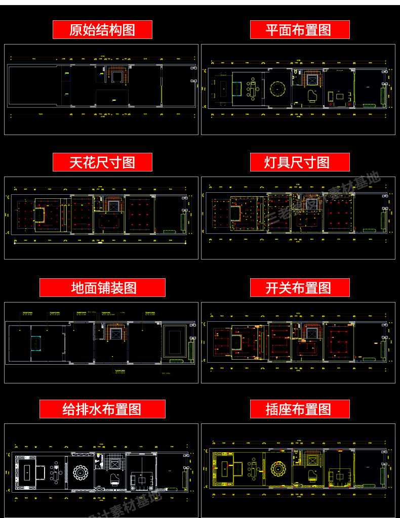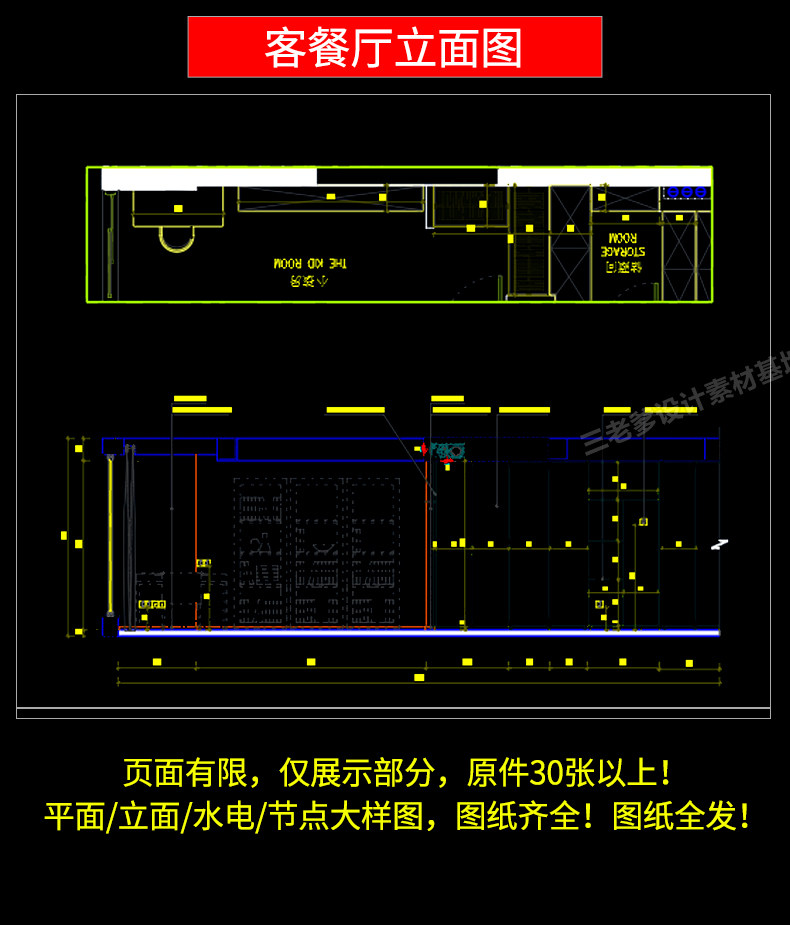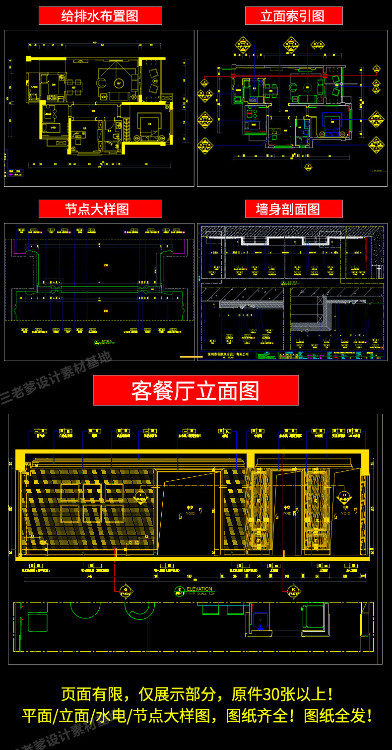 家装无主灯全套cad施工图纸平立面室内设计客厅卧室吊顶装修素材
