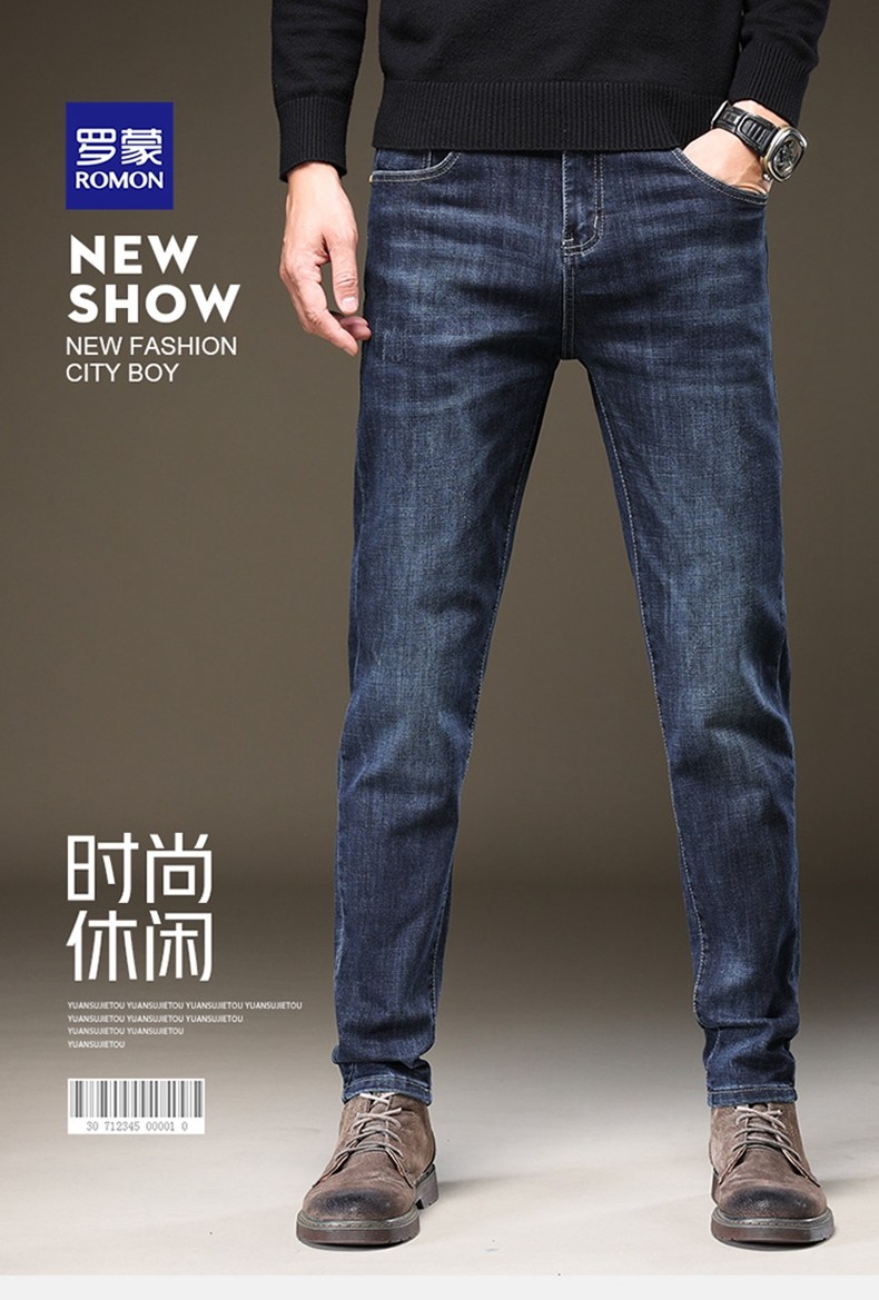 Romon Jeans for Men, New Spring and Autumn Straight-Leg Slim Fit, Stretchy, Versatile Casual Trendy Brand Long Pants for Boys
