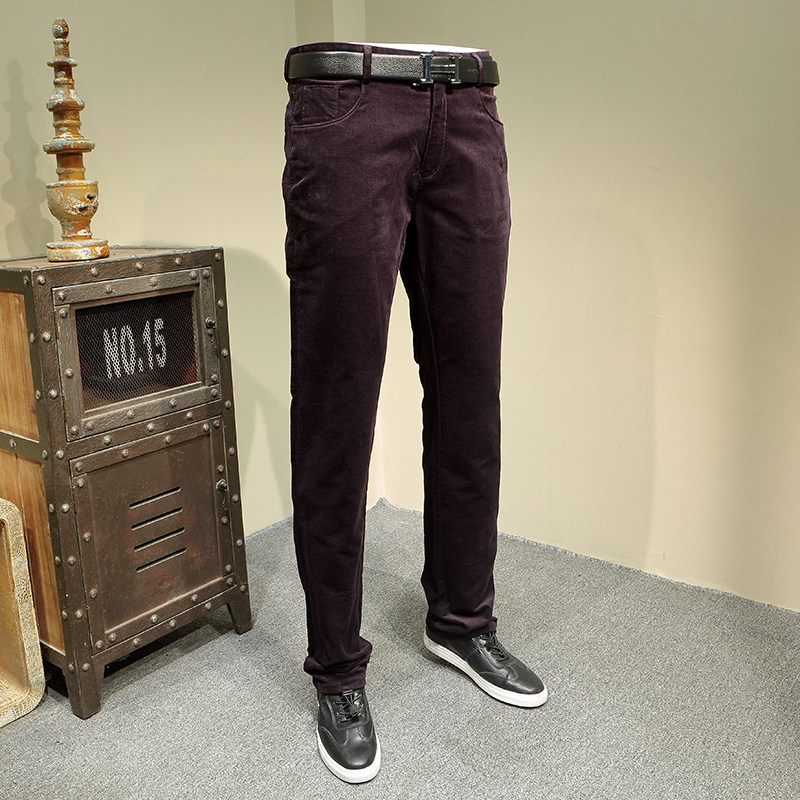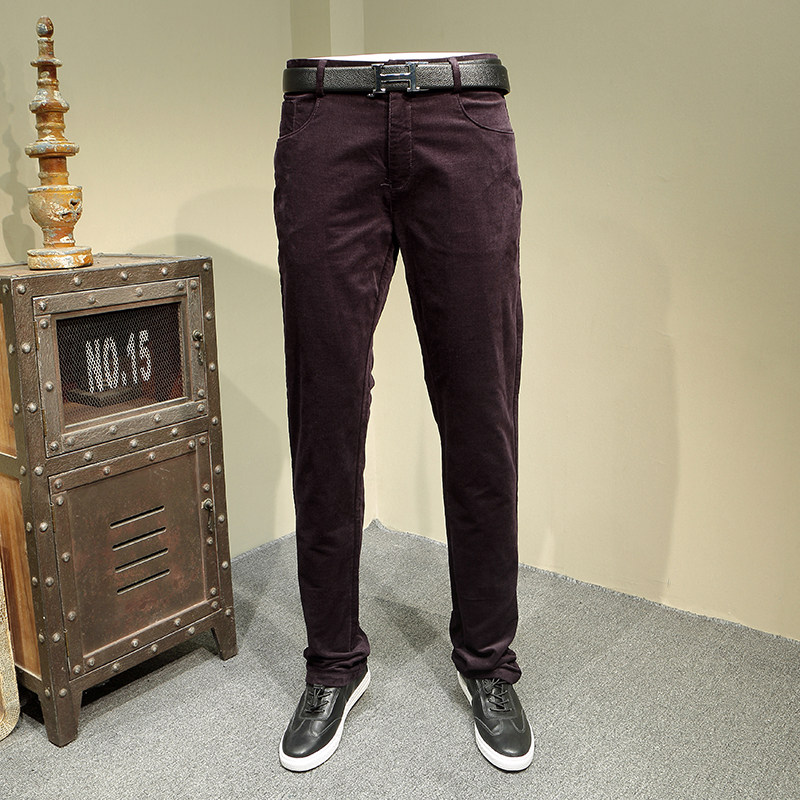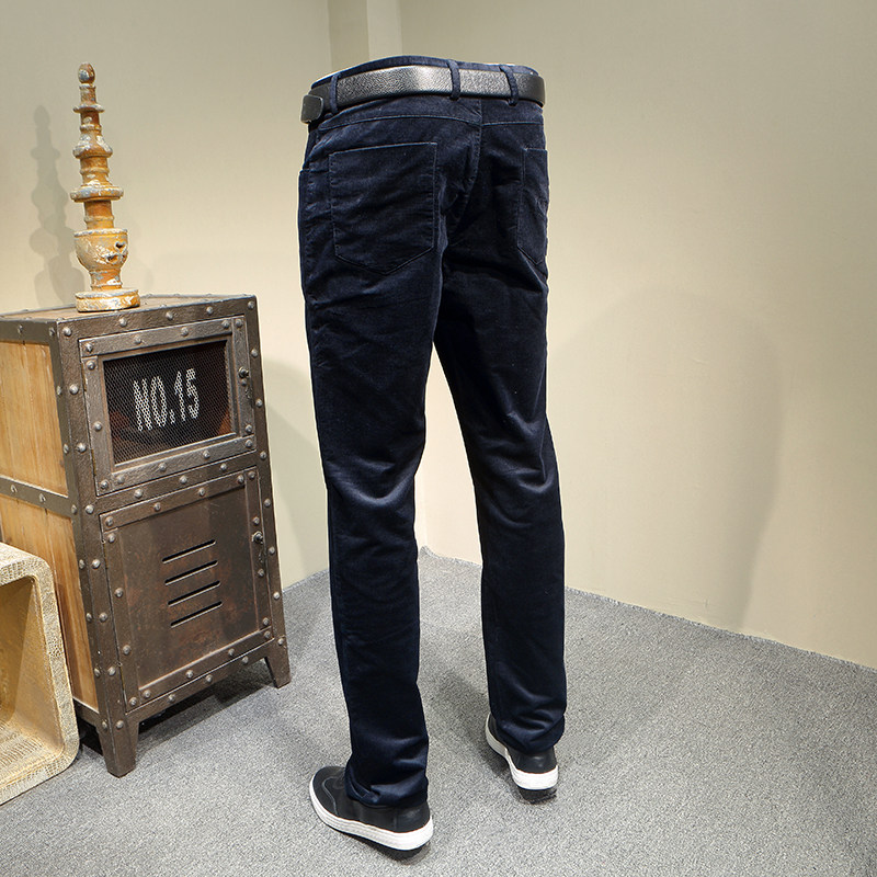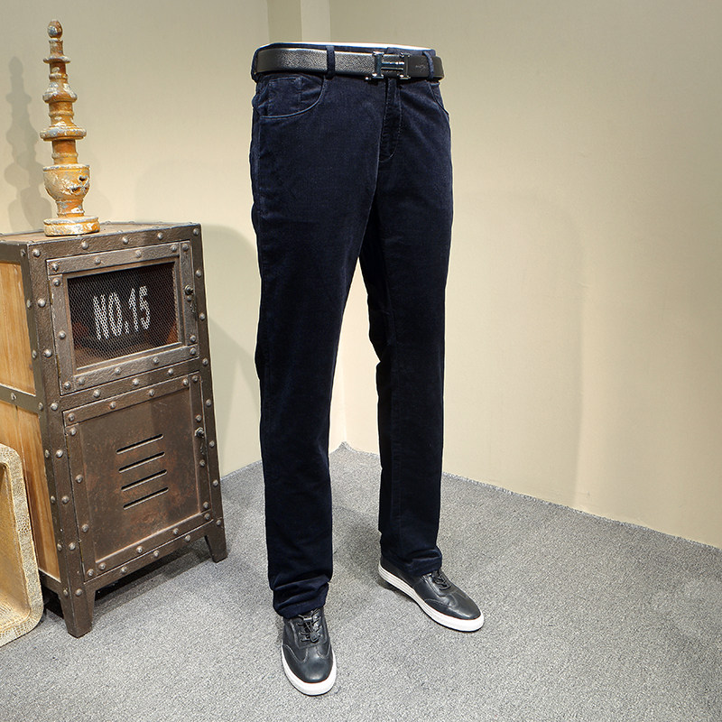 爱家剪标休闲裤男士秋冬平绒深色直筒中高腰微弹时尚休闲长裤6136