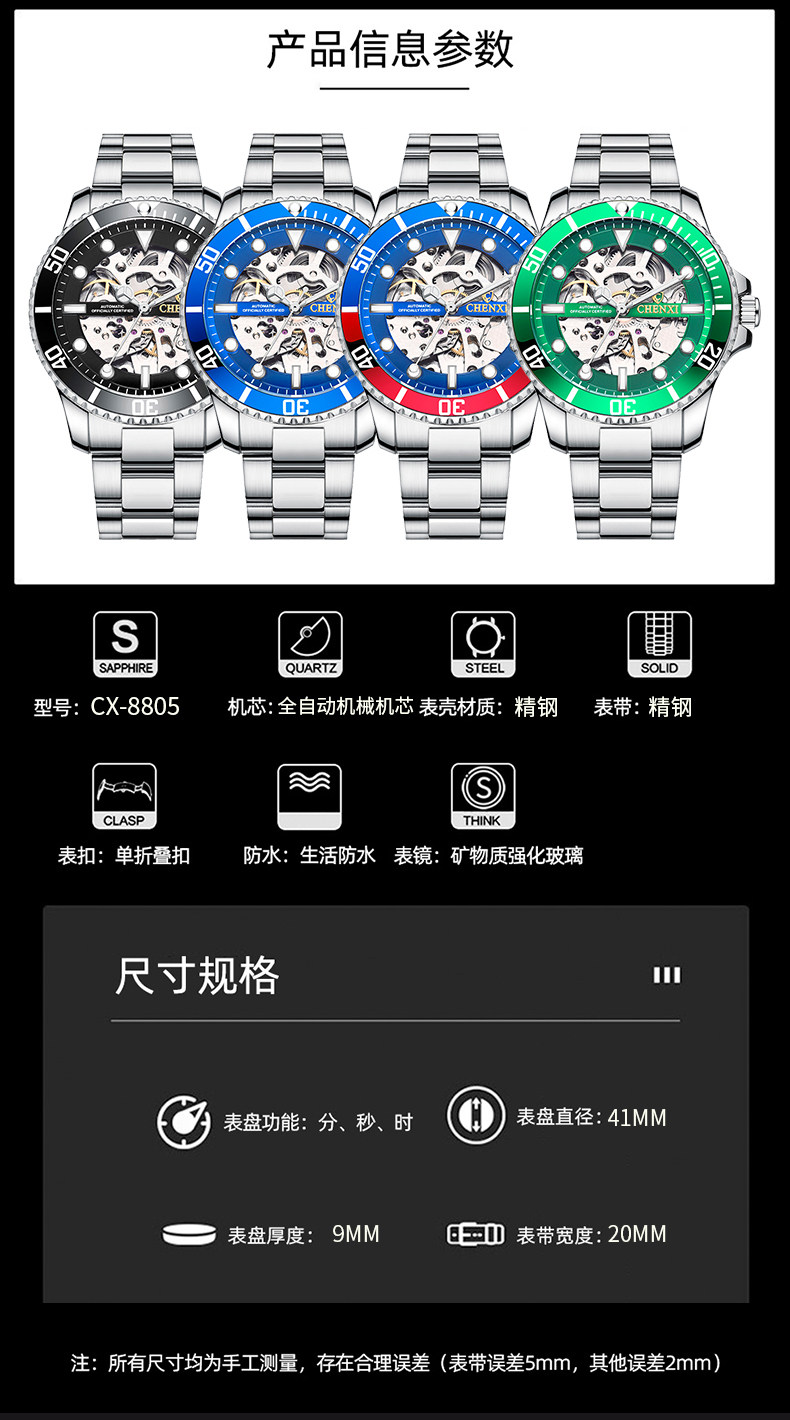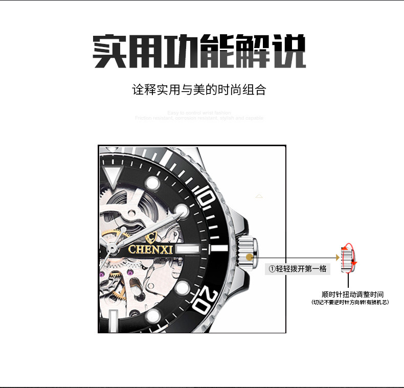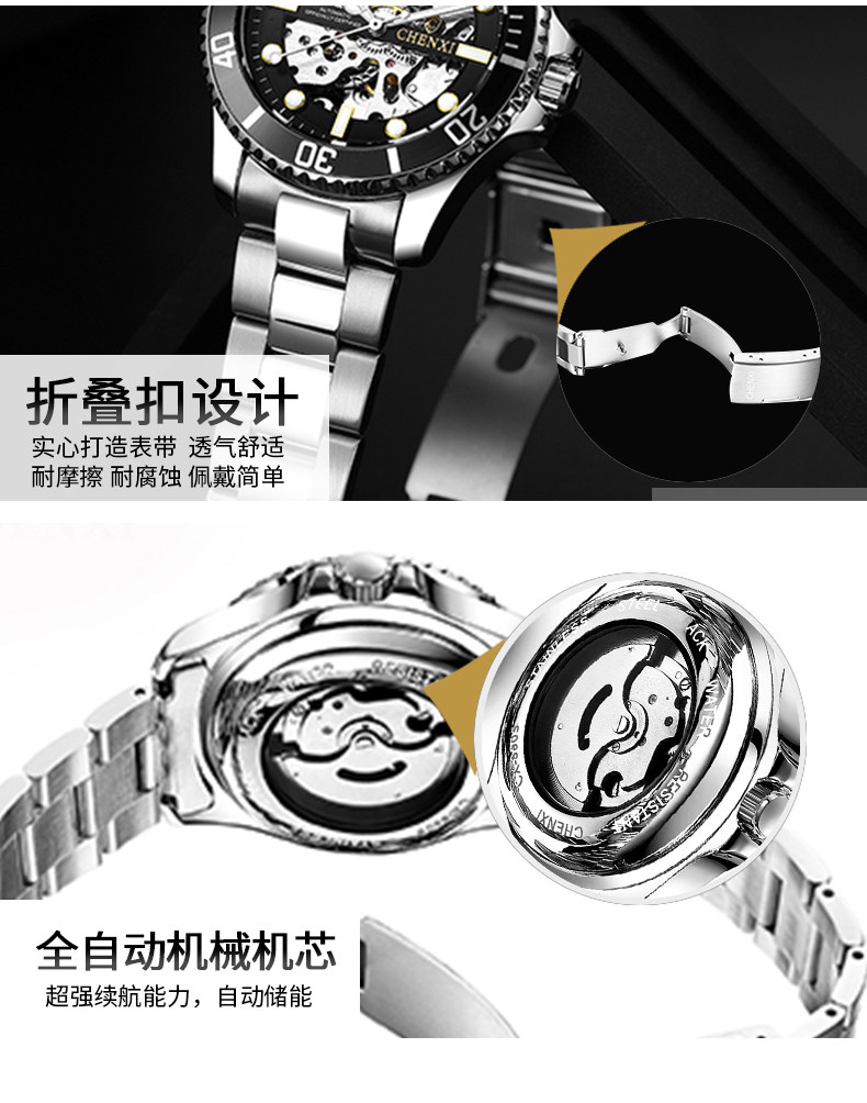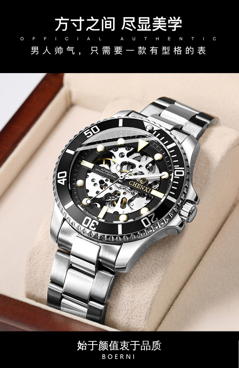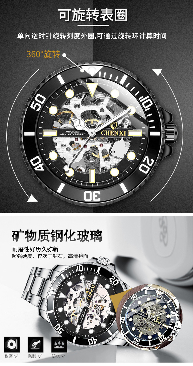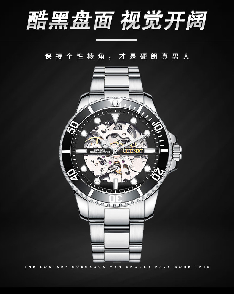 晨曦2022年新款炫酷时尚手表男士潮流夜光防水镂空全自动机械表男