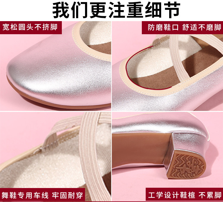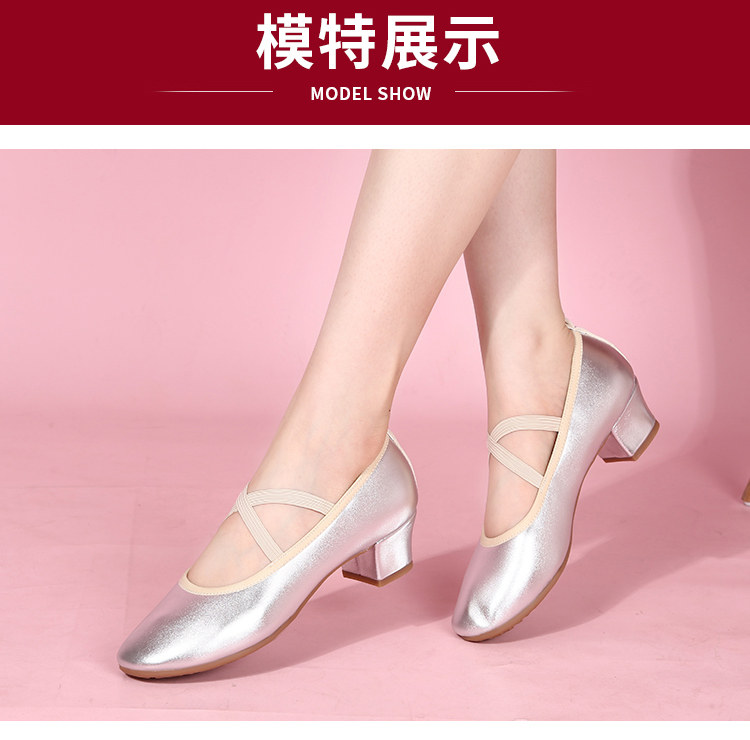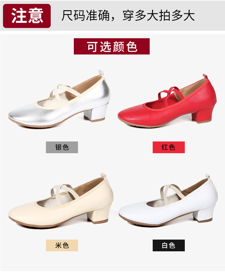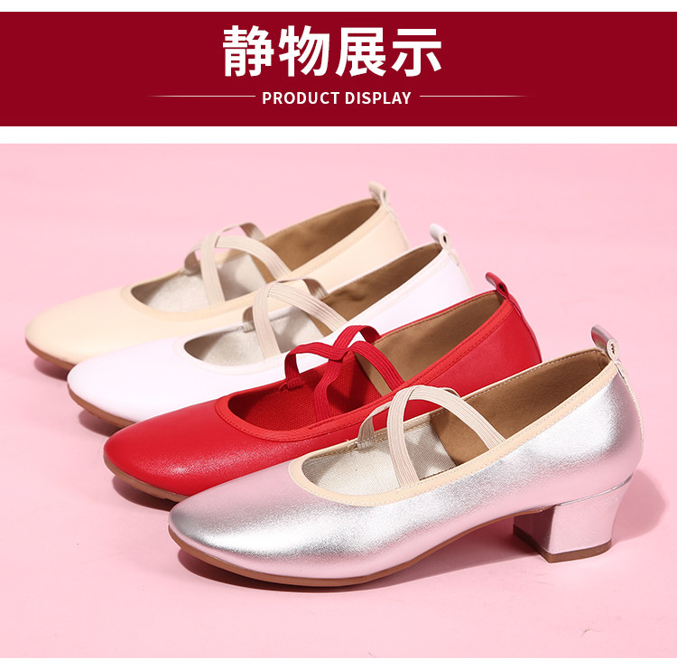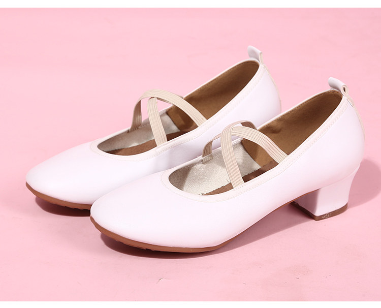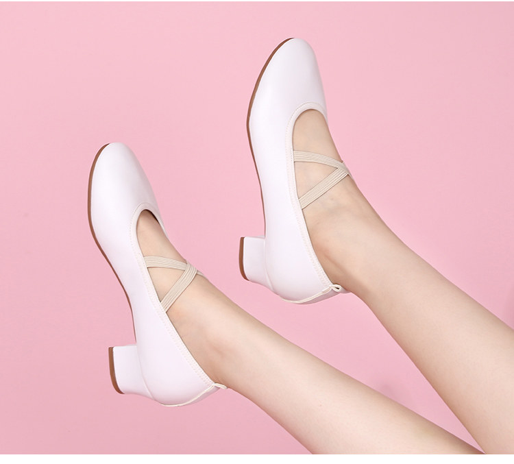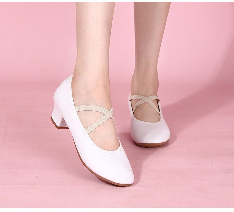 Four Seasons New Genuine Leather Chunky Heel Shoes, Spring Mid-Heel Soft Sole Shoes for Mothers and Mothers-In-Law, White Square Dance Leather Shoes, Dancing Shoes