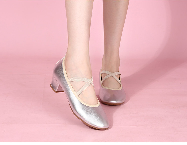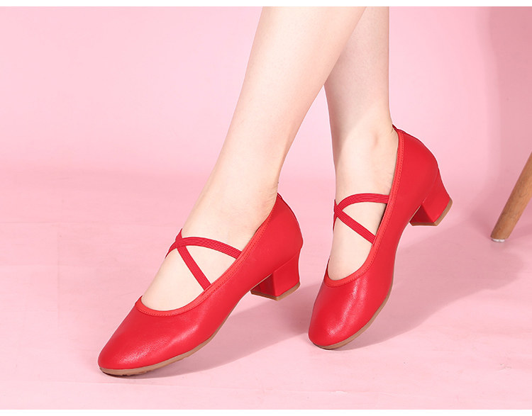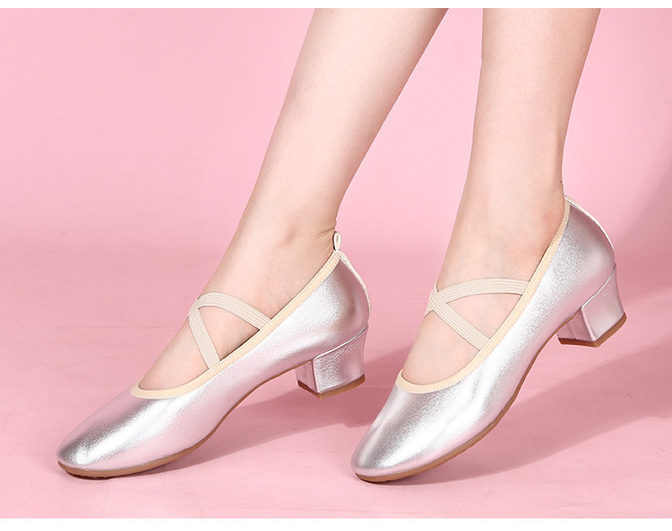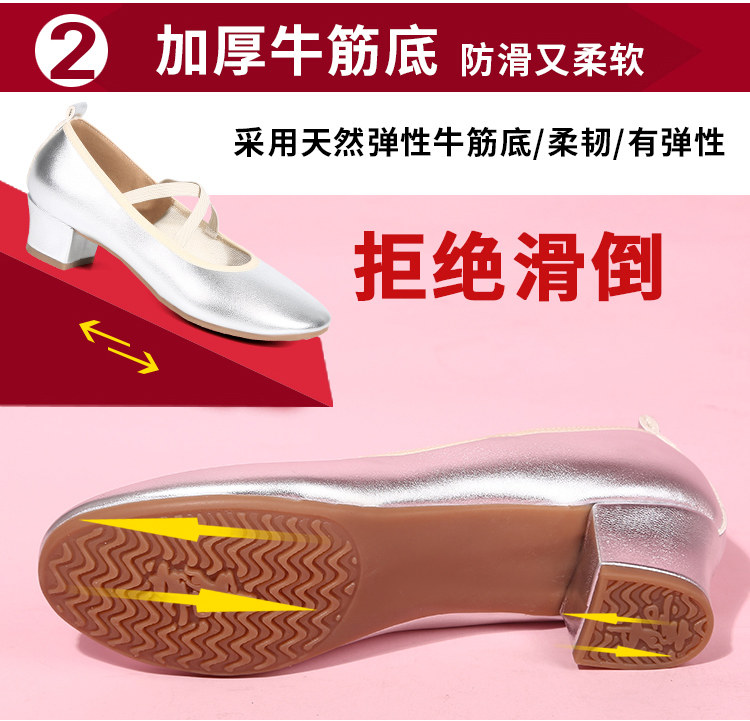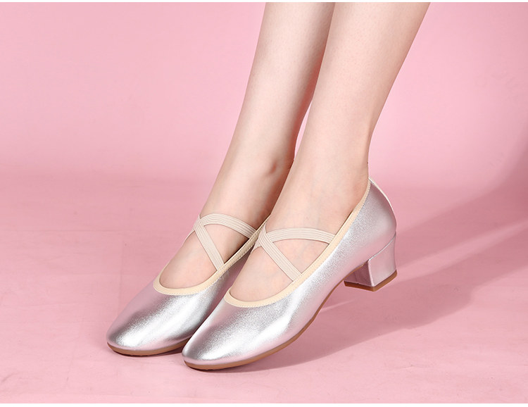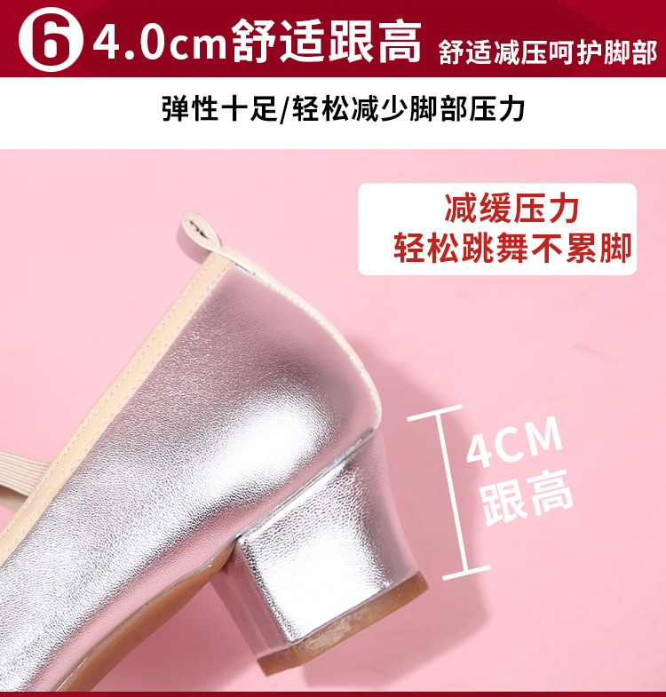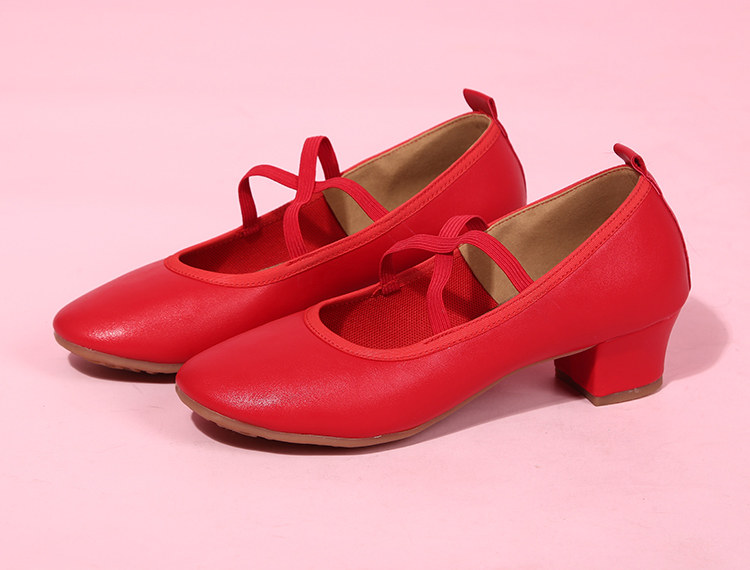 Four Seasons New Genuine Leather Chunky Heel Shoes, Spring Mid-Heel Soft Sole Shoes for Mothers and Mothers-In-Law, White Square Dance Leather Shoes, Dancing Shoes