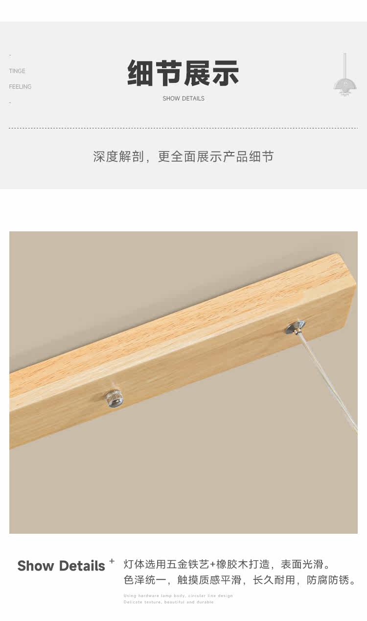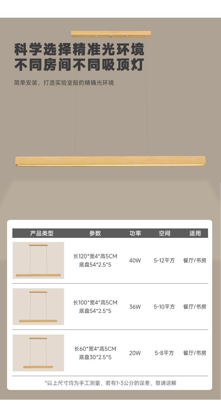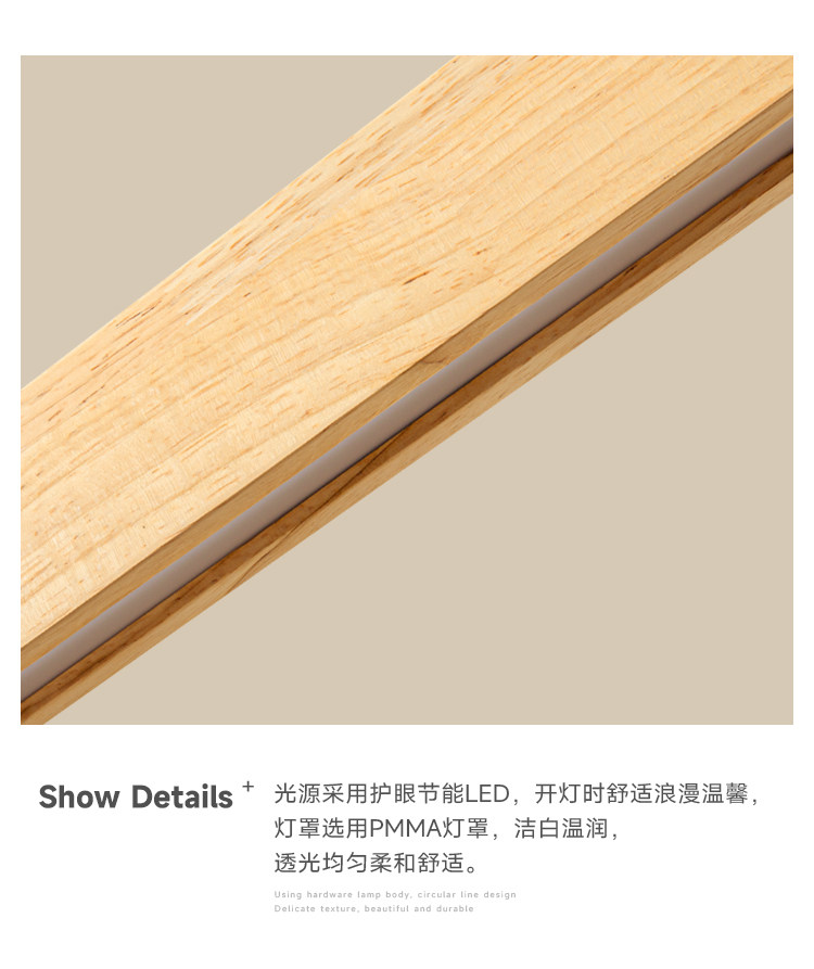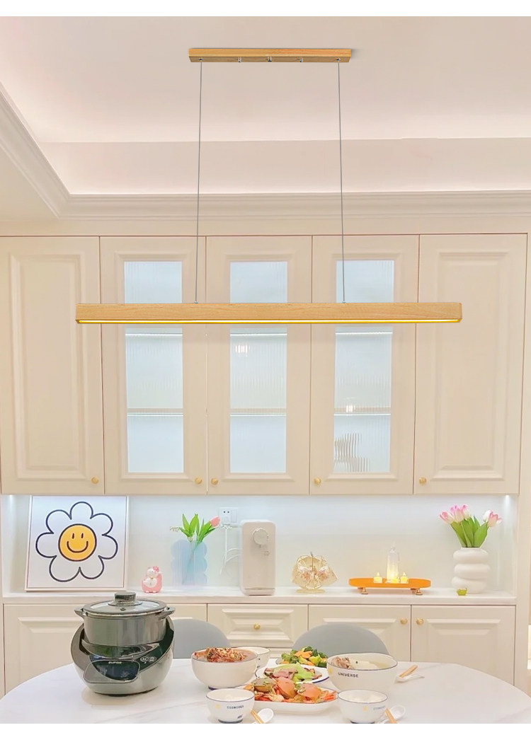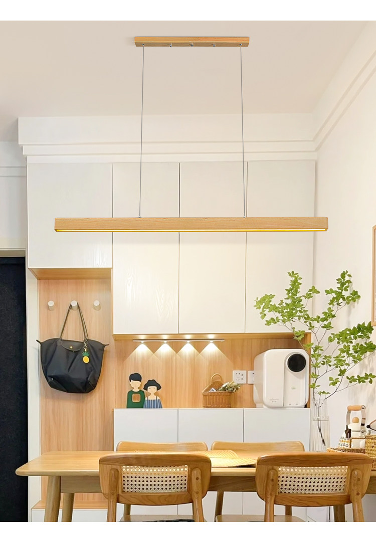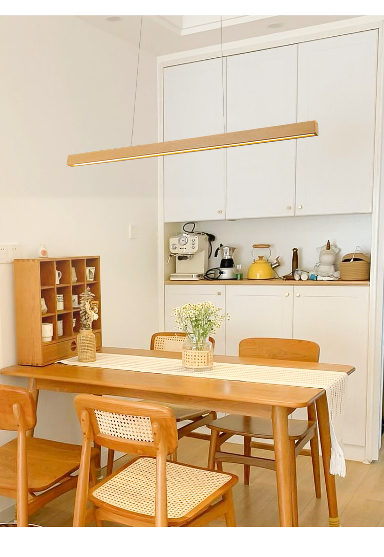 Modern Minimalist Solid Wood Long Linear Dining Room Pendant Light Japanese Style Natural Wood Eye-Protection Bar Table Minimalist Lighting Fixture