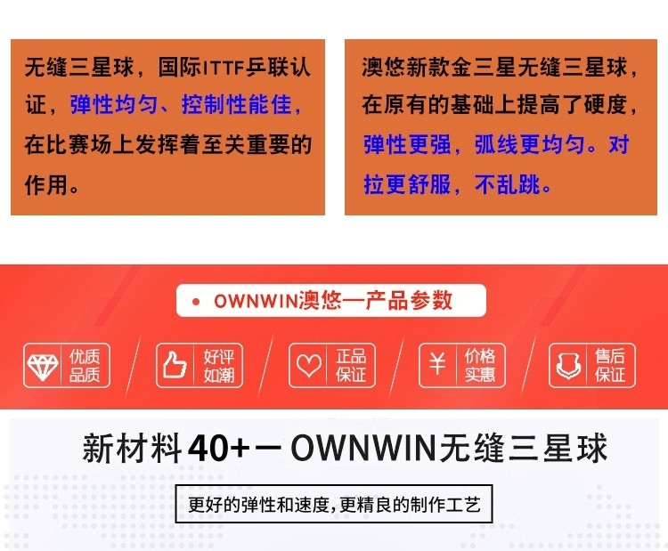 【煦程乒乓】新许绍发澳优无缝三星级新材料40+乒乓球比赛用球