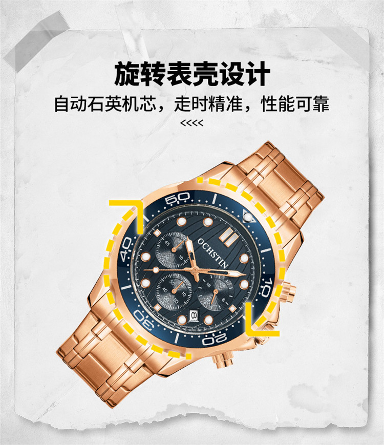 Japanese Genuine Store Watch Men's Mechanical Watch Fully Automatic Luminous Waterproof Multifunctional New Quartz Watch Steel Band Trendy