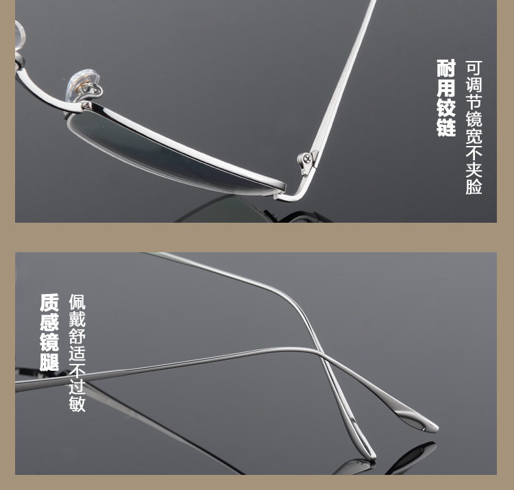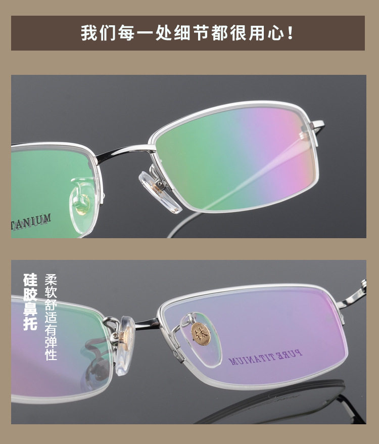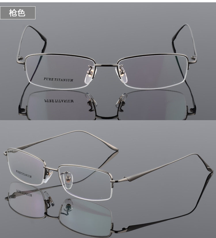 Business-Mode für Herren, reines Titan-Halbrand-Brillengestell, Brillengestell, klassisches ultraleichtes einteiliges Bügeldesign ohne Gummimanschette aus Titan