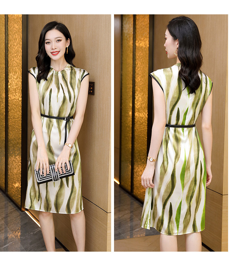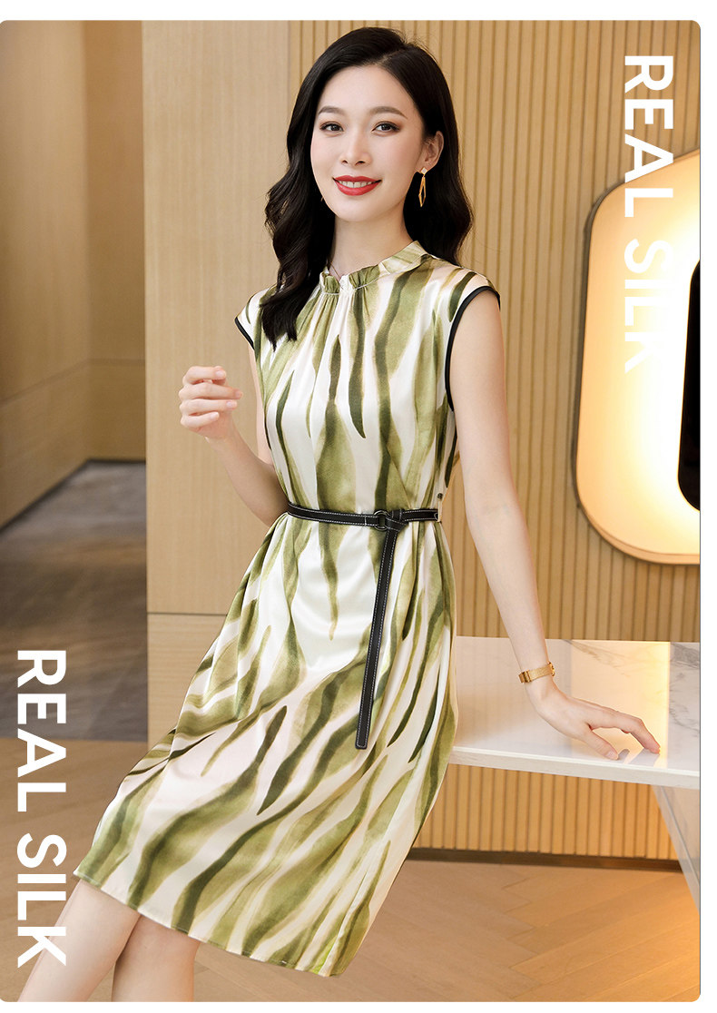 2025 nuevo vestido de seda pesada Hangzhou gran marca temperamento diseño de gama alta que cubre carne y falda de seda de morera adelgazante