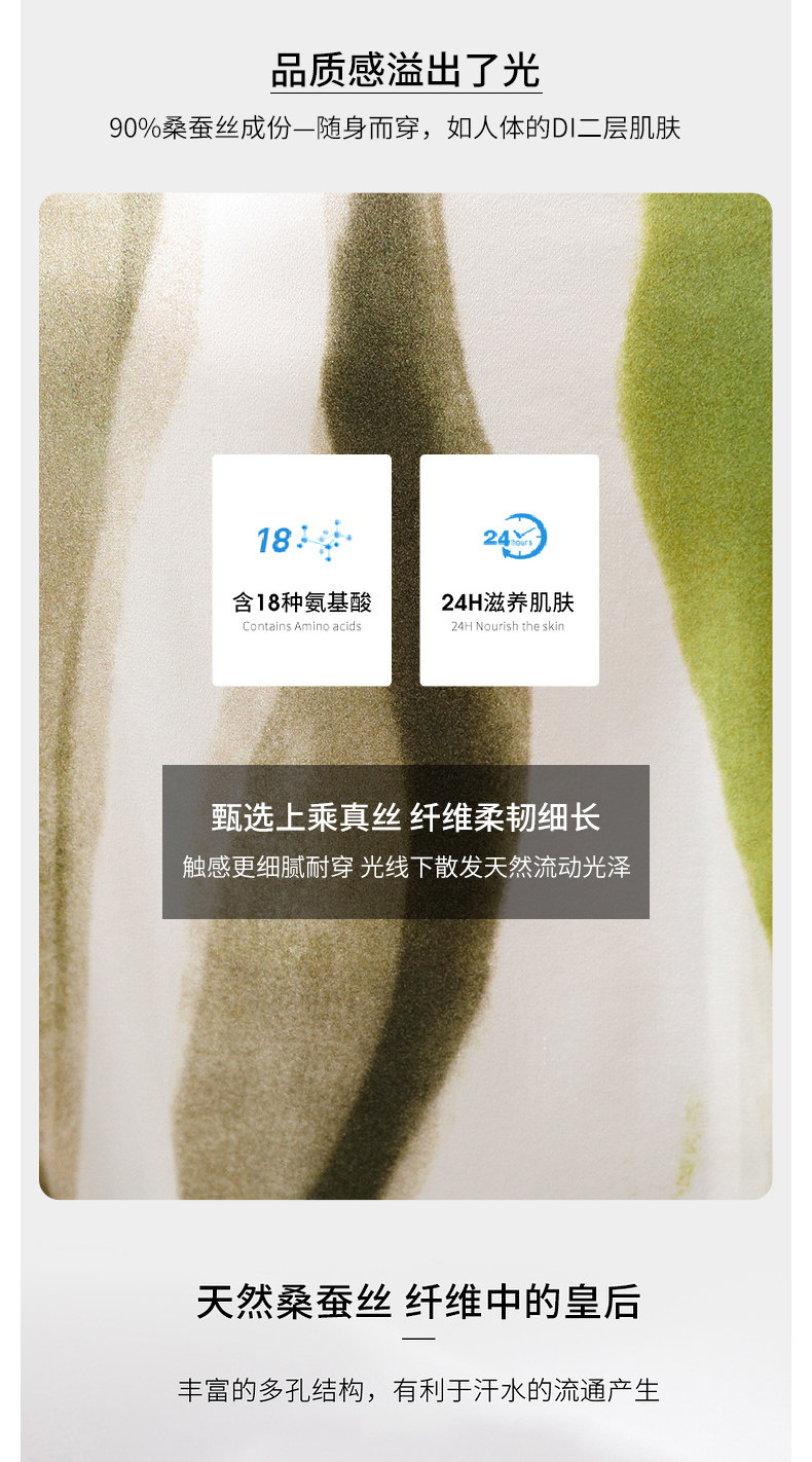 Composición de materiales Seda de morera 90% fibra elástica de poliuretano (spandex) 10%