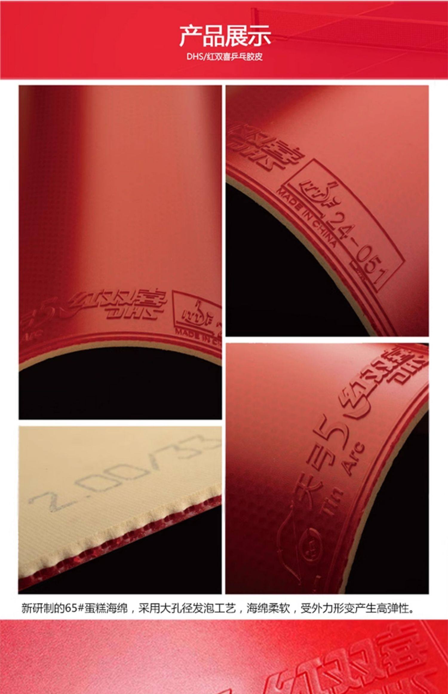 红双喜天弓3三 天弓5五蛋糕海绵内能涩性乒乓球胶皮球拍反胶套胶
