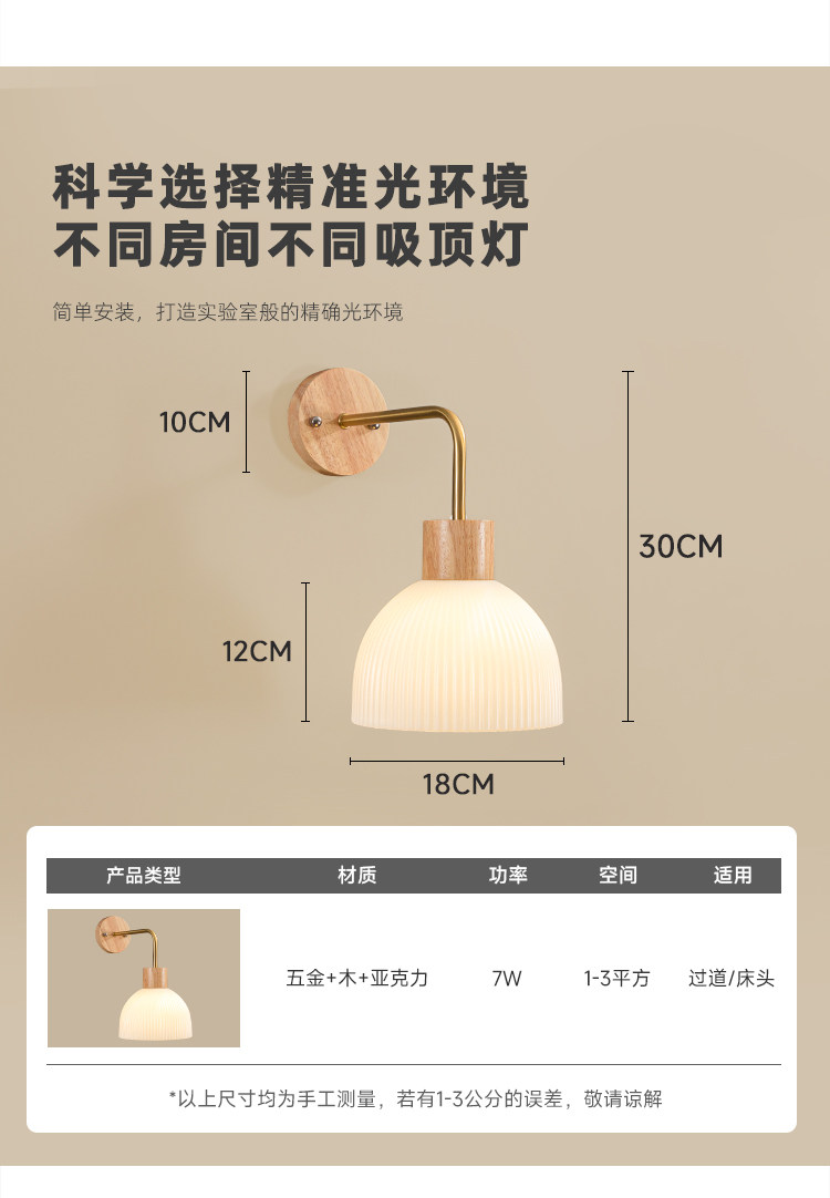 奶油原木卧室床头壁灯侘寂风日式书房灯走廊过道阳台led客厅灯具