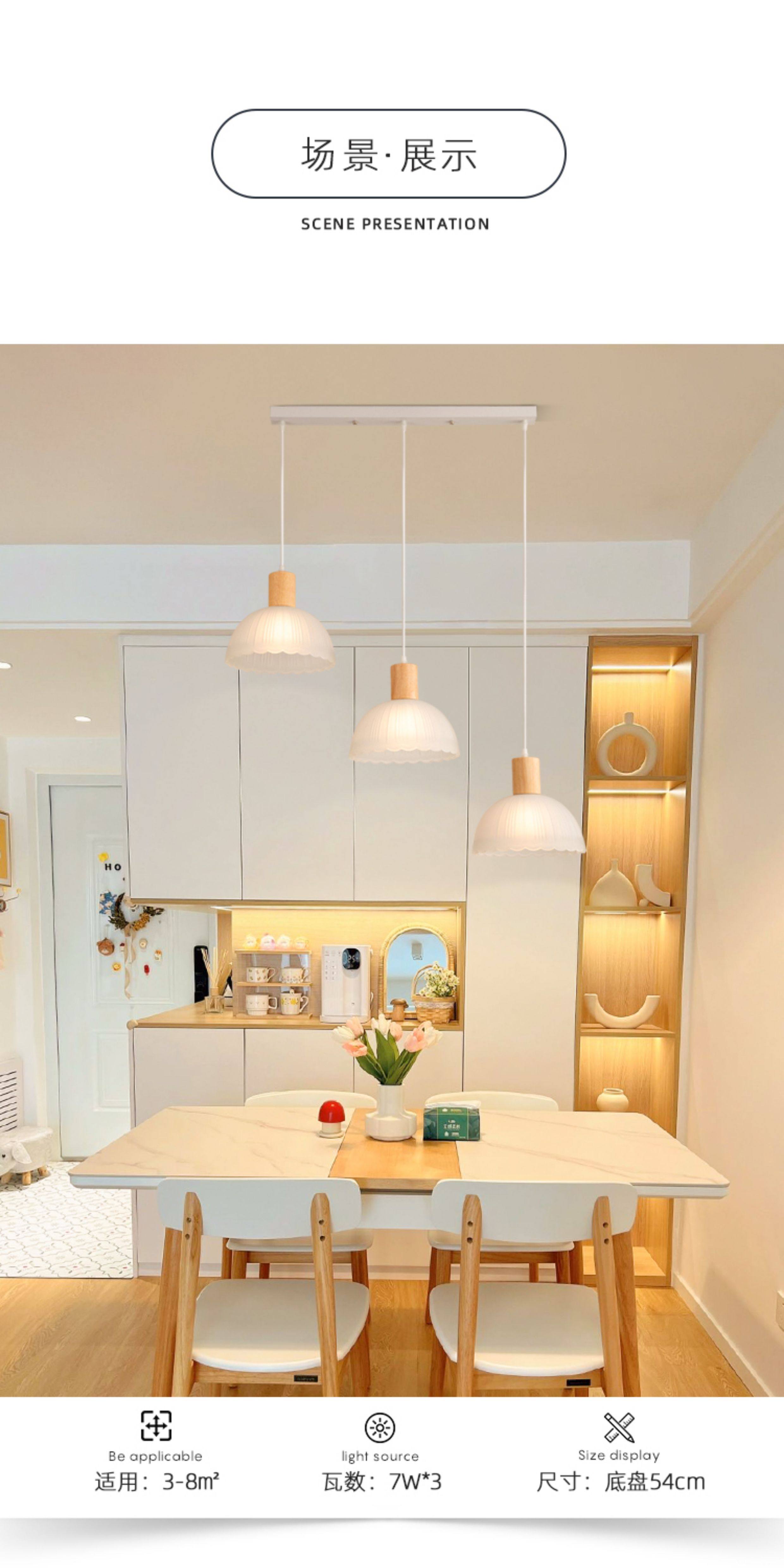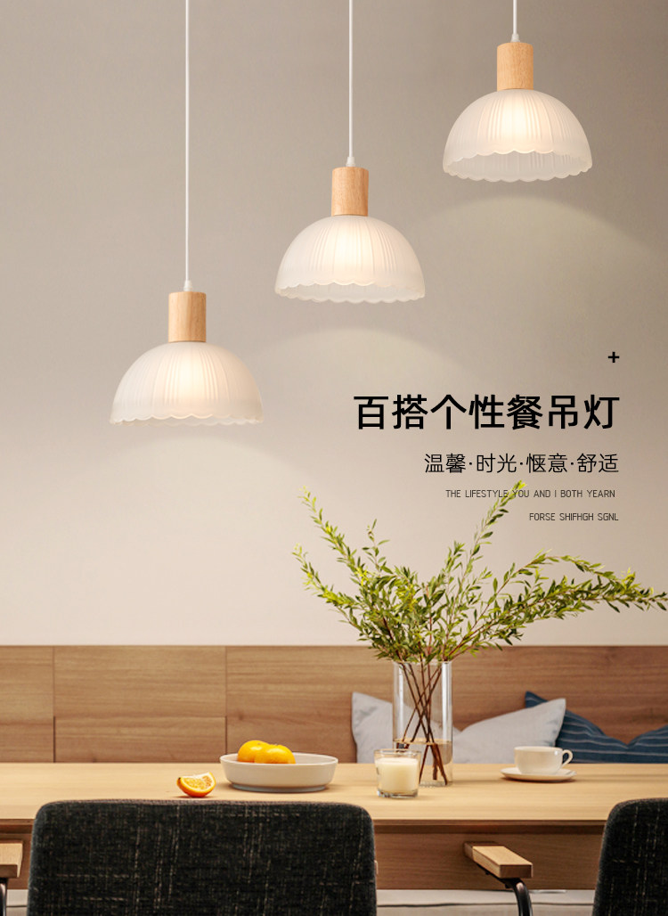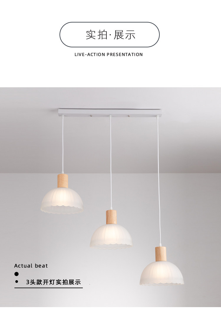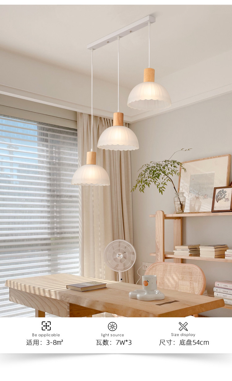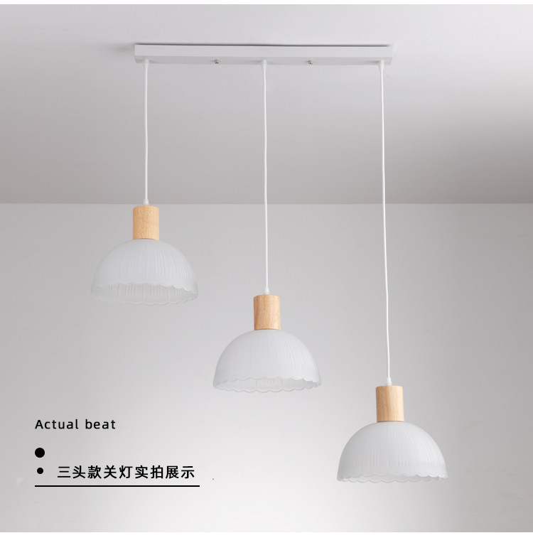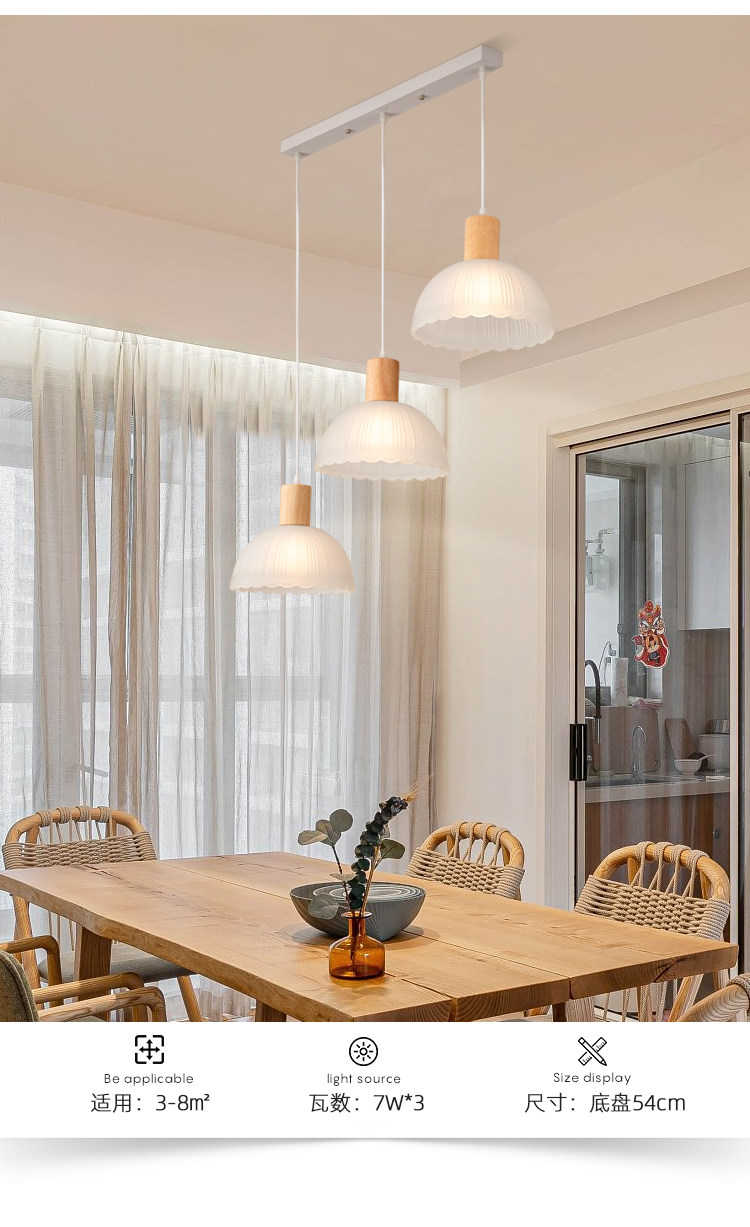 Japanese-Style Wooden Restaurant Pendant Light Nordic Creative Frosted Glass Wabi-Sabi Style Dining Table Bar Counter Three-Head Zhongshan Lighting Fixtures