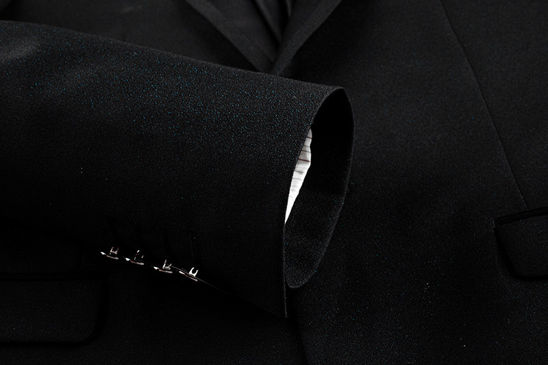 цвет Черный модный пиджак с одной пуговицей и двойным разрезом,Черный однобортный пиджак в художественном стиле с одним разрезом