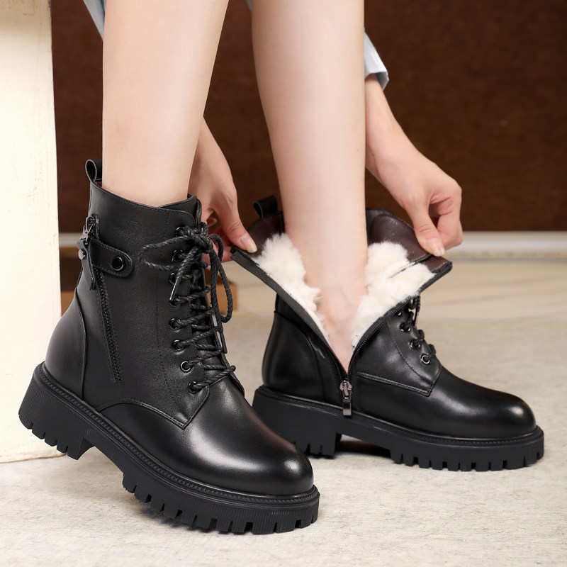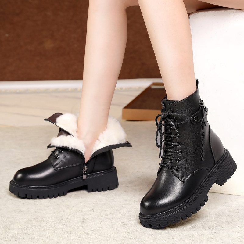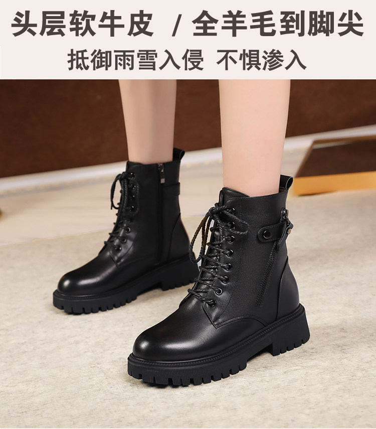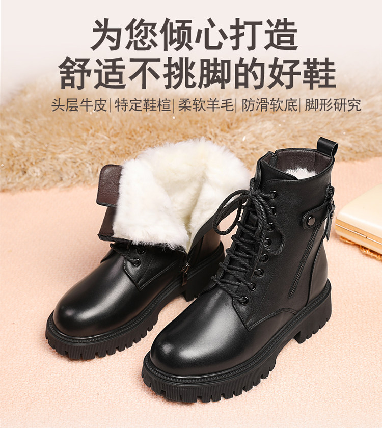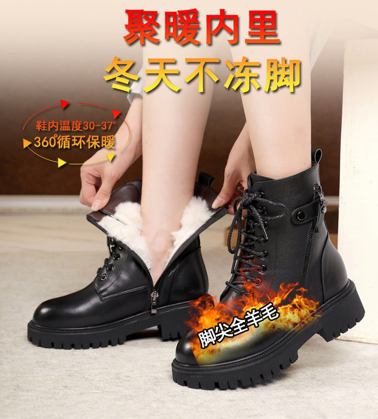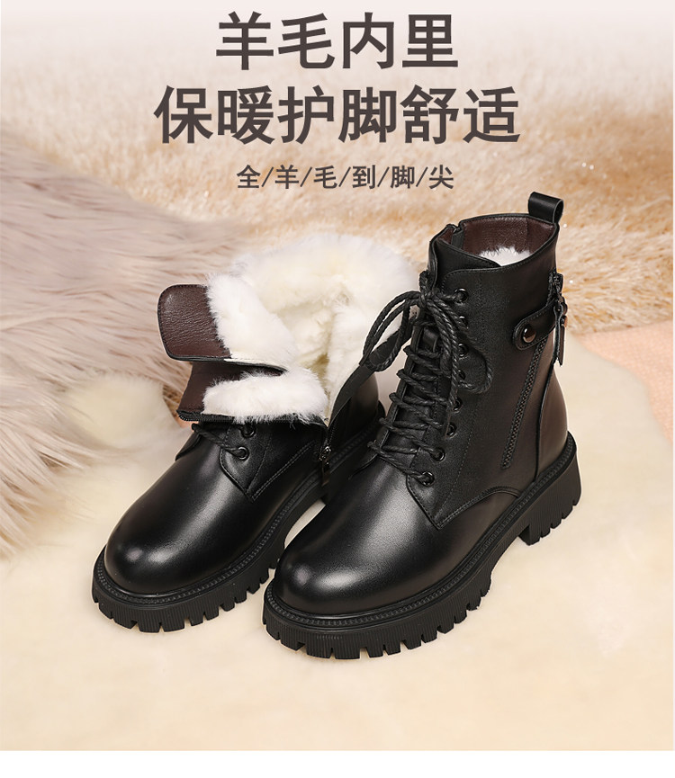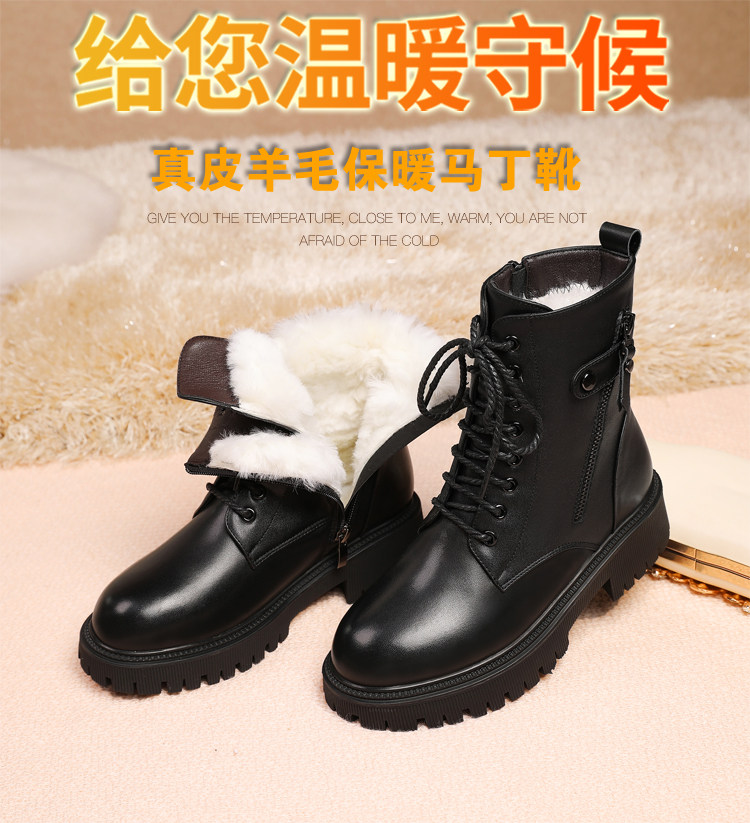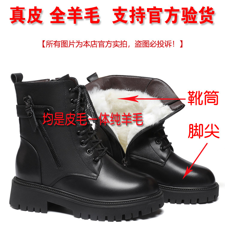 马丁靴女鞋冬季加绒加厚底短靴真皮棉鞋羊毛雪地靴子皮毛一体皮鞋