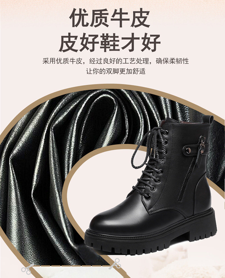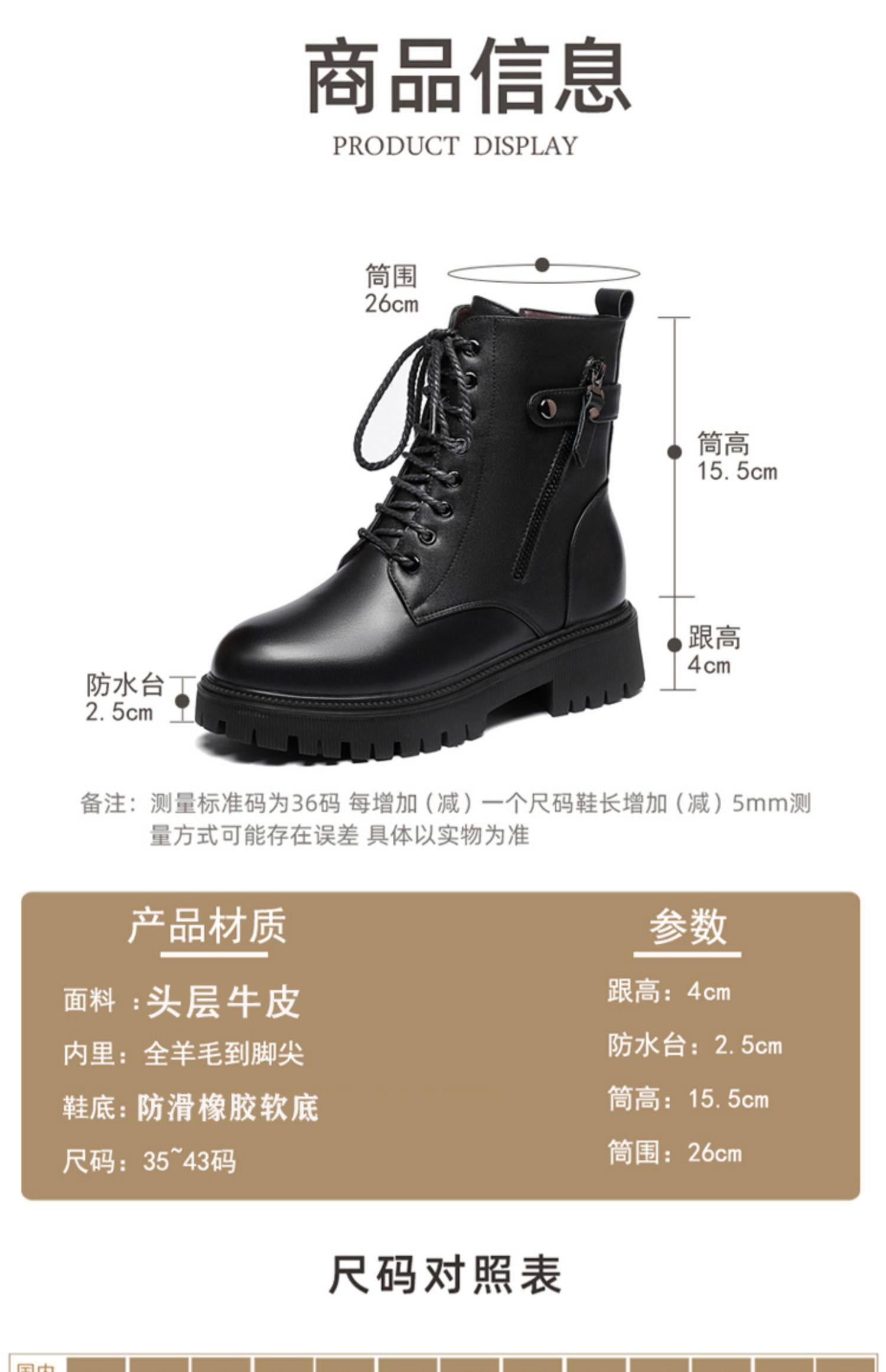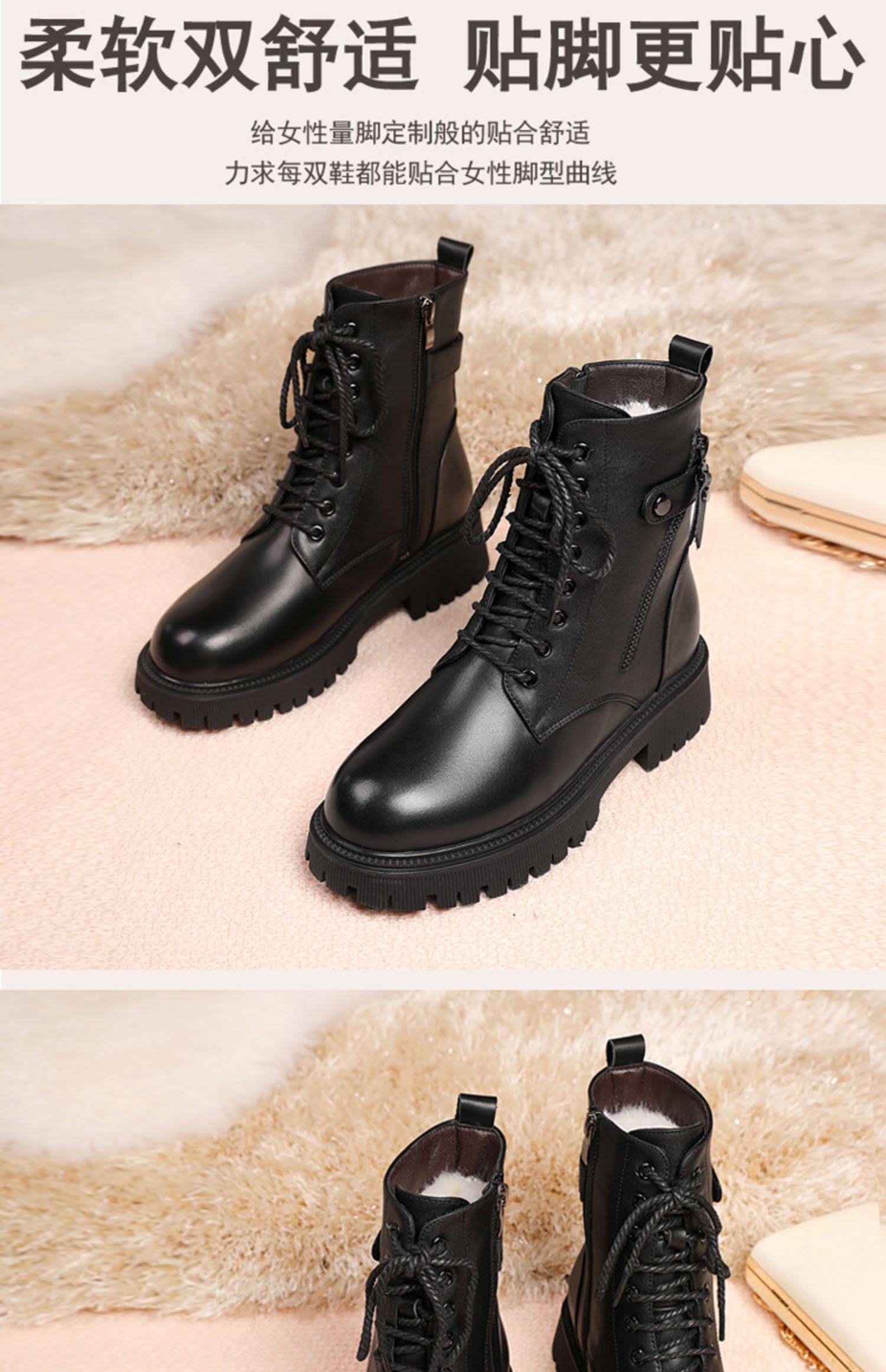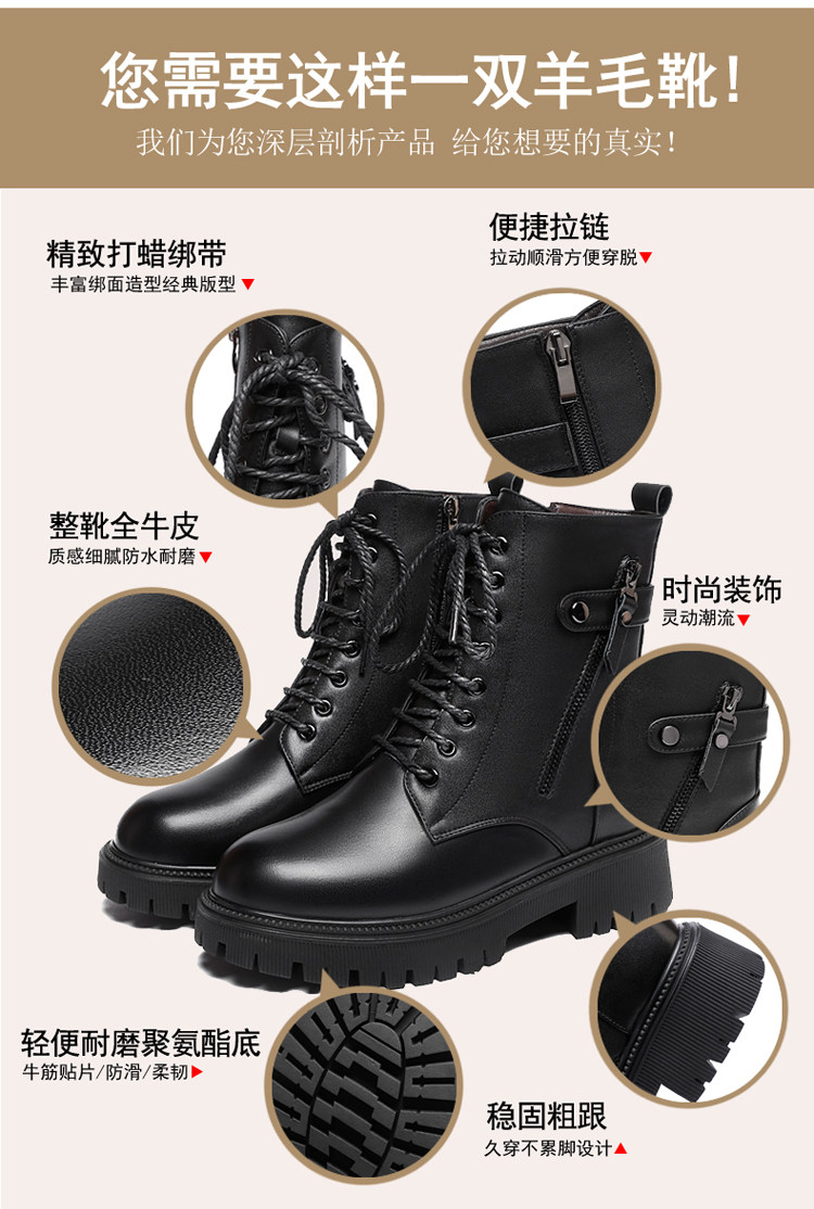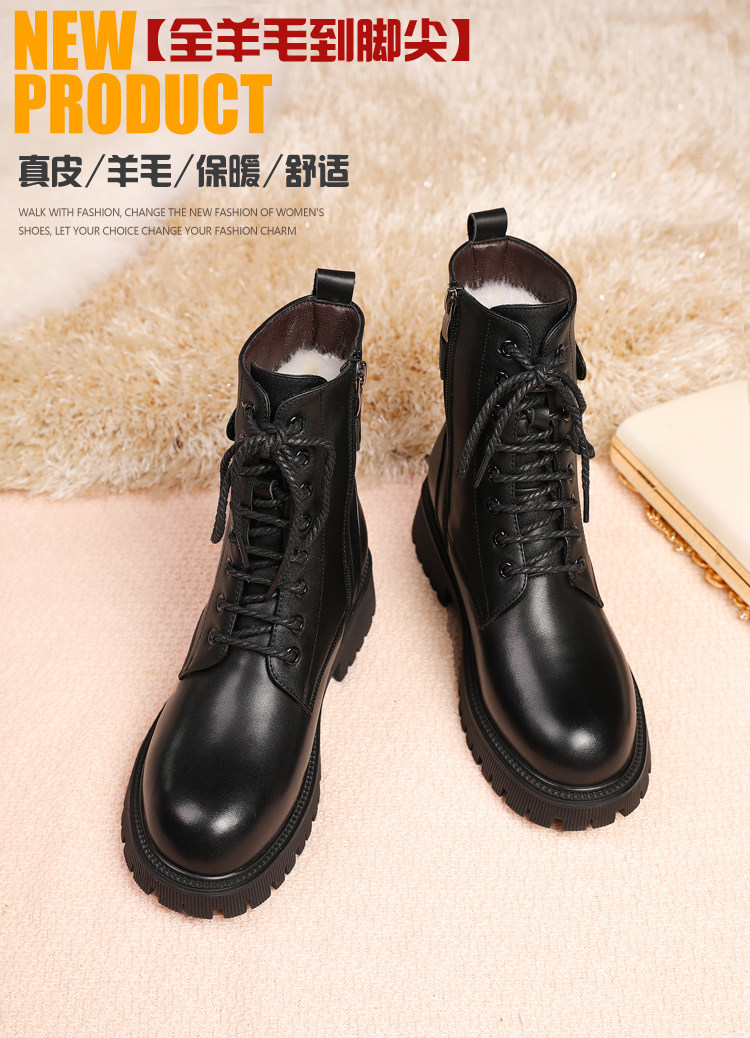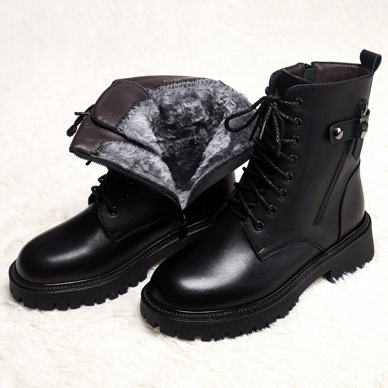 马丁靴女鞋冬季加绒加厚底短靴真皮棉鞋羊毛雪地靴子皮毛一体皮鞋