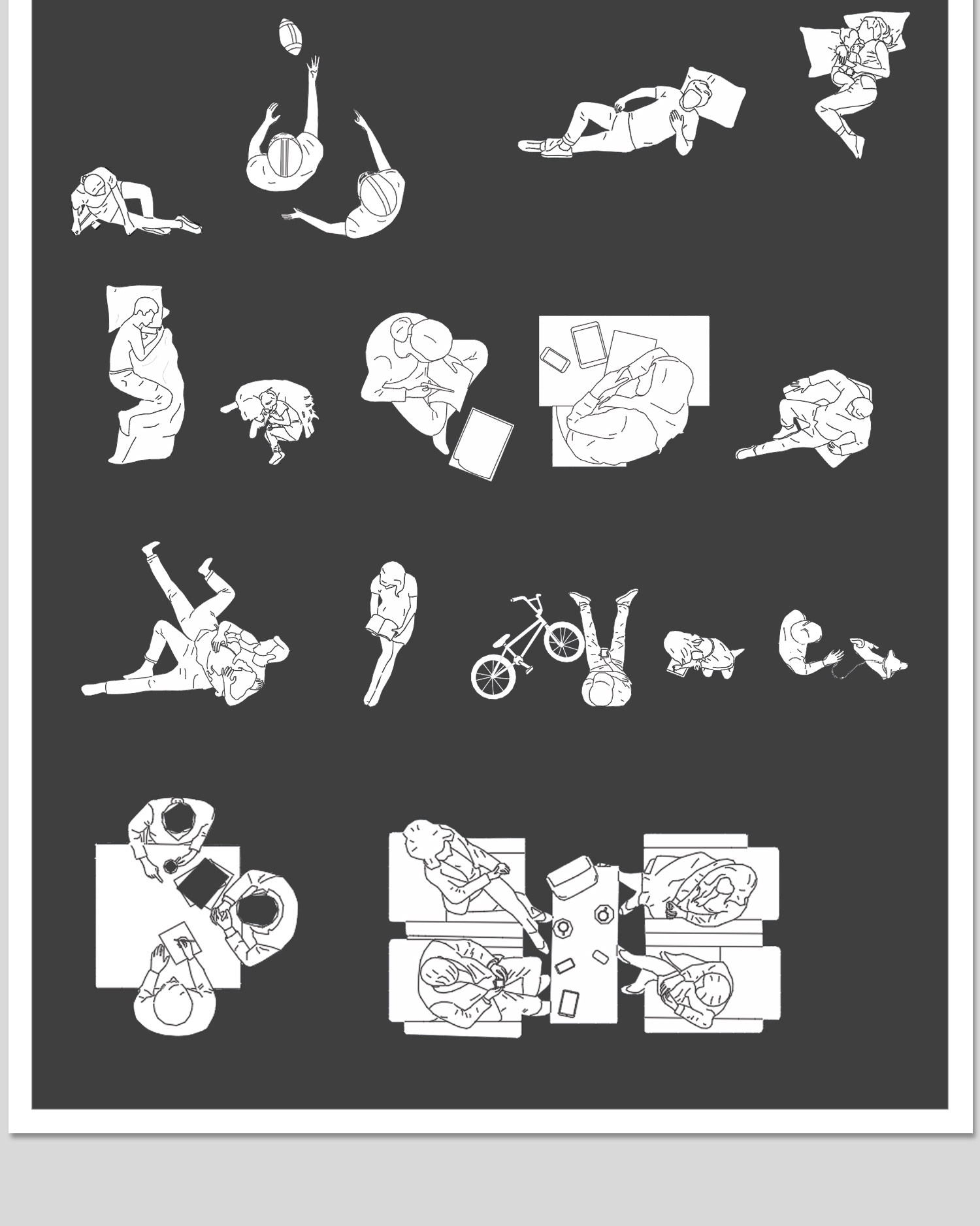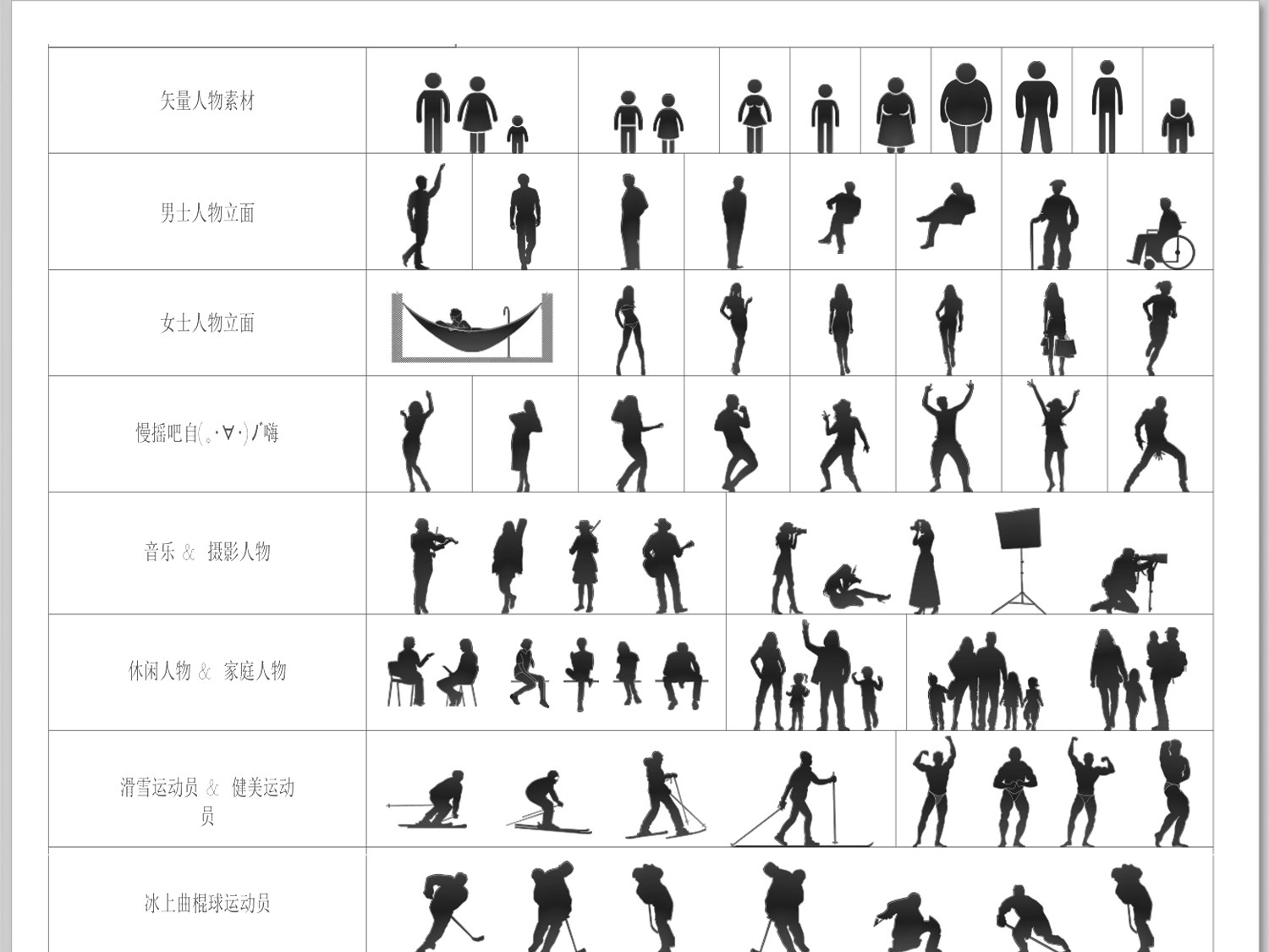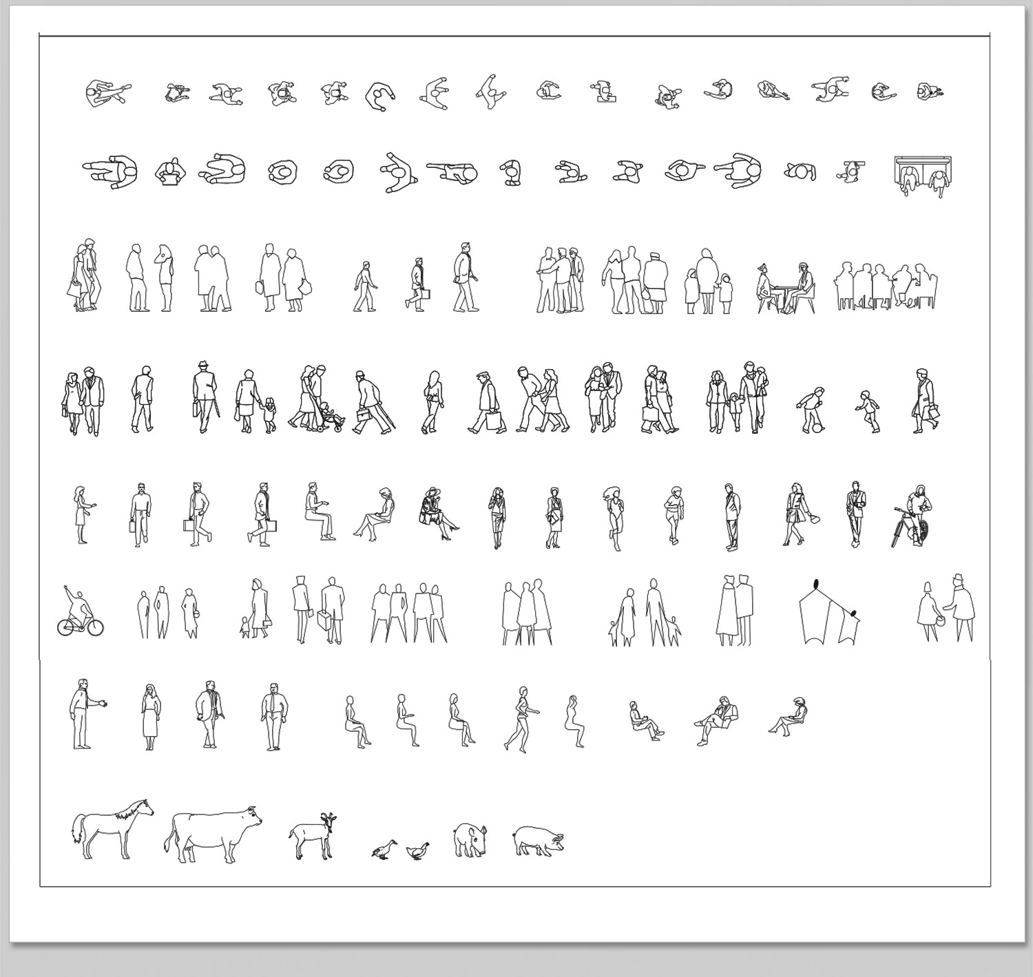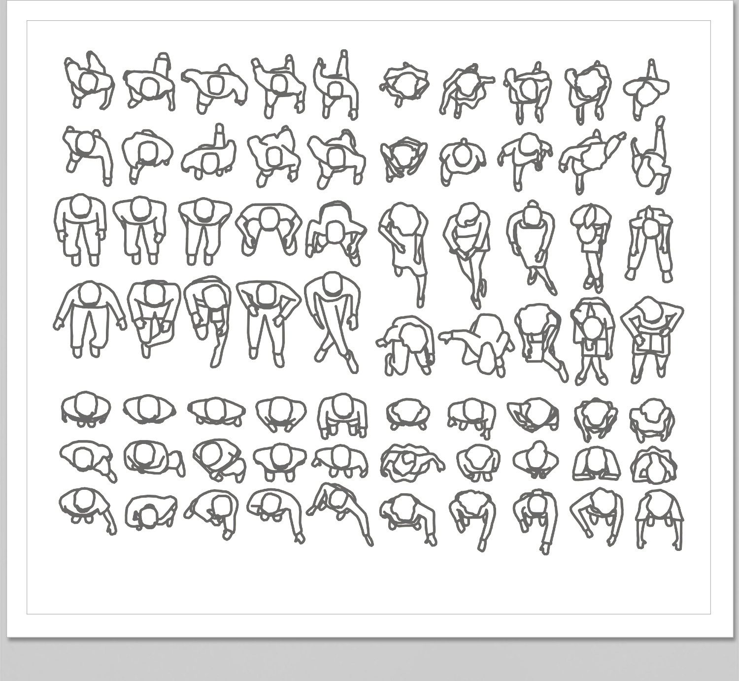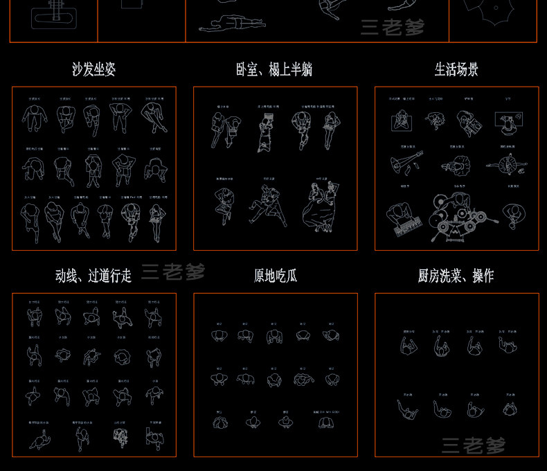 人物俯视顶视CAD图库图块站坐人体动作素材运动线稿dwg模块素材