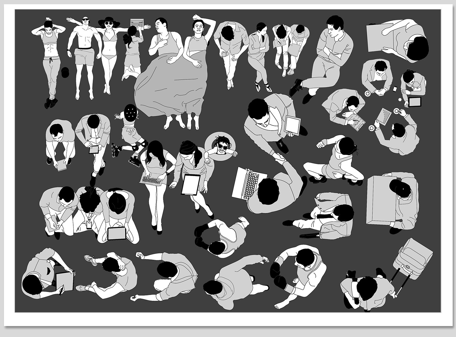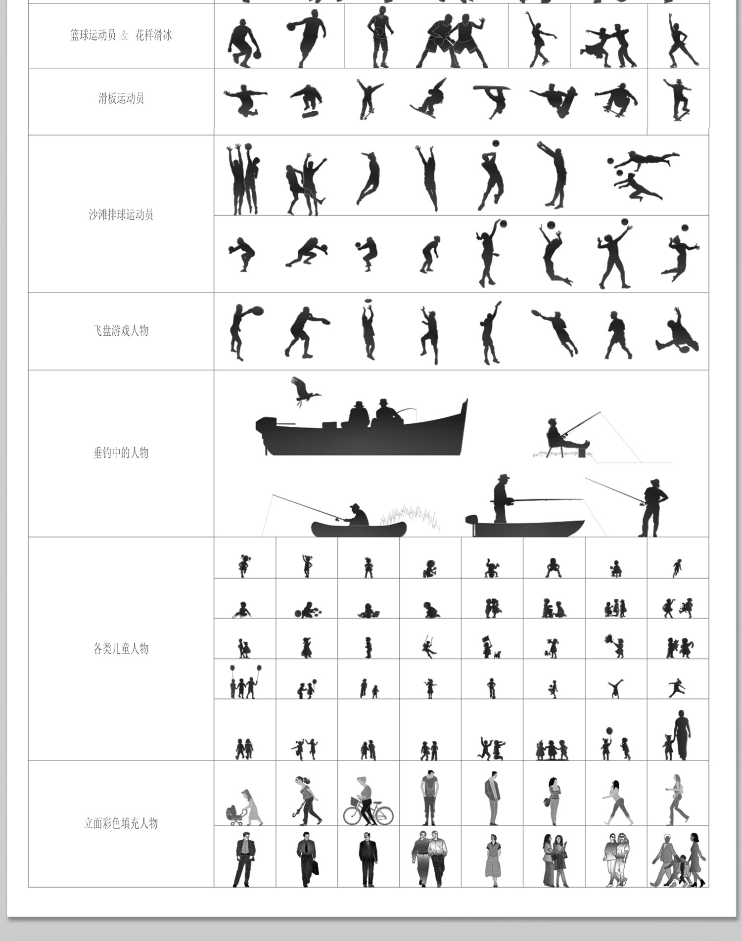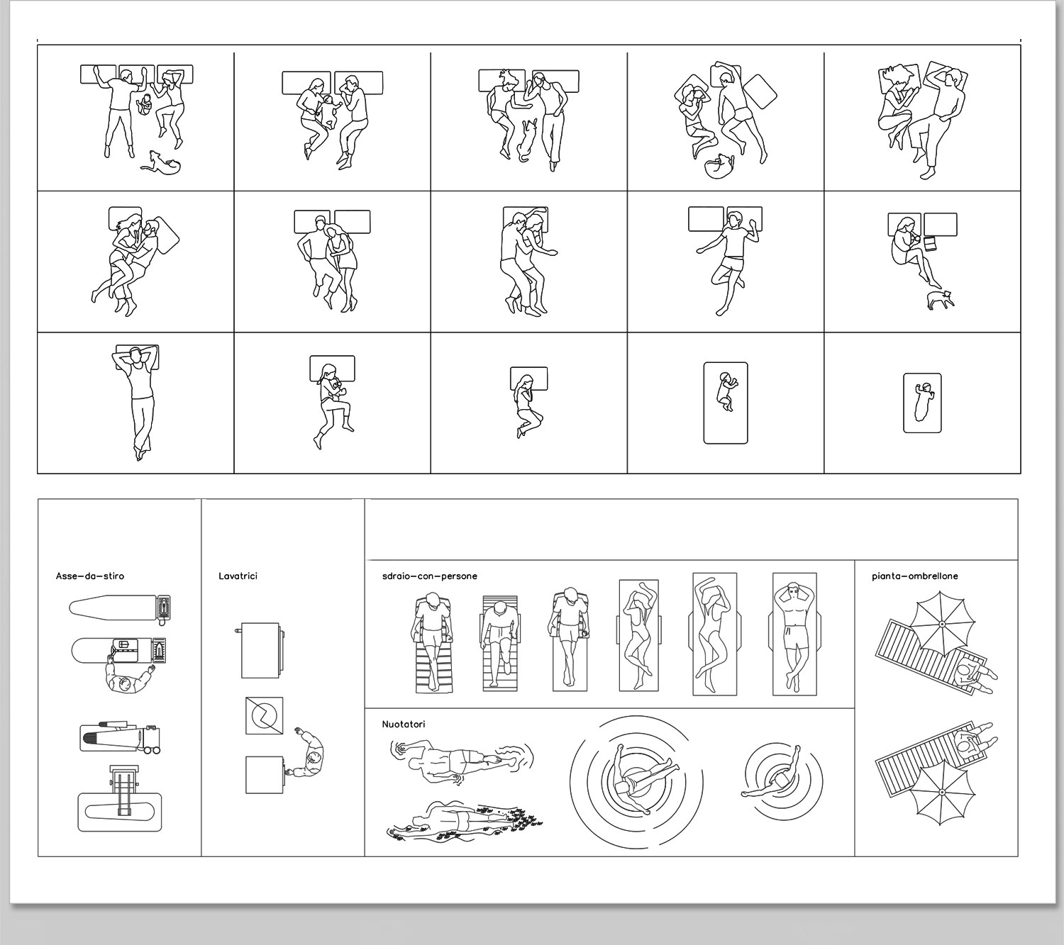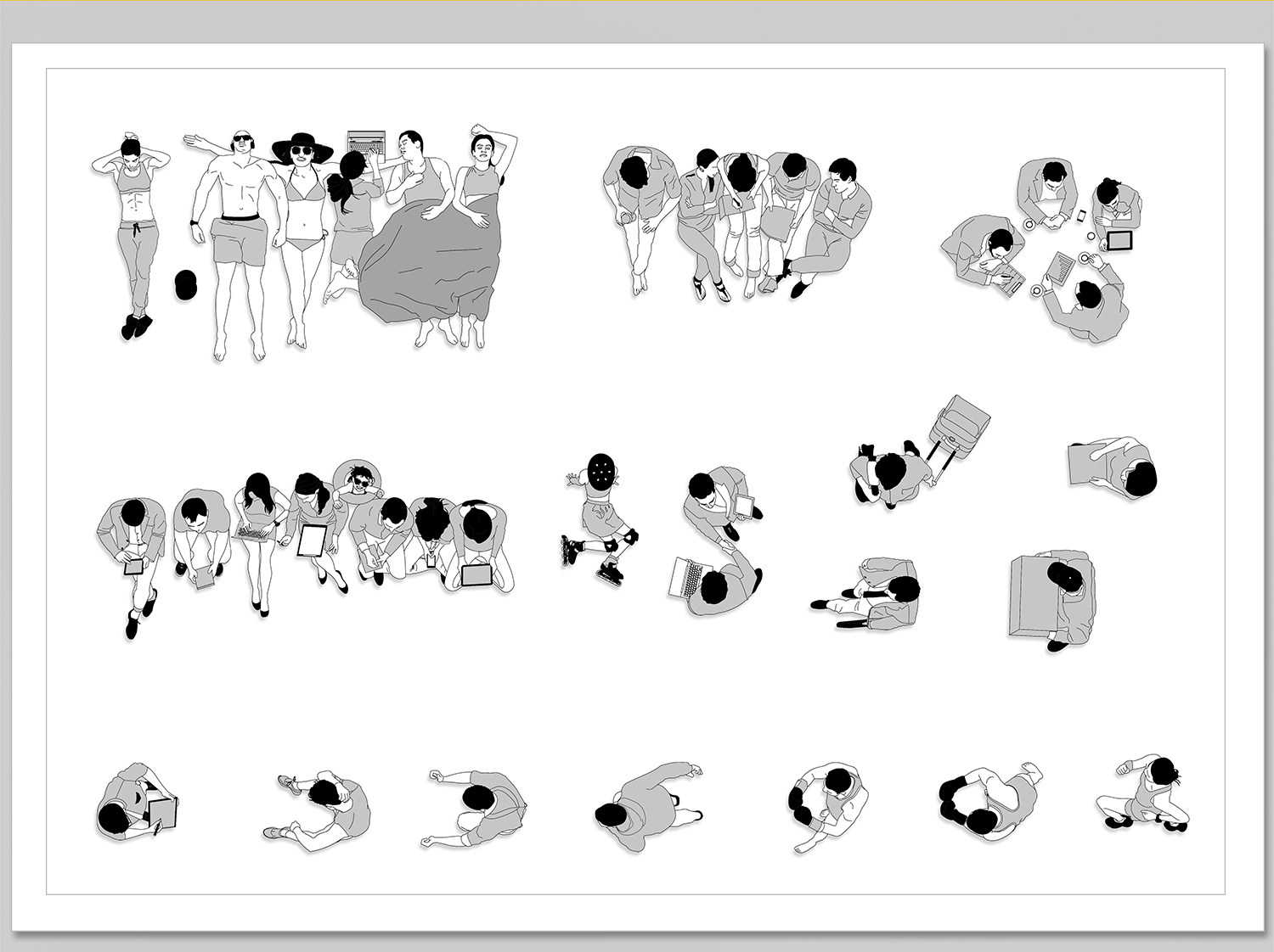 人物俯视顶视CAD图库图块站坐人体动作素材运动线稿dwg模块素材