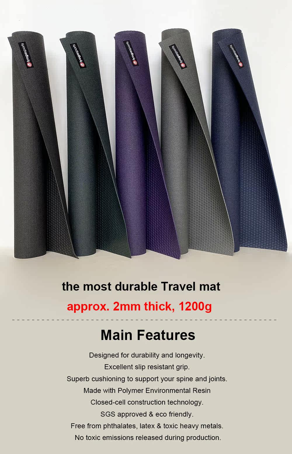 耐磨轻薄便携防滑传奇黑垫可折叠旅行瑜伽垫2mm PRO travel mat