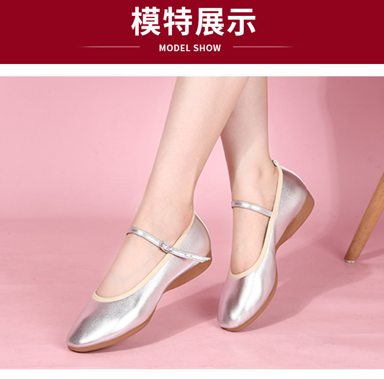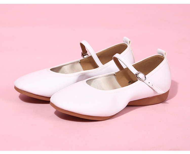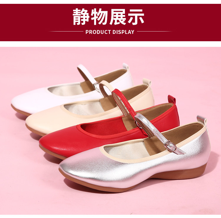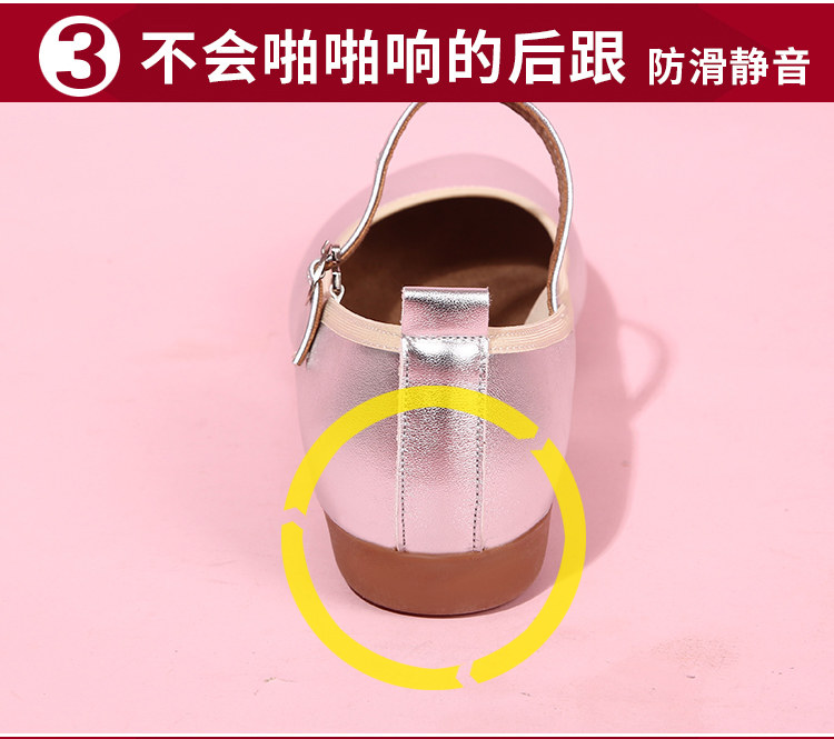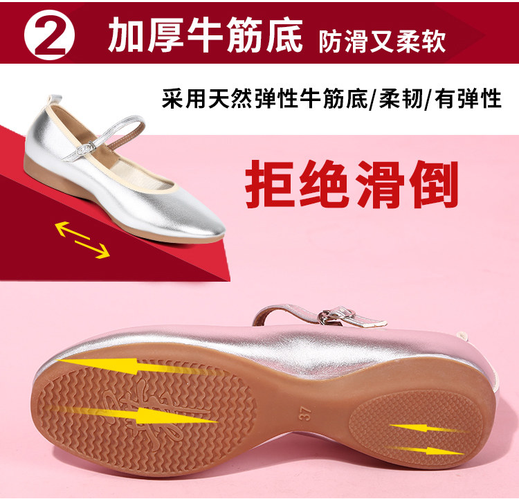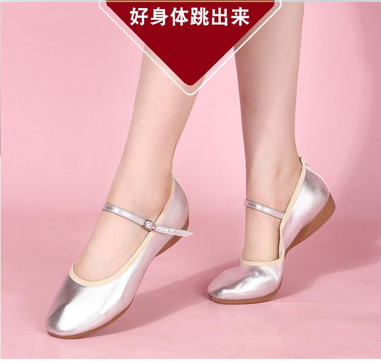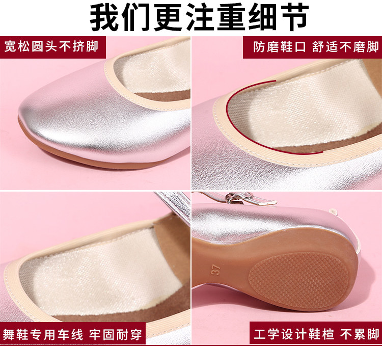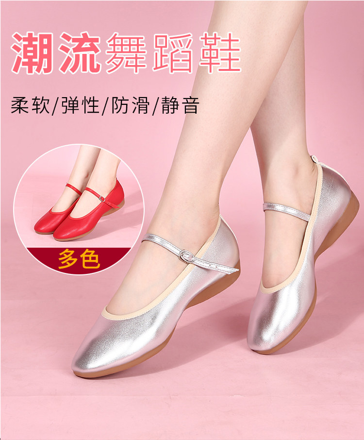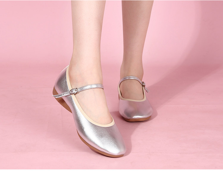 Zapatos de baile cuadrados para madre de cuero genuino con suela plana, zapatos de suela blanda para baile, zapatos de cuero de tacón bajo, zapatos de baile blancos y plateados, zapatos de rendimiento
