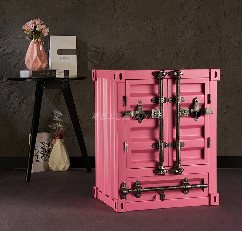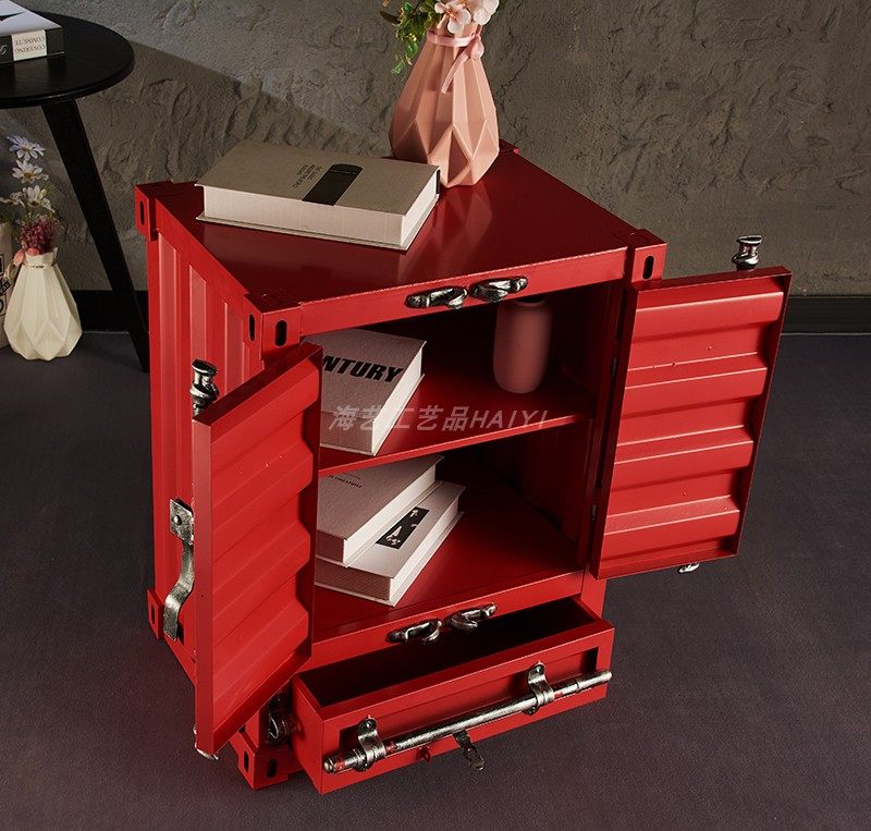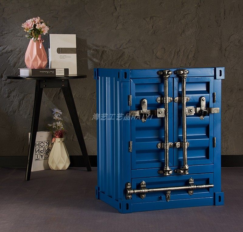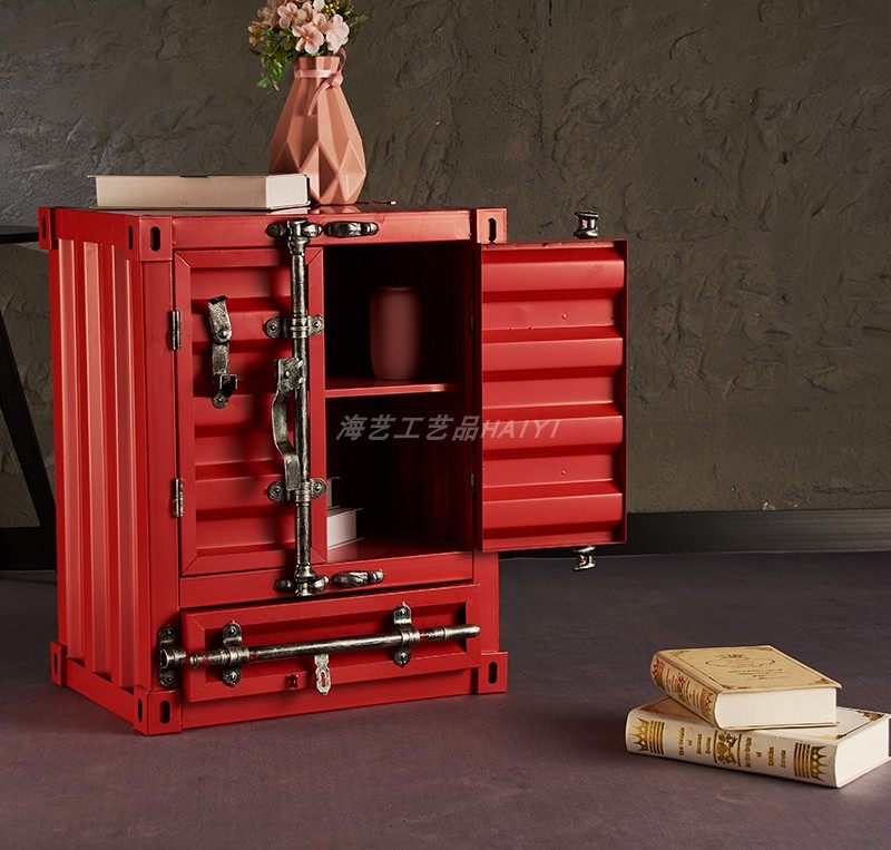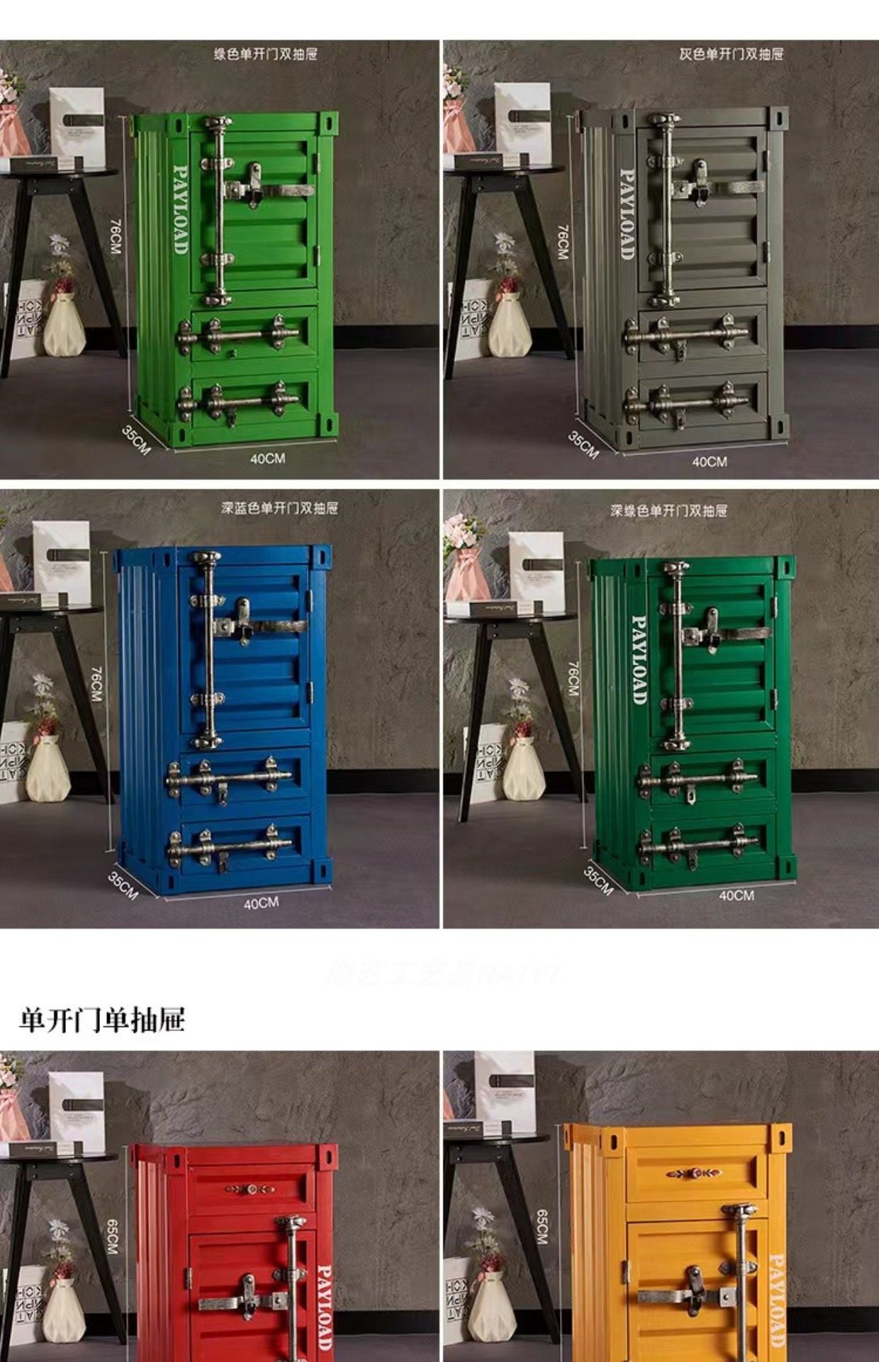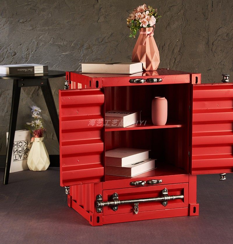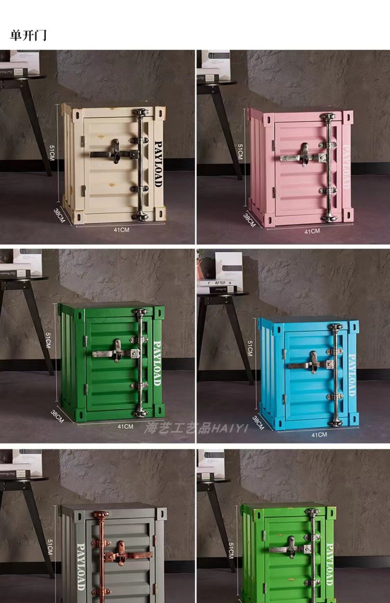 Retro Iron Metal Container Storage Cabinet Bedside Creative Industrial Style European and American Cabinet Bar Counter Decorative Cabinet