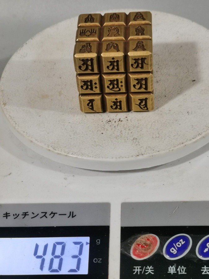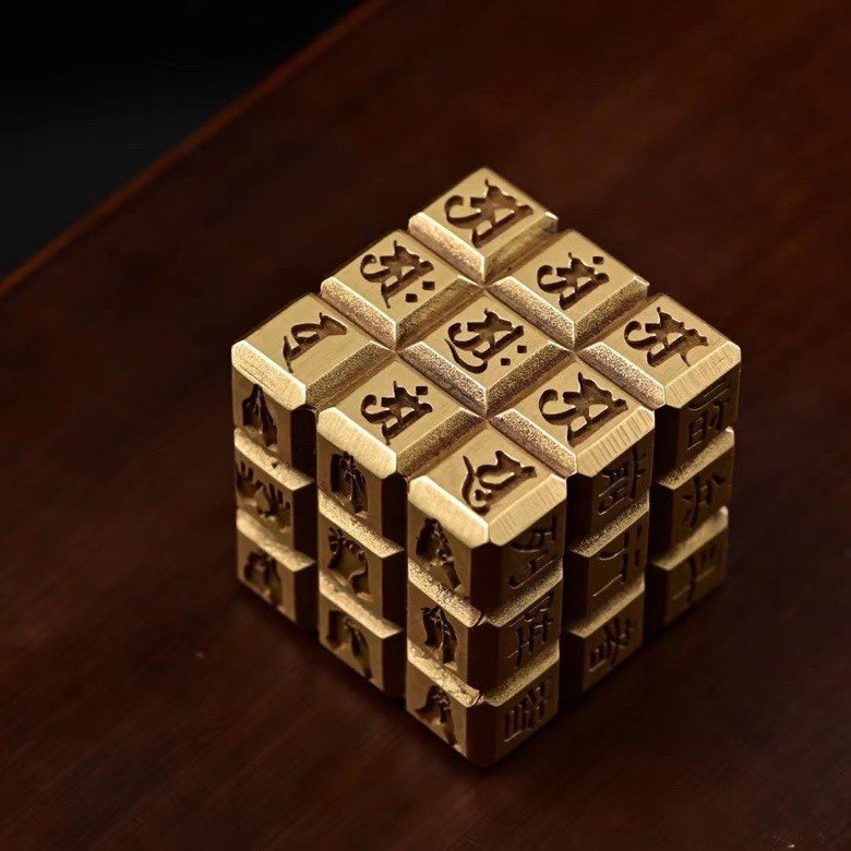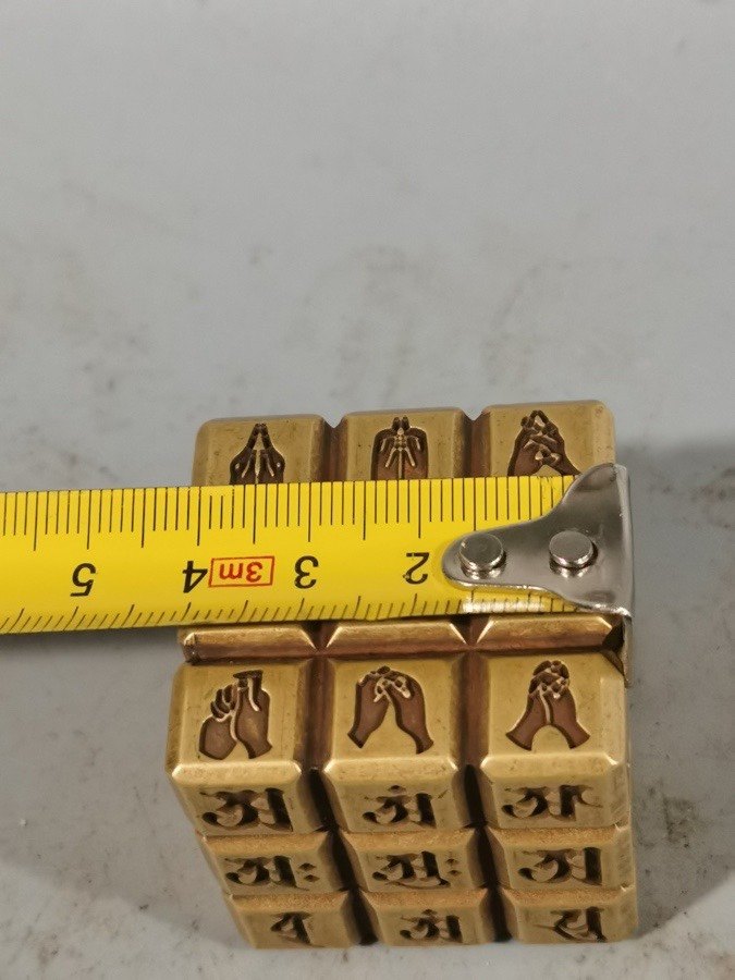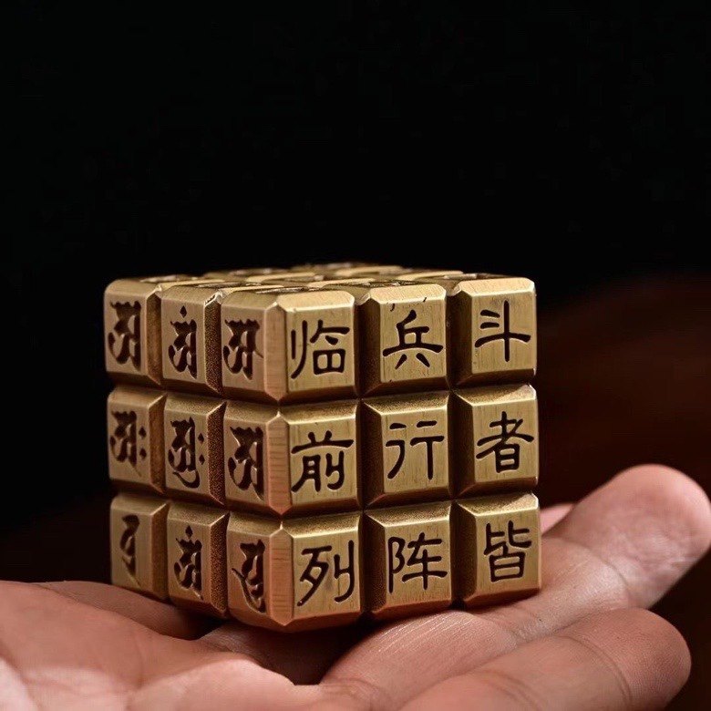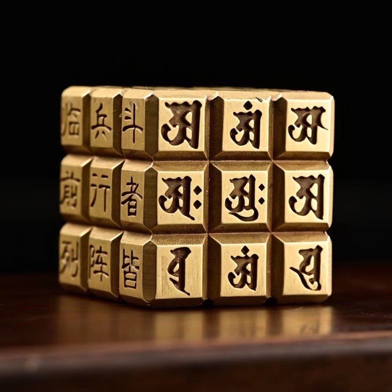 Куб из чистой латуни с девятислоговой мантрой, воины в бою формируются в порядок, канцелярский прищепка-линейка, декоративный элемент