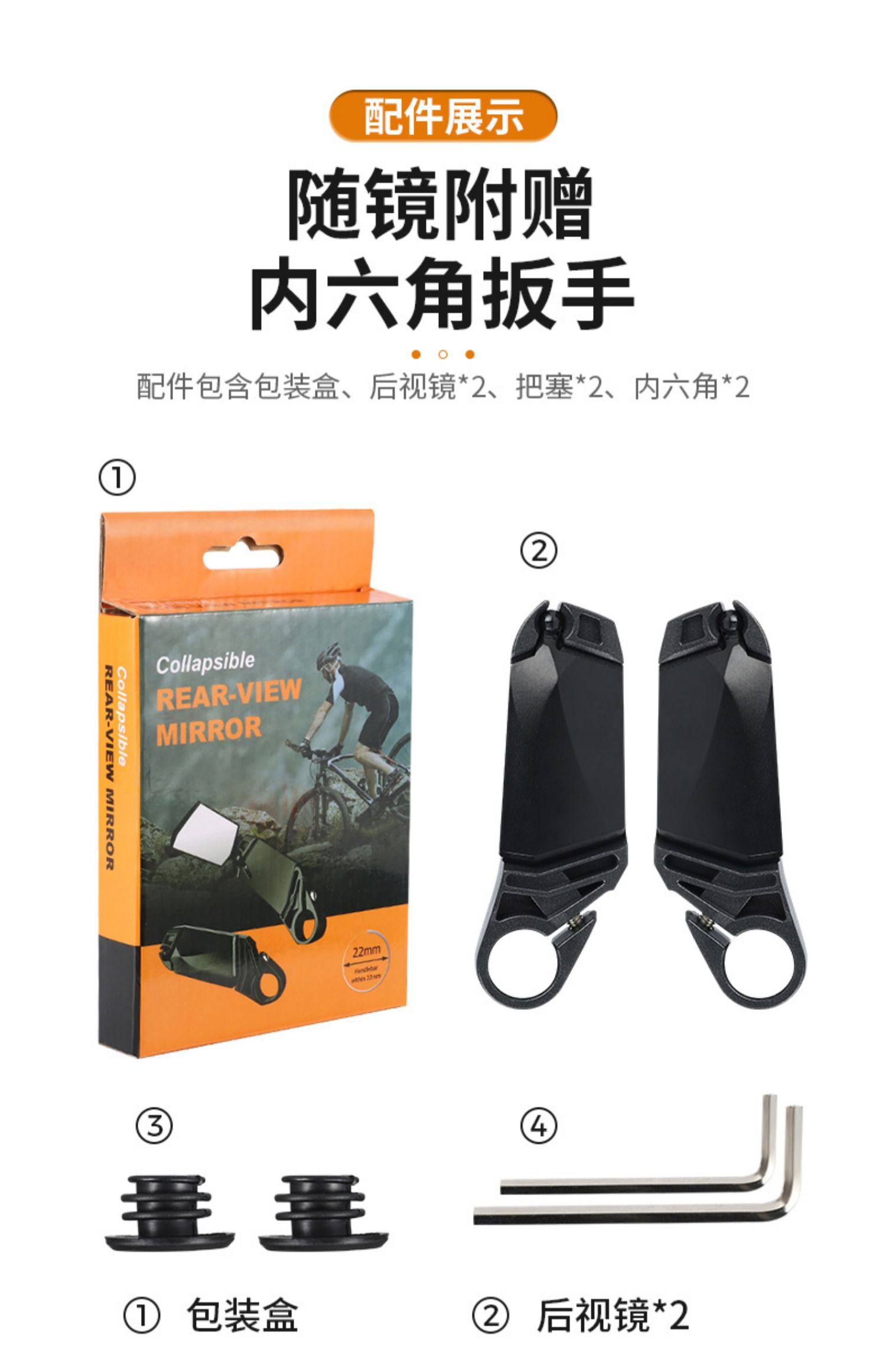 美利达通用山地车副把自行车羊角把高清后视镜辅助车把一体倒车镜