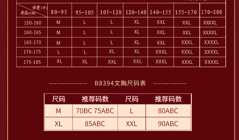 China (cm) 160-165/84-86 165-170 / 88-90 167-172 / 92-96 168-173 / 98-102 170-176 / 106-110