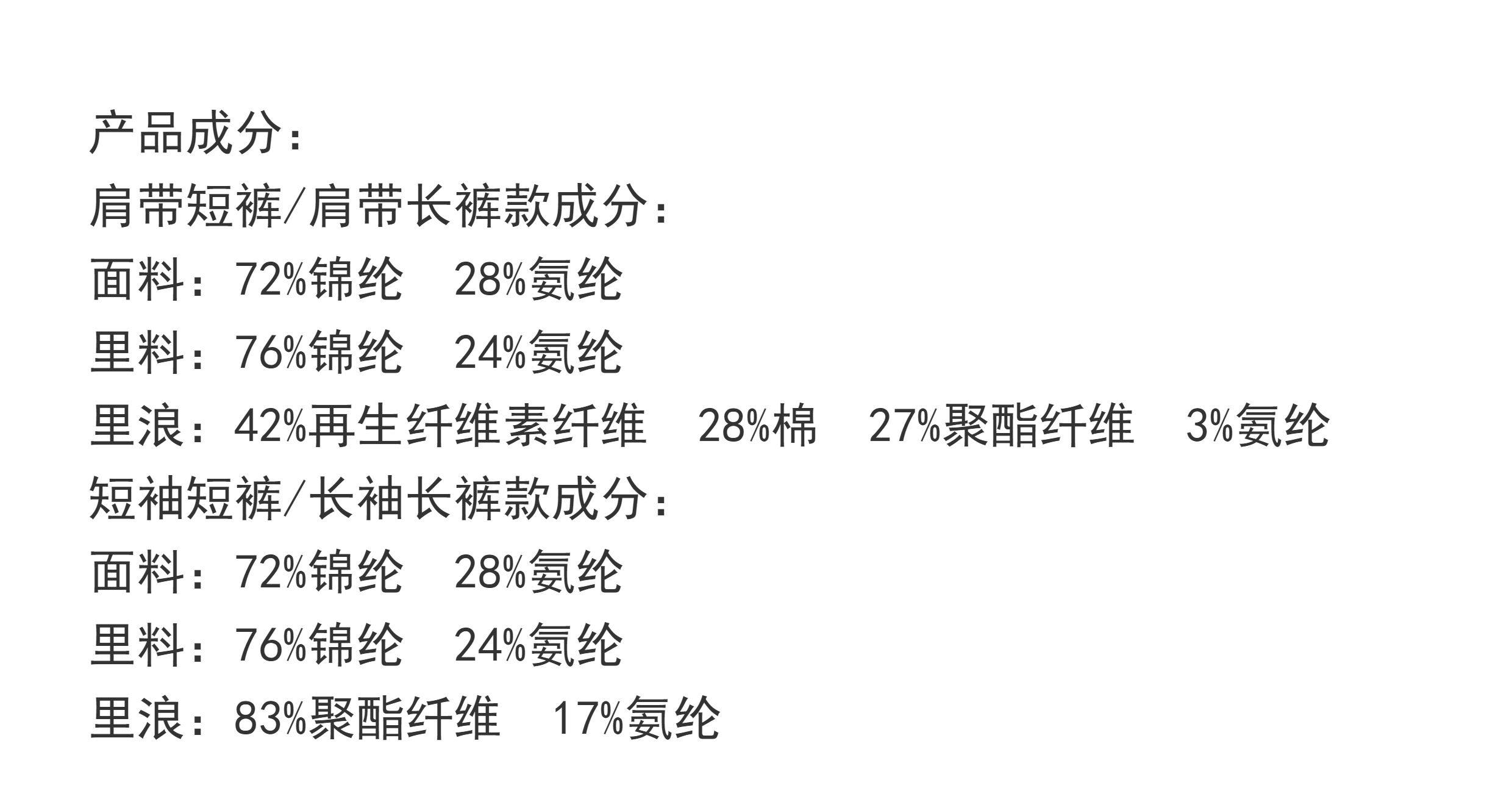 Material ingredients Polyamide fiber (nylon) 72% polyurethane elastic fiber (spandex) 28%