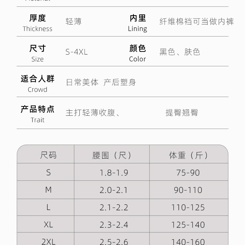 Size S(75-90Jin Jin equals 0.5 kg),M(90-110Jin Jin equals 0.5 kg),L(110-125 Jin Jin is equal to 0.5 kg),XL(125-140Jin Jin equals 0.5 kg),2XL (140-160Jin Jin equals 0.5 kg),3XL (160-180Jin Jin equals 0.5 kg),4XL (180-200 Jin Jin equals 0.5 kg)
