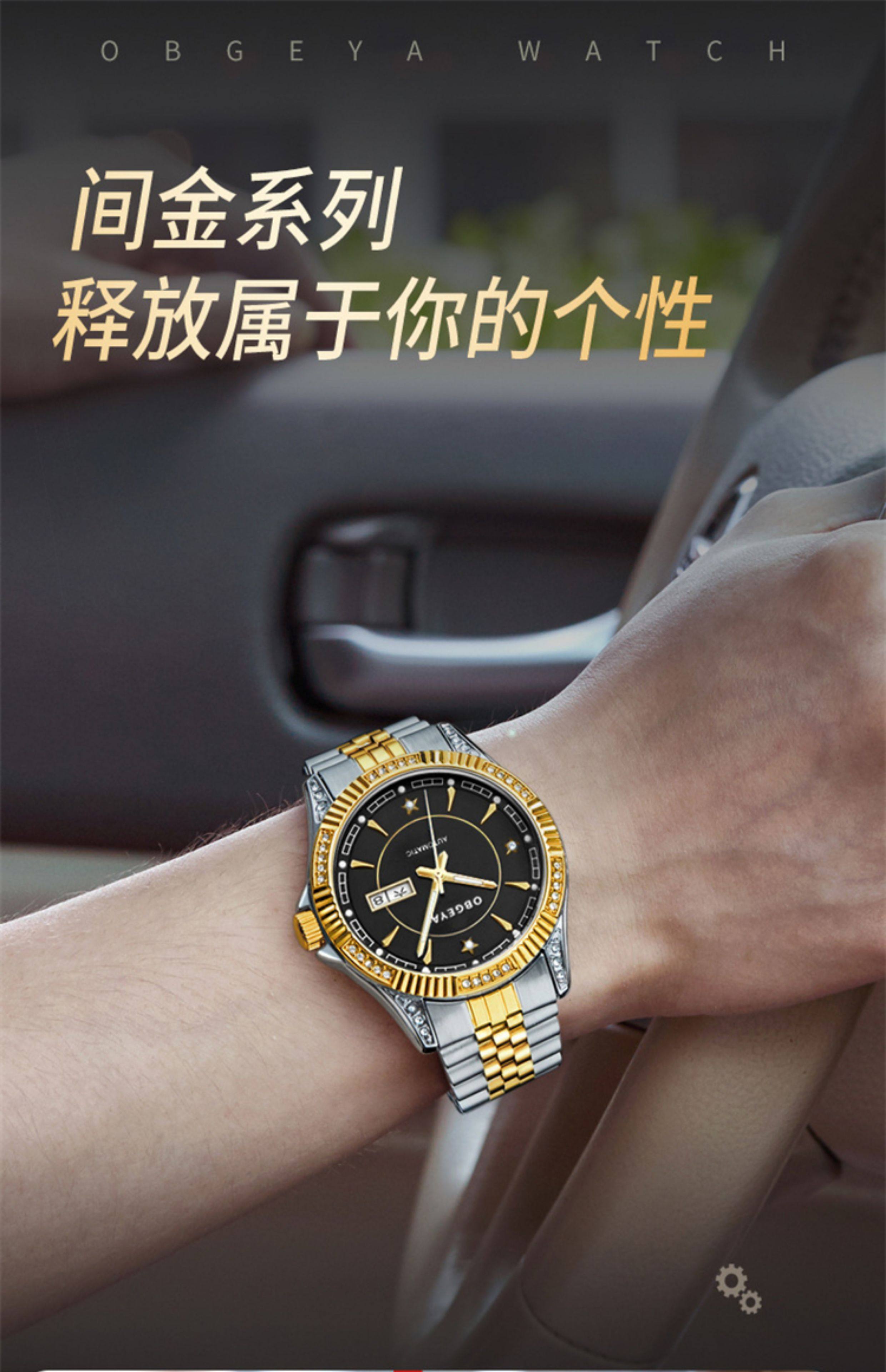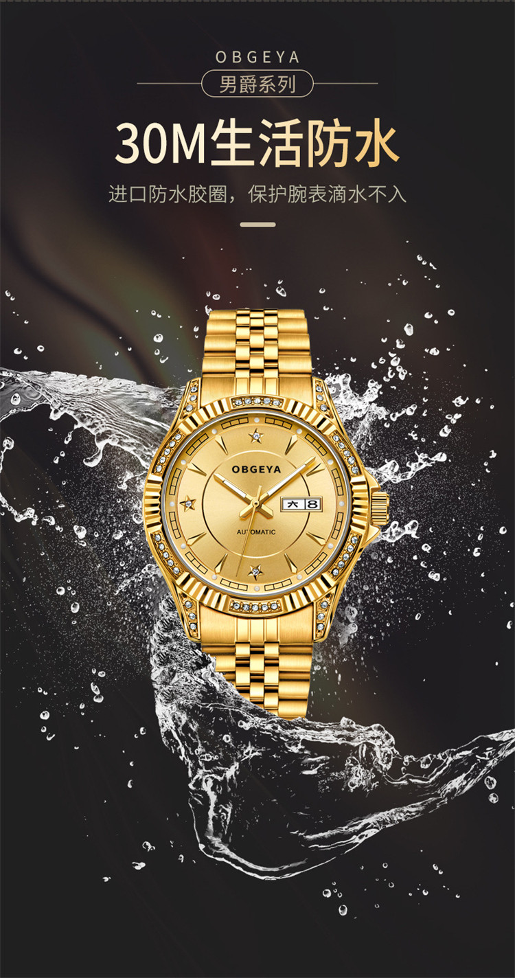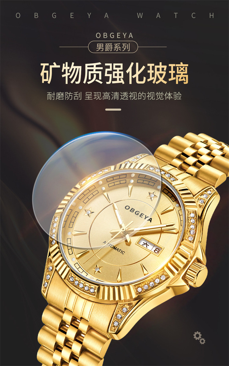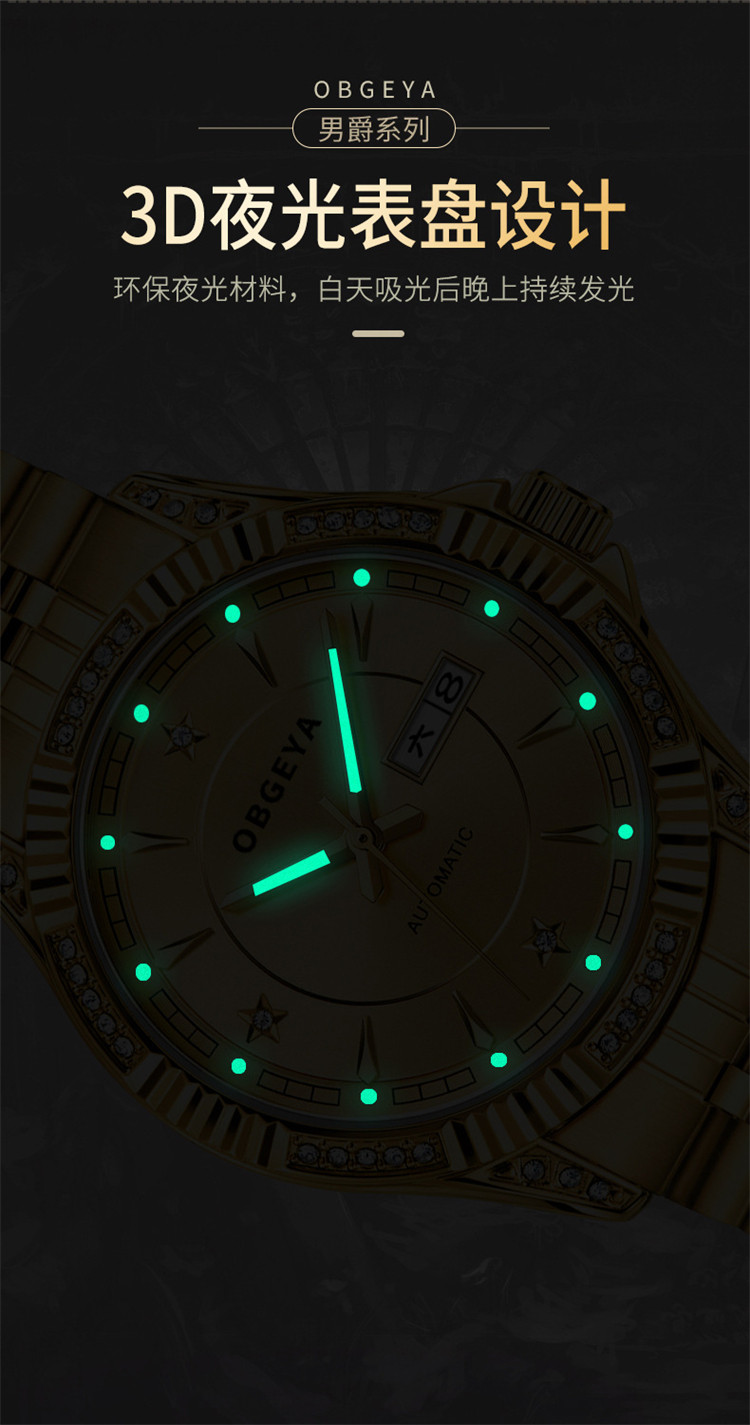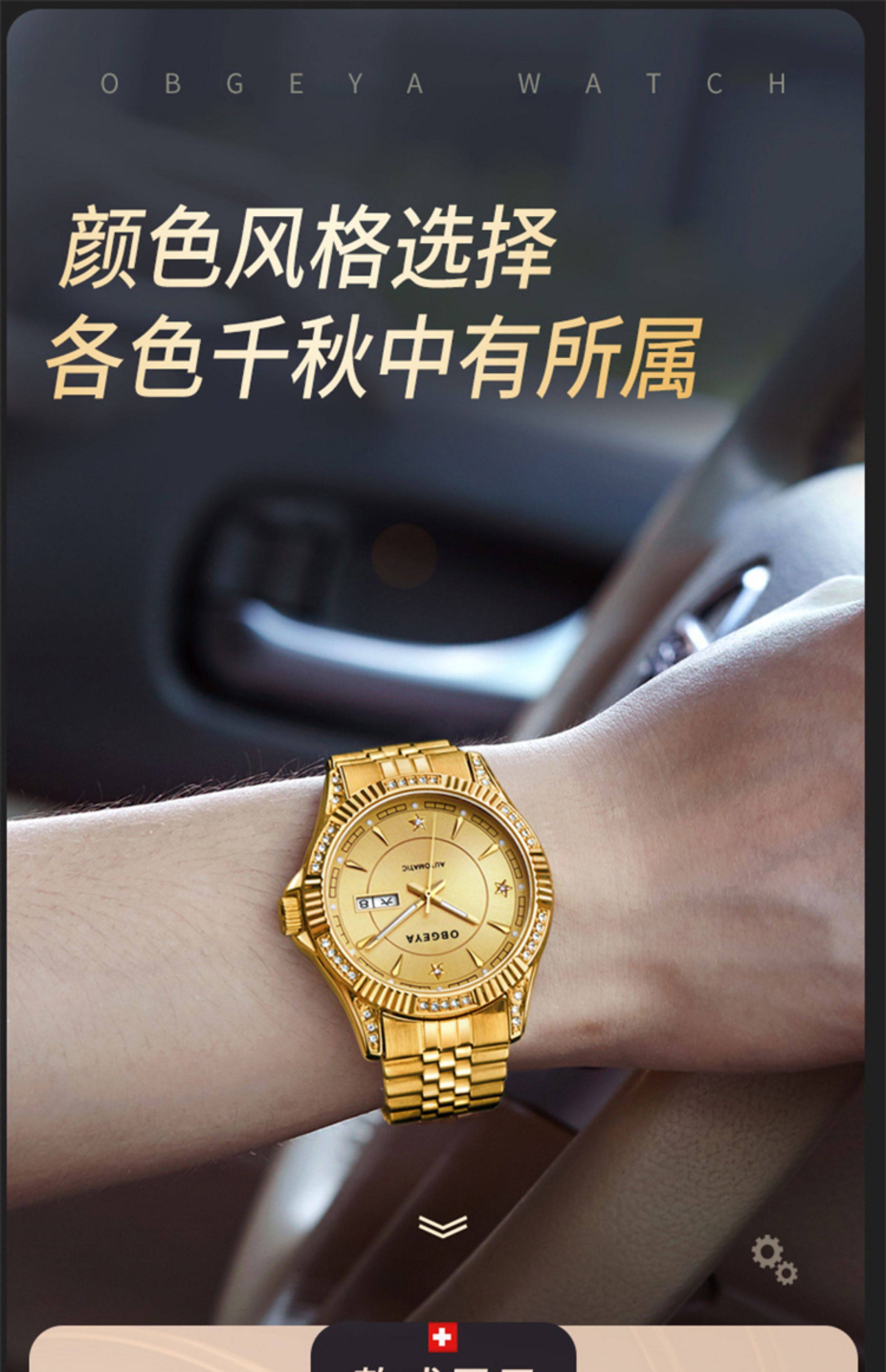 Montre mécanique rubis pour hommes, importé de suisse, plaqué or 18 carats, diamant, étanche, Business, lumineux, classique