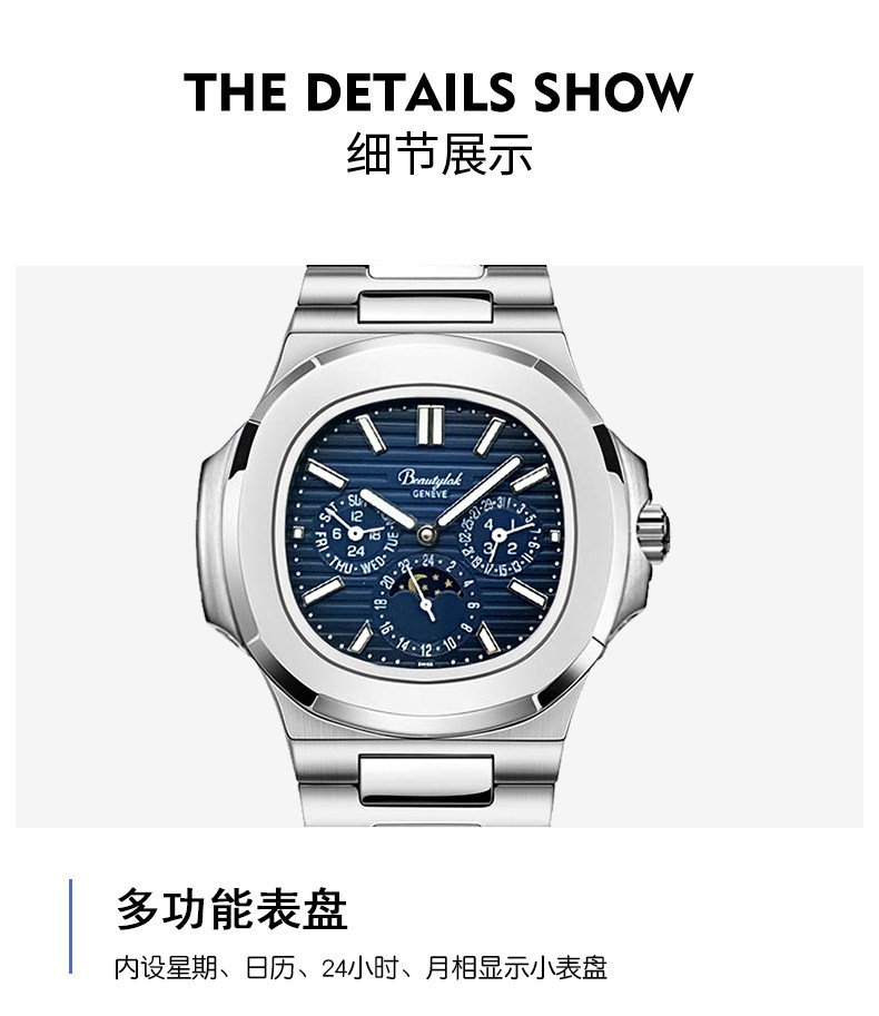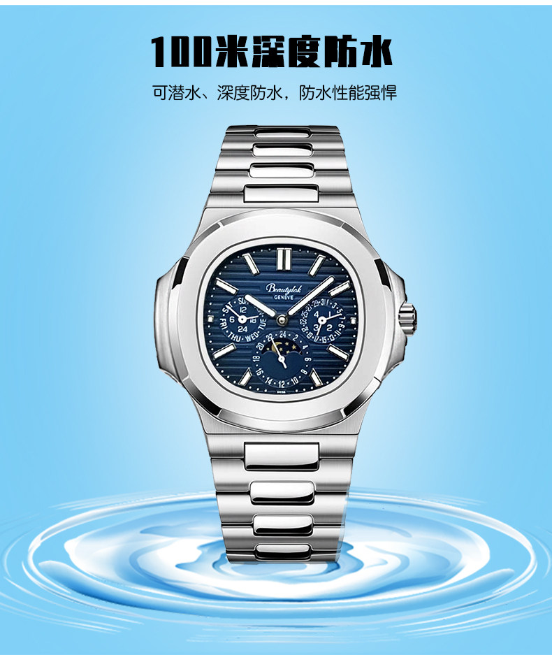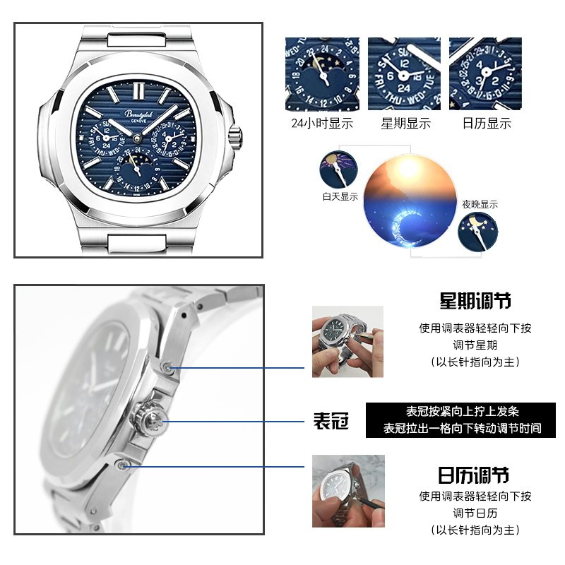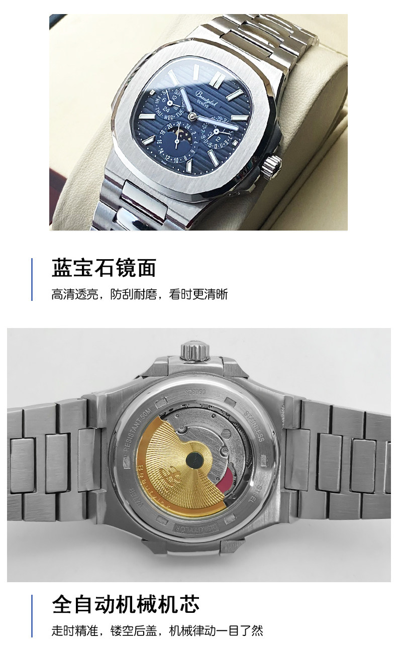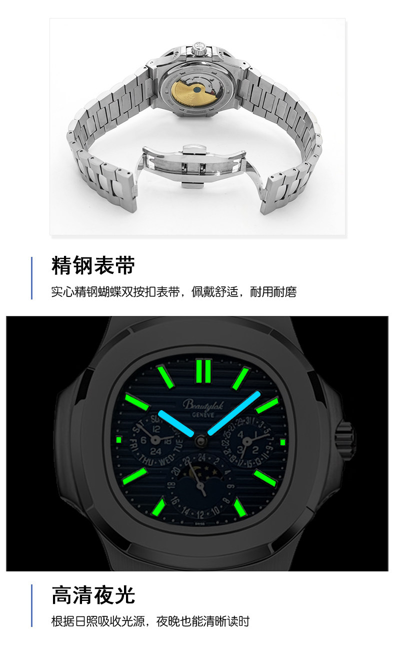 Official Brand Nautilus Men's Watch, Men's Business Fashion Waterproof Square Fully Automatic Mechanical Watch for Men
