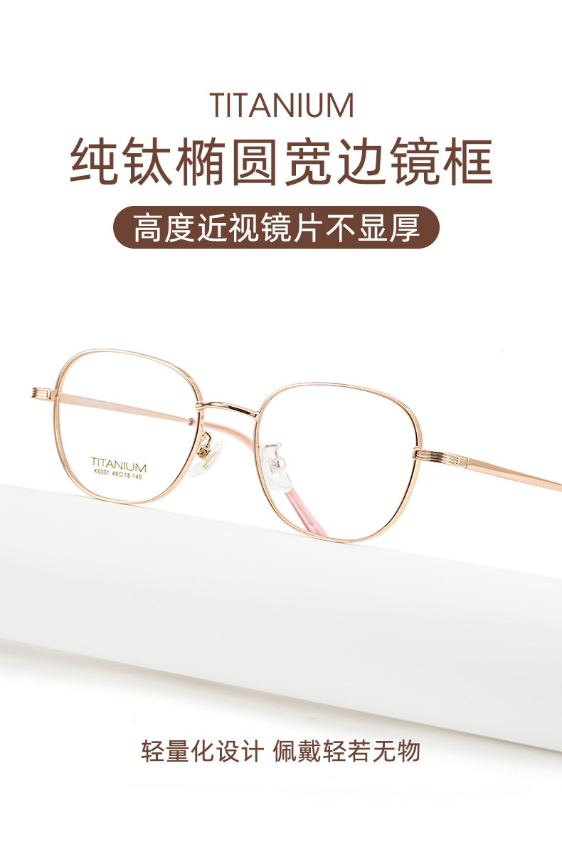 Xiaohongshu Small Square Round Frame Eyeglasses with High Prescription, Wide-Rimmed Myopia Glasses Frame, Ultra-Light Pure Titanium Eyeglasses Frame for Women