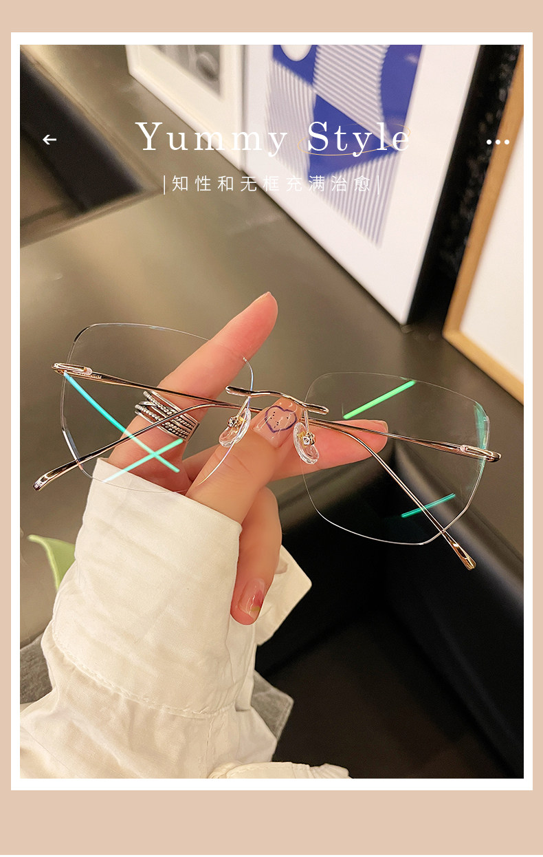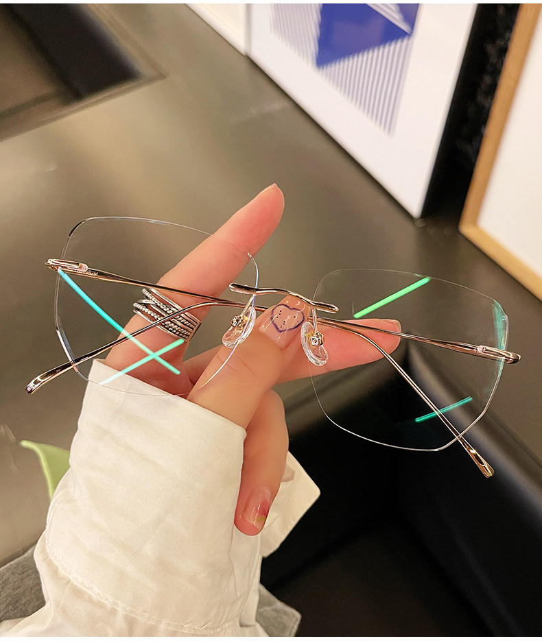 Ultra-Light Pure Titanium Rimless Glasses for Women with Nearsightedness, Can Be Customized with Prescription Lenses, Frameless Design That Makes the Face Appear Smaller, Trendy Korean Style