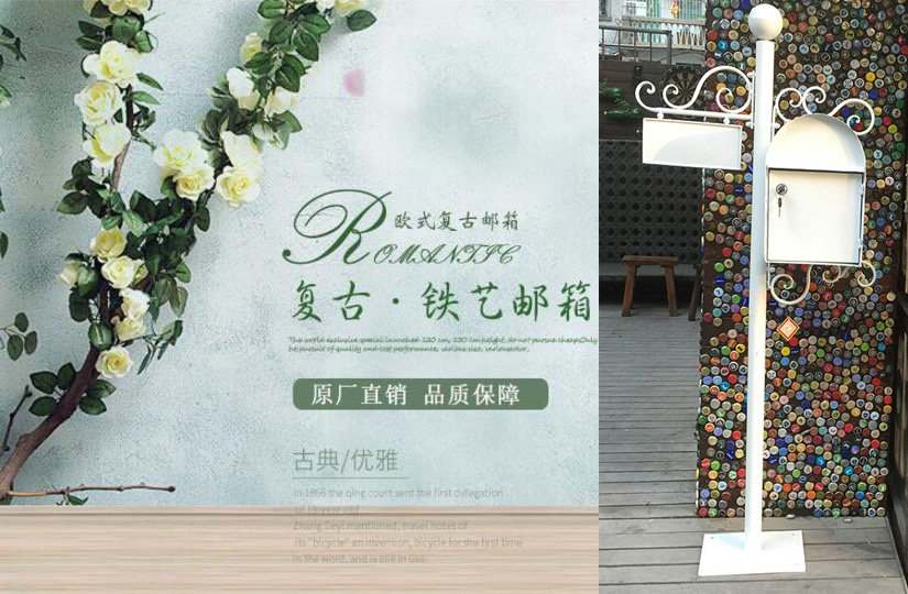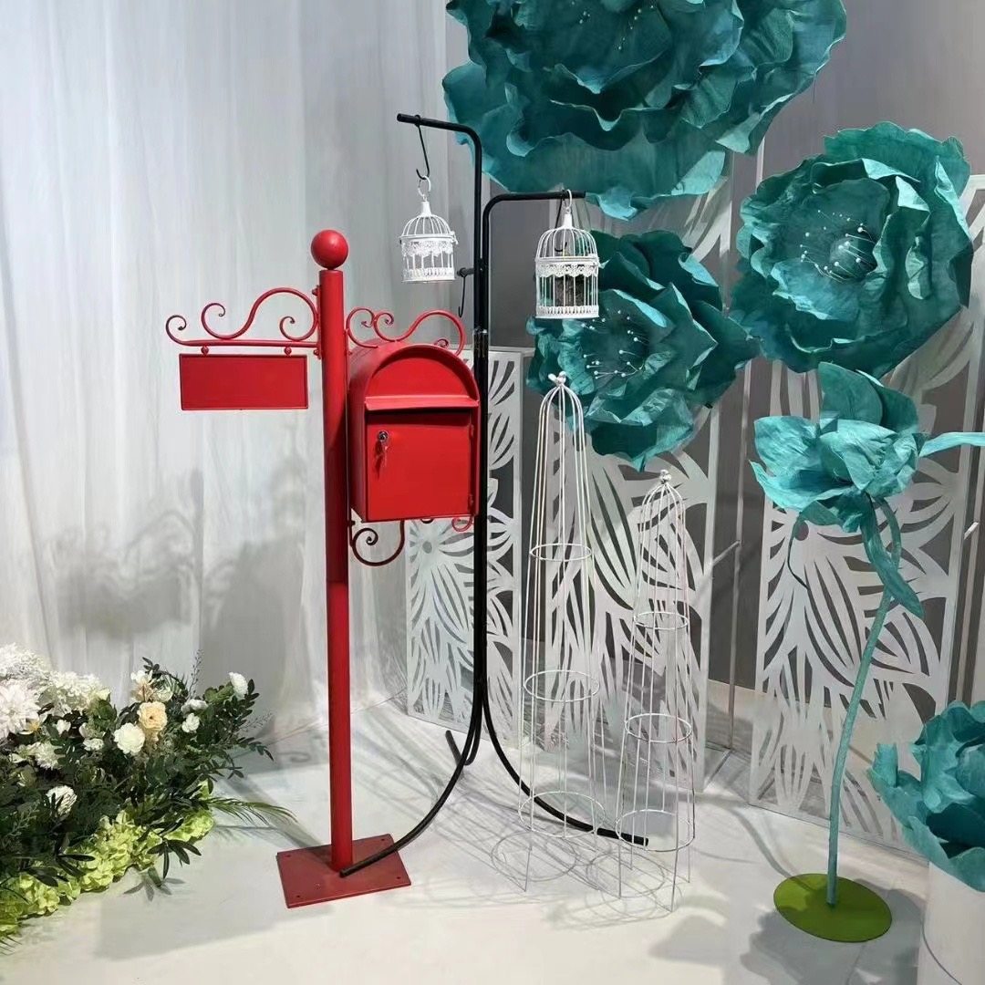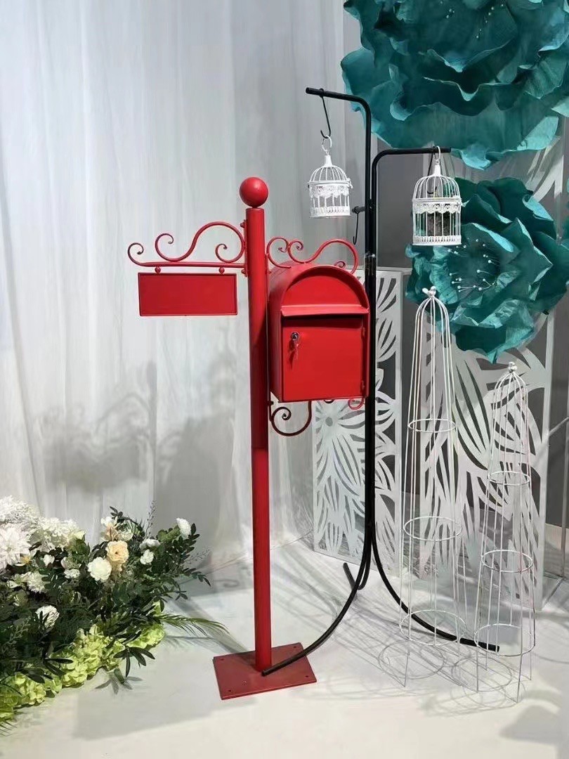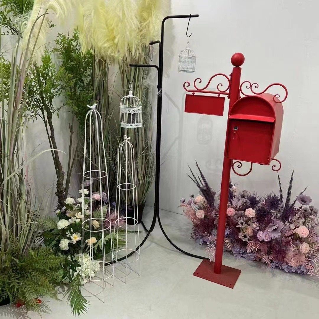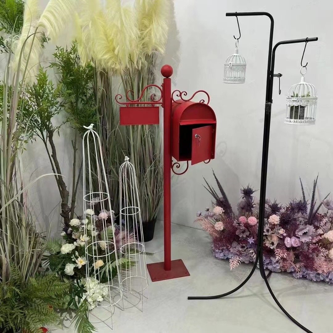 American-Style Retro Wrought Iron Mailbox with Lock, Outdoor Mail Box, Villa Mailbox Decoration Props,