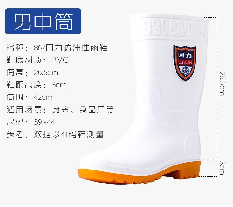 Warrior 867 White Oil-Resistant Rain Boots, Food Factory Sanitary Shoes, Canteen Work Shoes, Rubber Sole Rain Boots, Labor Protection Rubber Shoes
