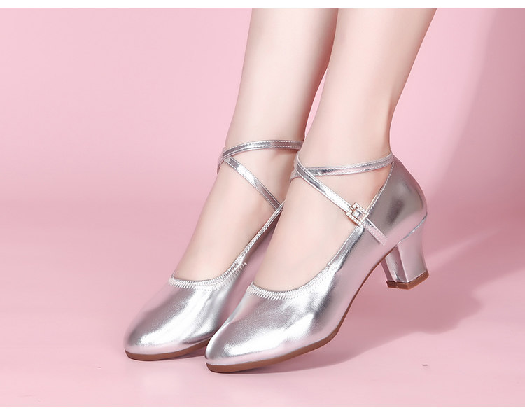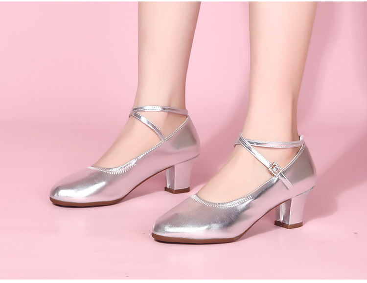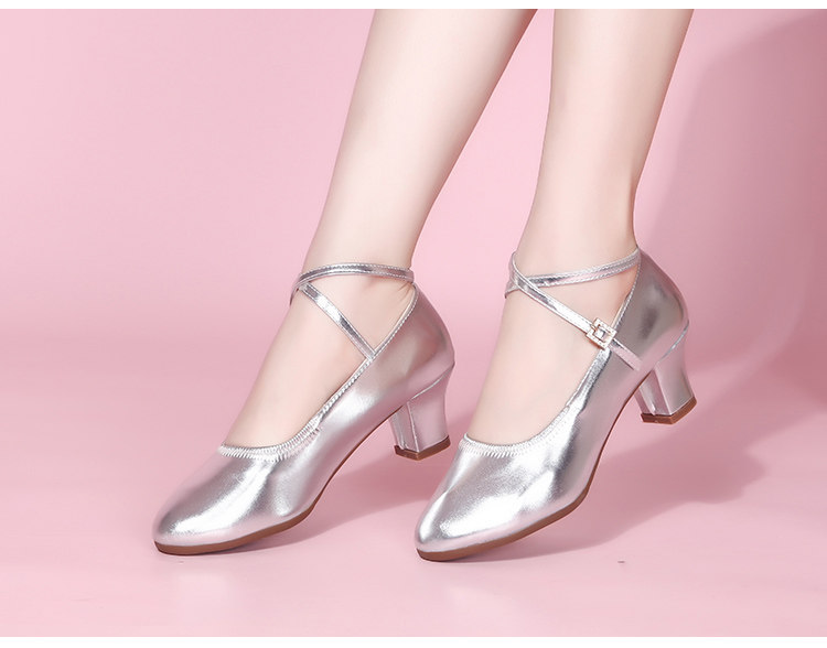 夏季中跟拉丁舞鞋女模特旗袍走秀高跟维族银色跳舞演出新疆舞蹈鞋