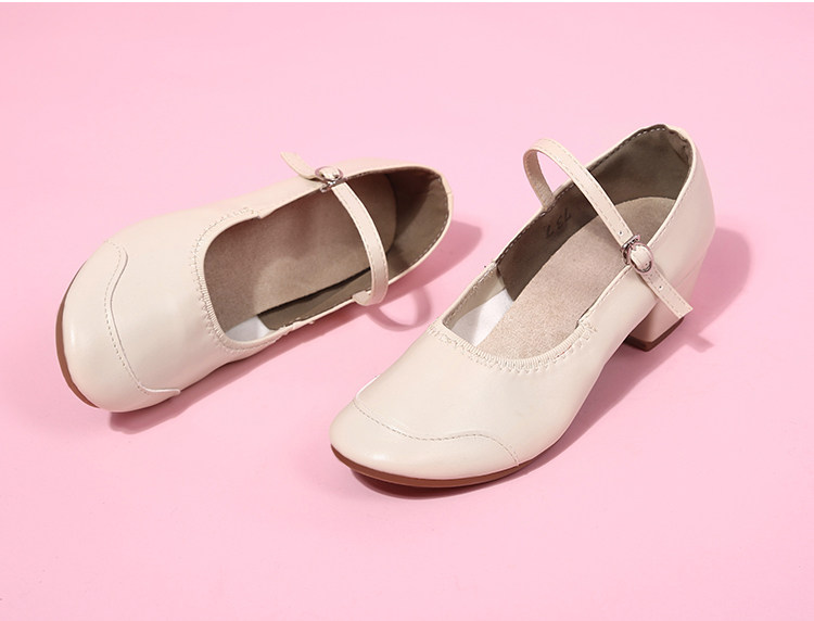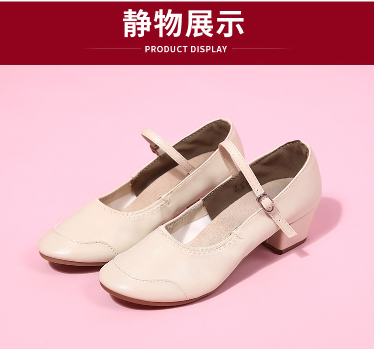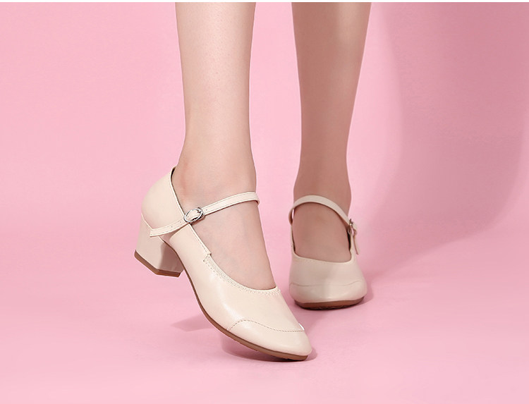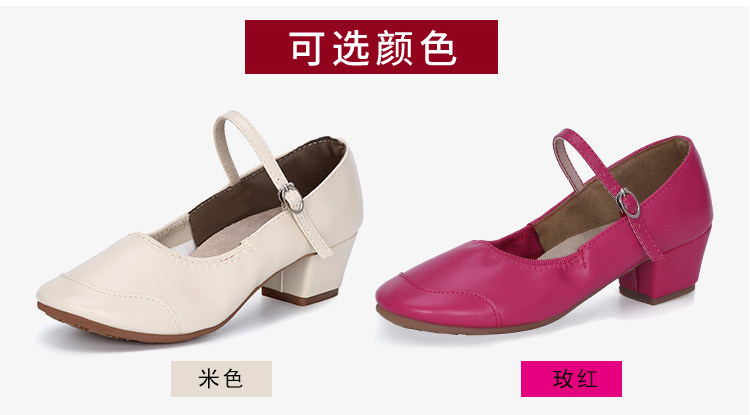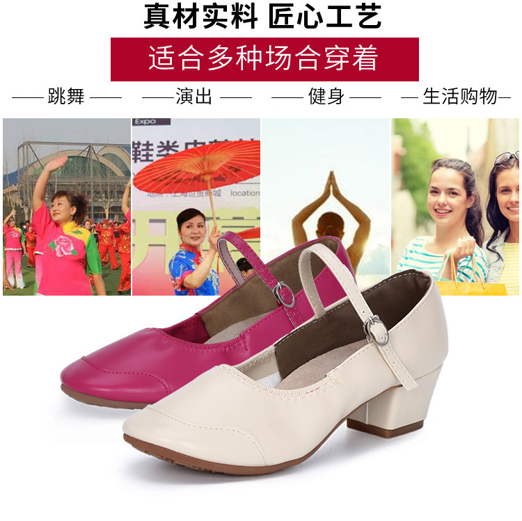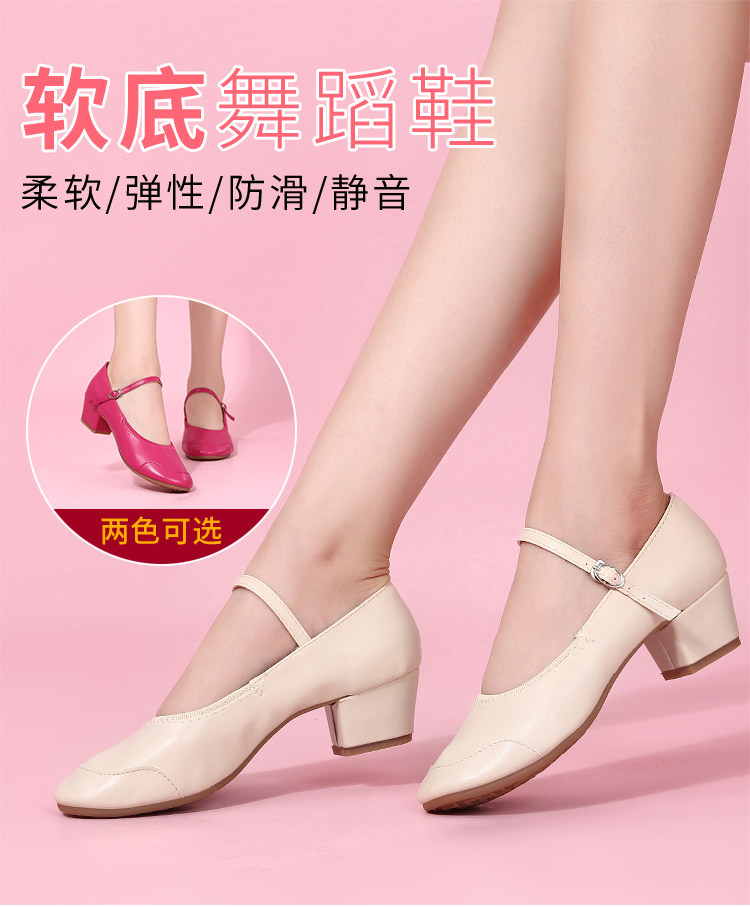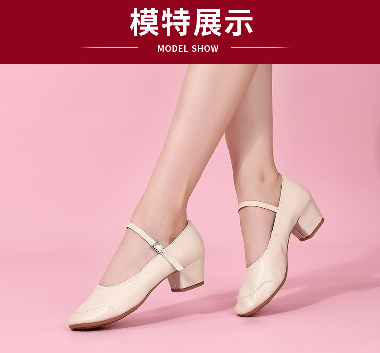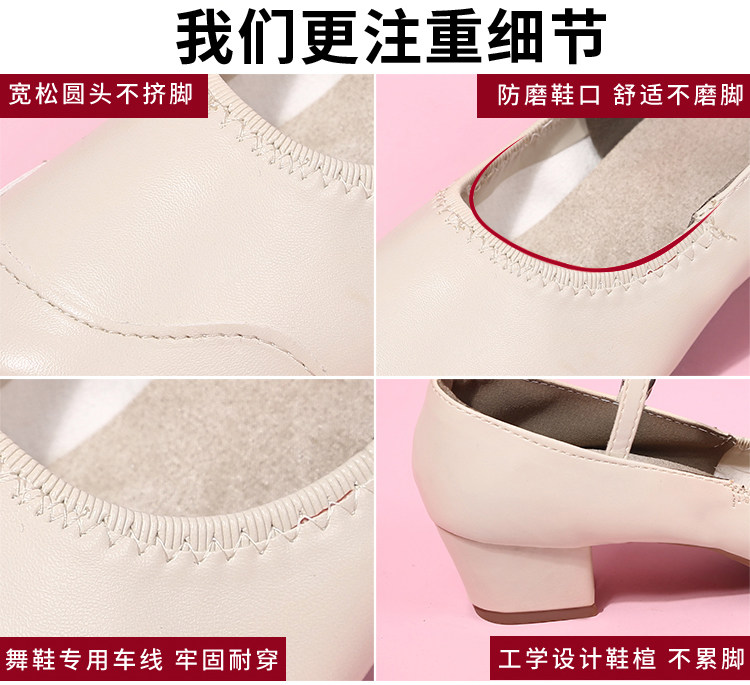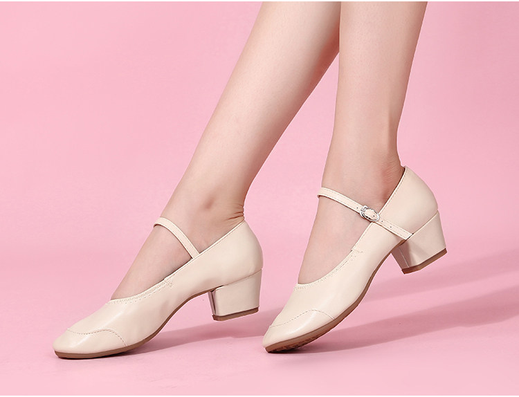 Genuine Leather Shallow Square Dancer Shoes Soft Sole Mom Dance Shoes Thick Heel Ballroom Dance Shoes New Beige Dance Shoes