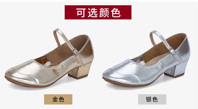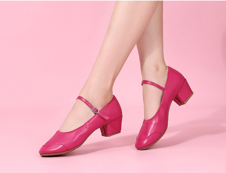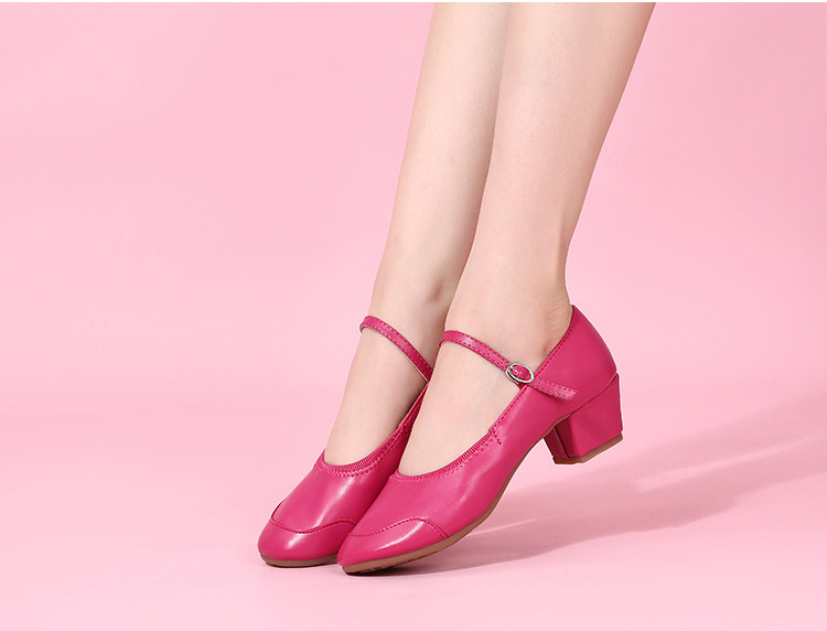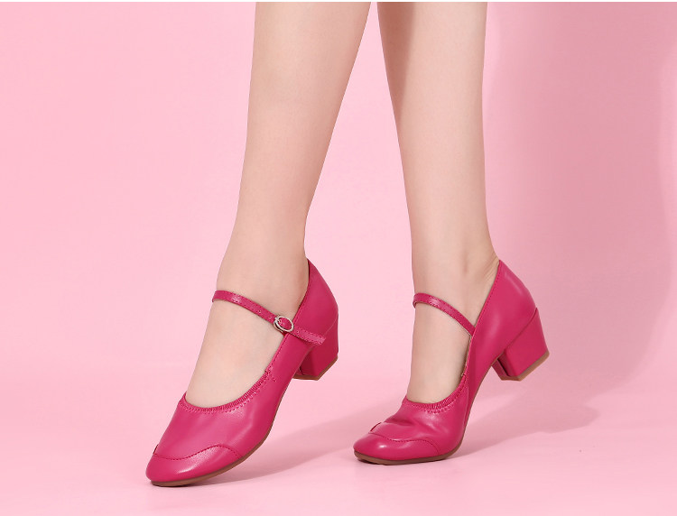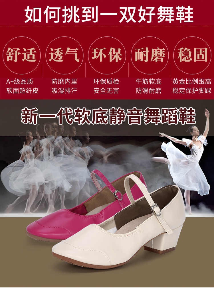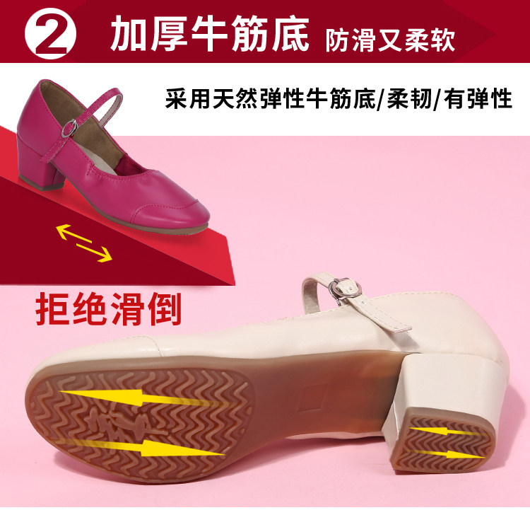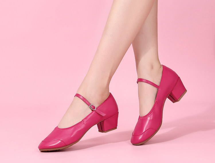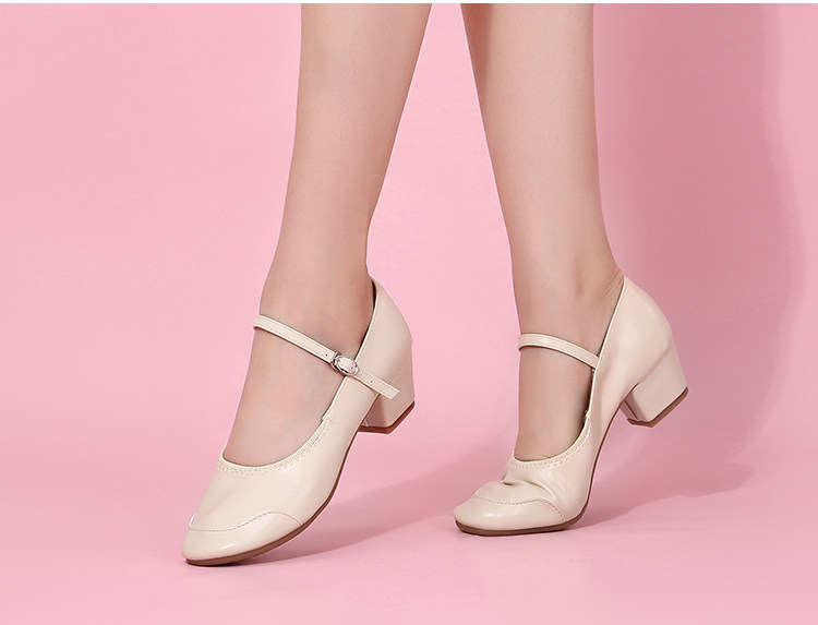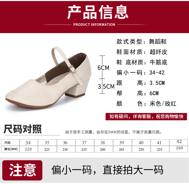 Genuine Leather Shallow Square Dancer Shoes Soft Sole Mom Dance Shoes Thick Heel Ballroom Dance Shoes New Beige Dance Shoes