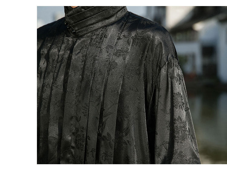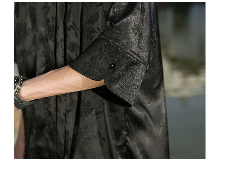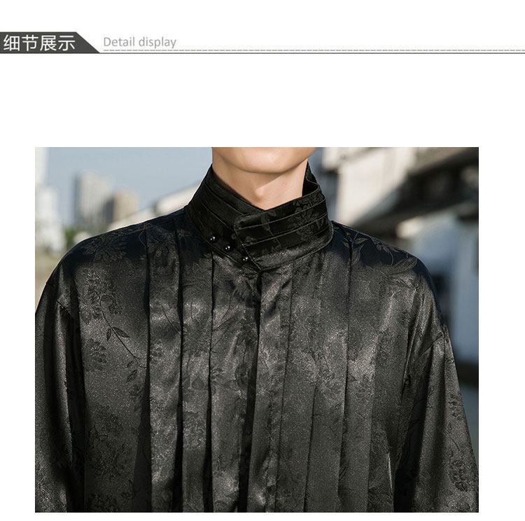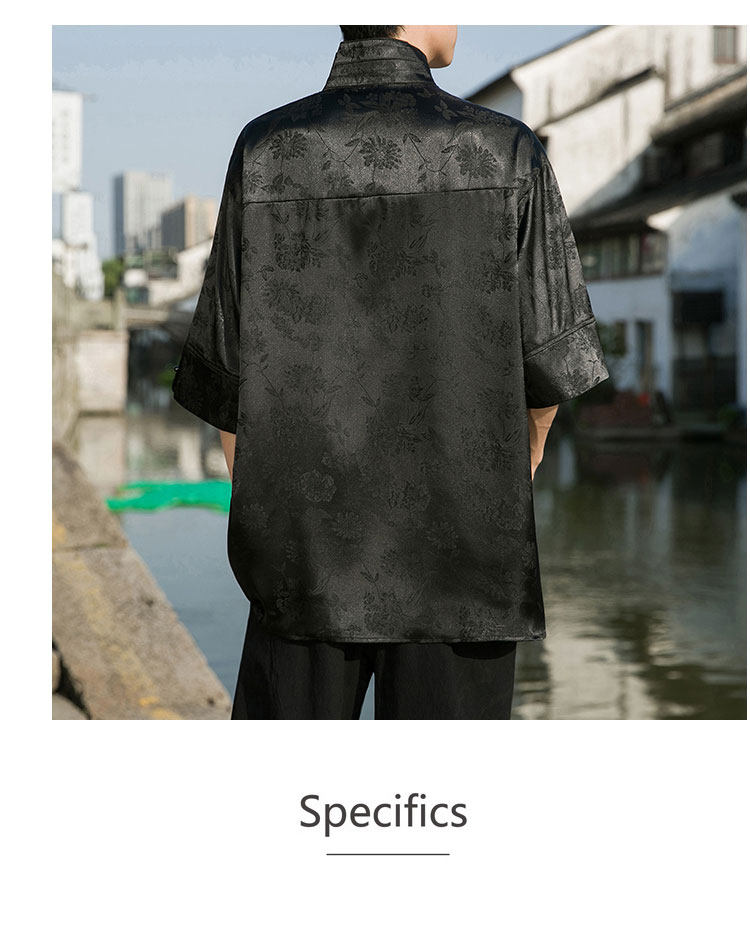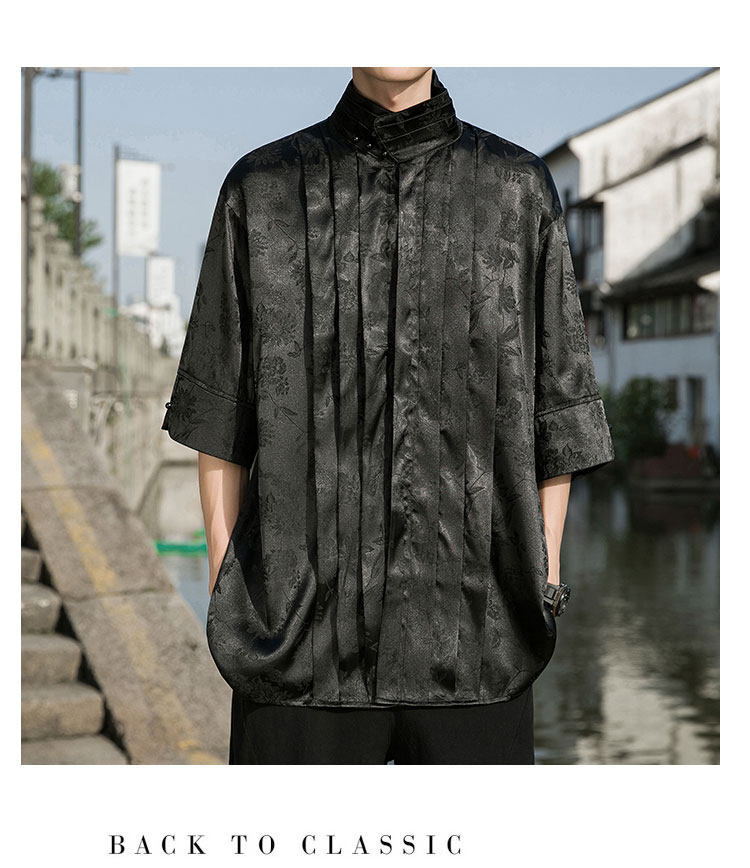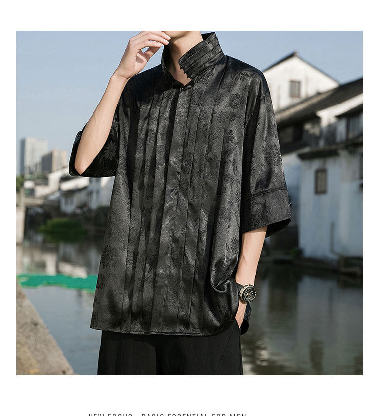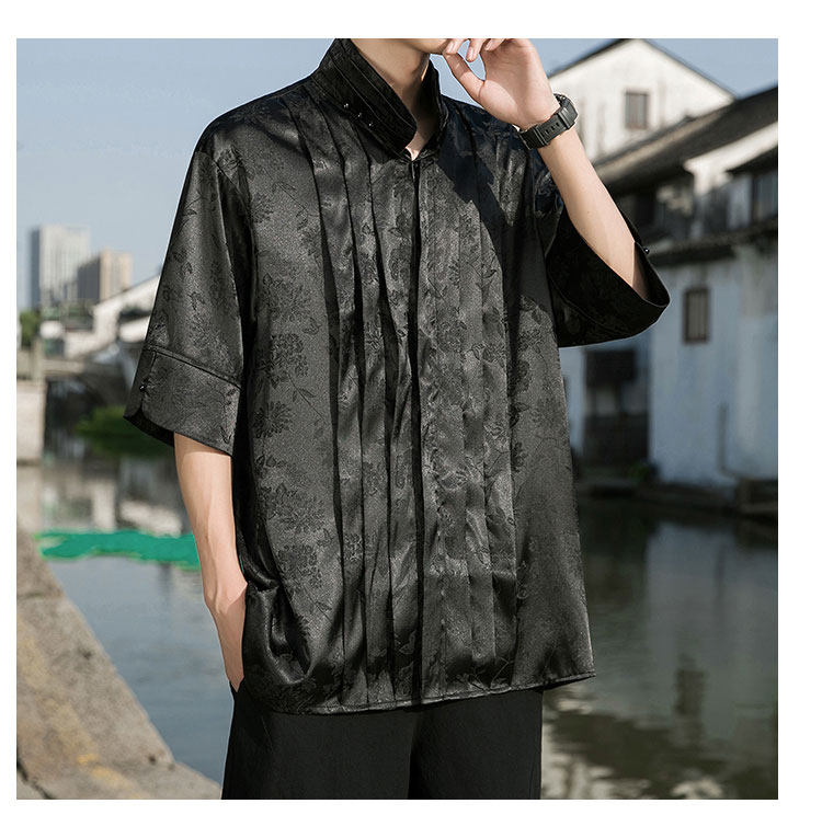 新中式冰丝薄款短袖衬衫男小众设计感衬衣复古提花缎面高级感上衣
