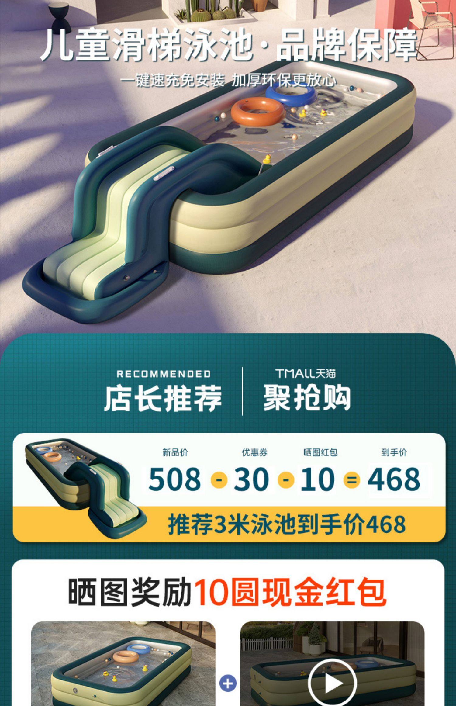 充气游泳池家用宝宝加厚泳游池儿童小孩户外大型滑梯家庭折叠水池