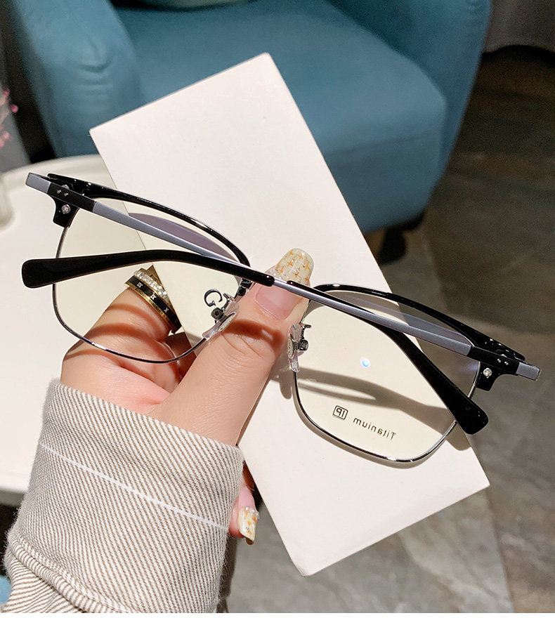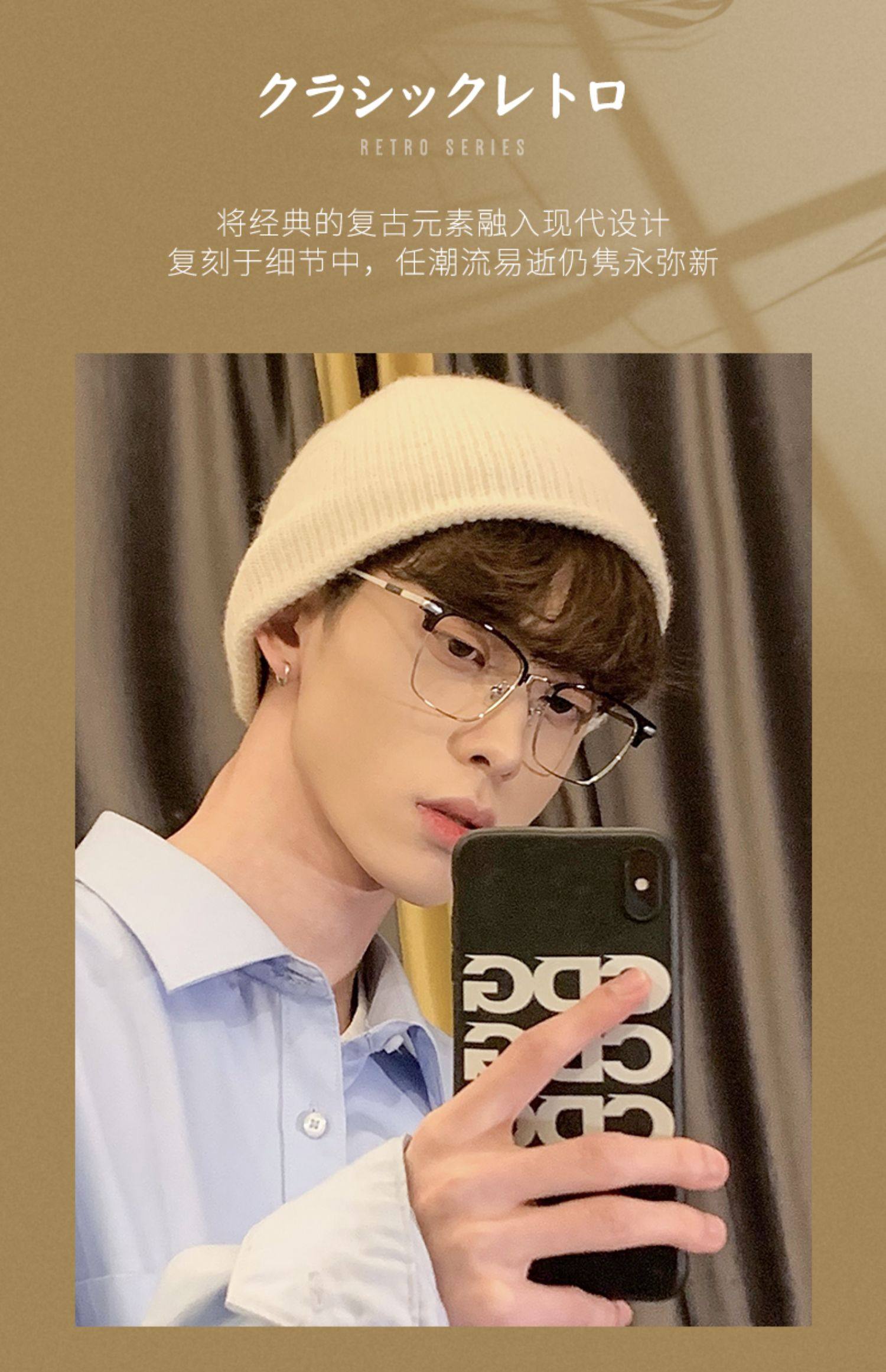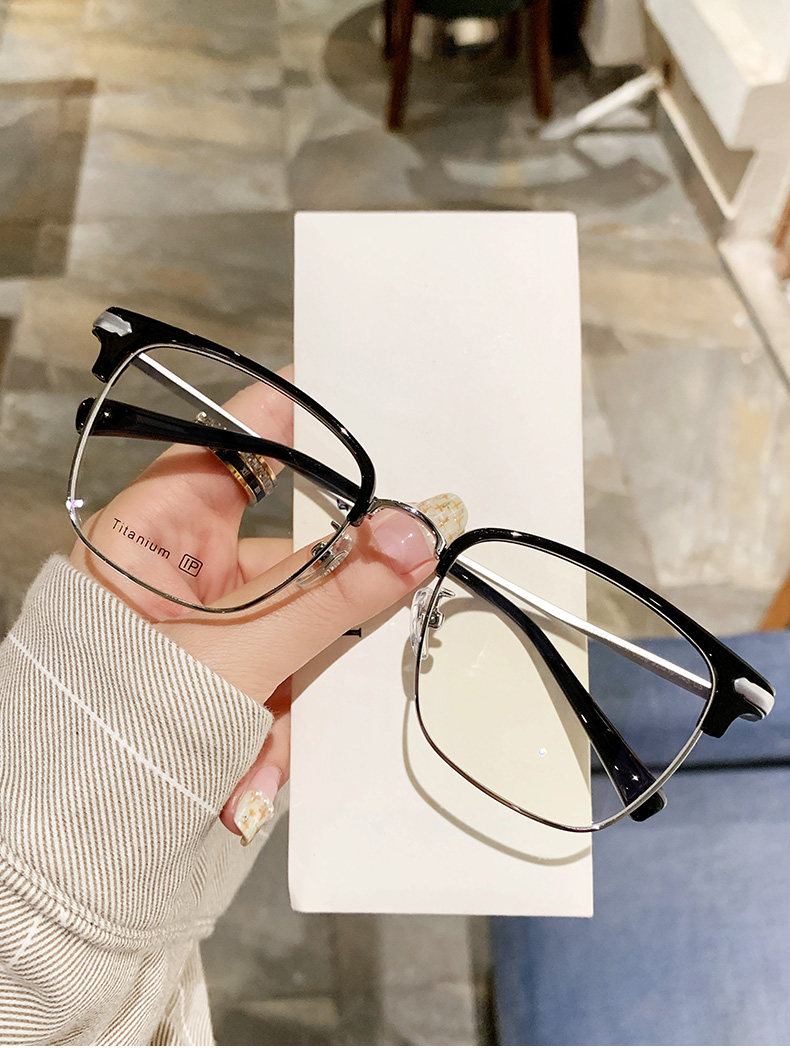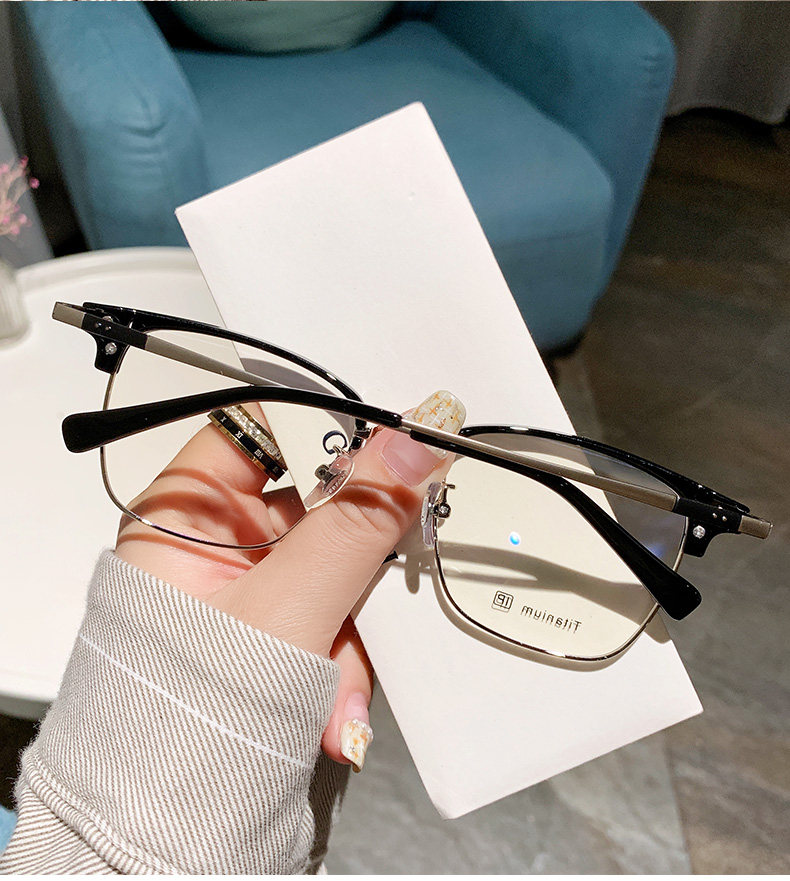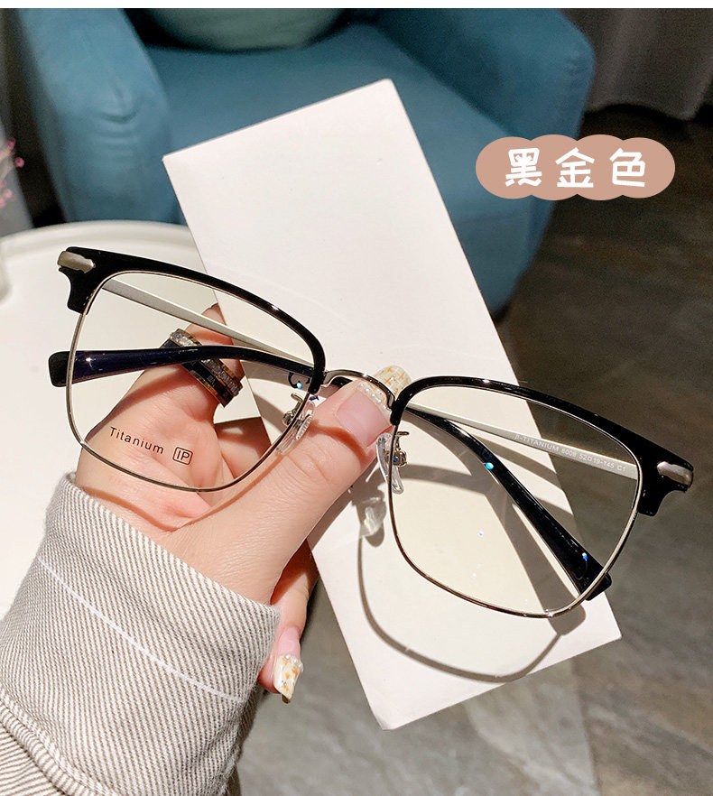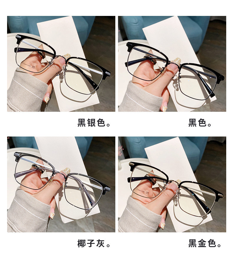 纯钛半框眼镜近视男款可配度数防蓝光丹阳眼睛框架理工潮男士痞帅