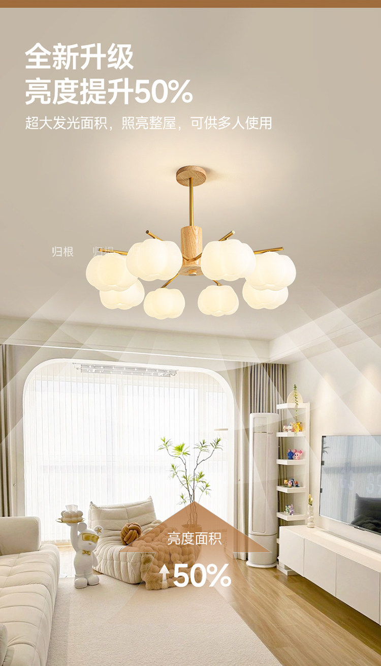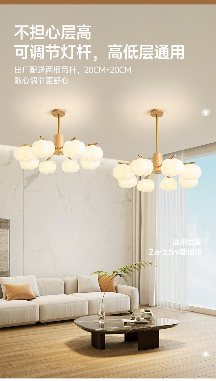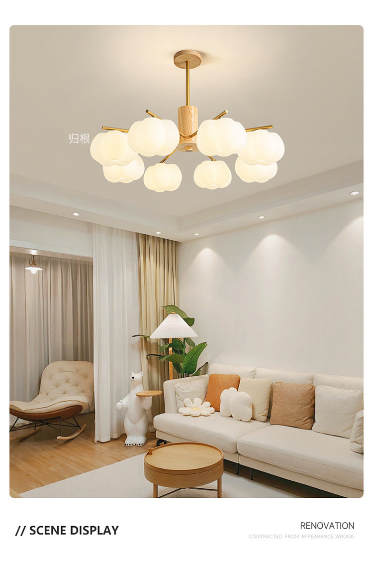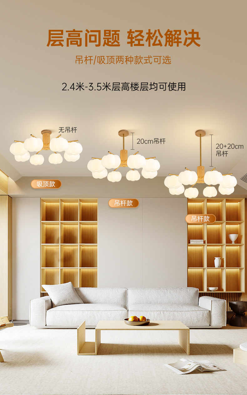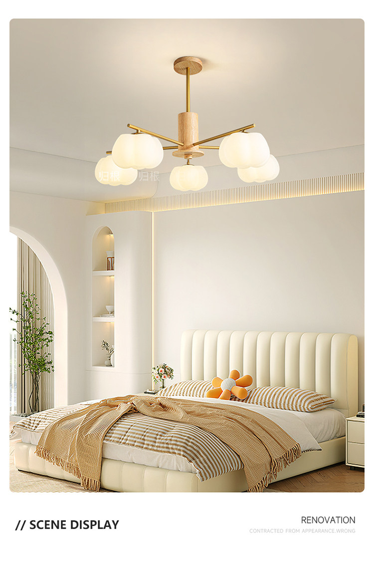 Living Room Main Light Chandelier Cream Wood Style Lighting 2026 New Japanese Style Bedroom Dining Room Persimmon Cotton Lamp
