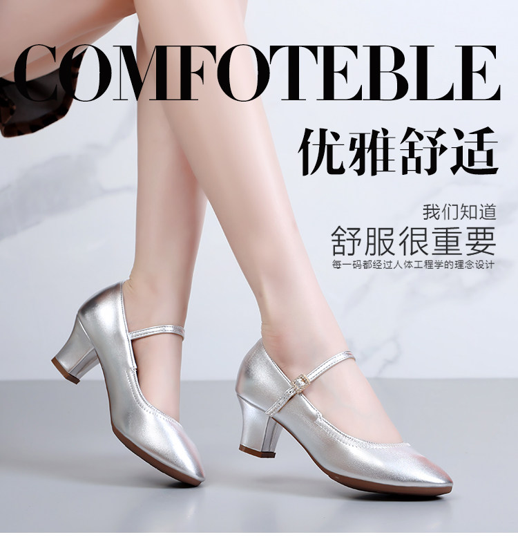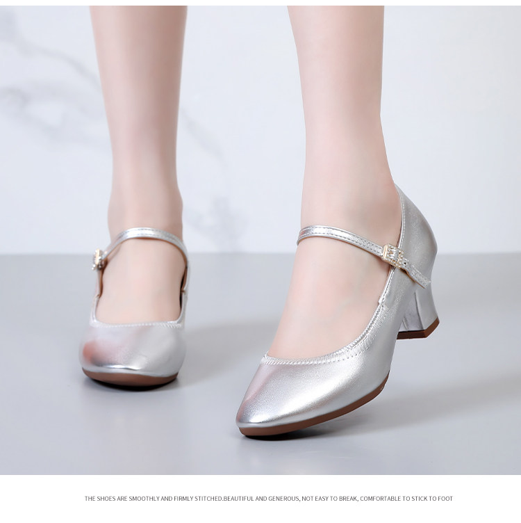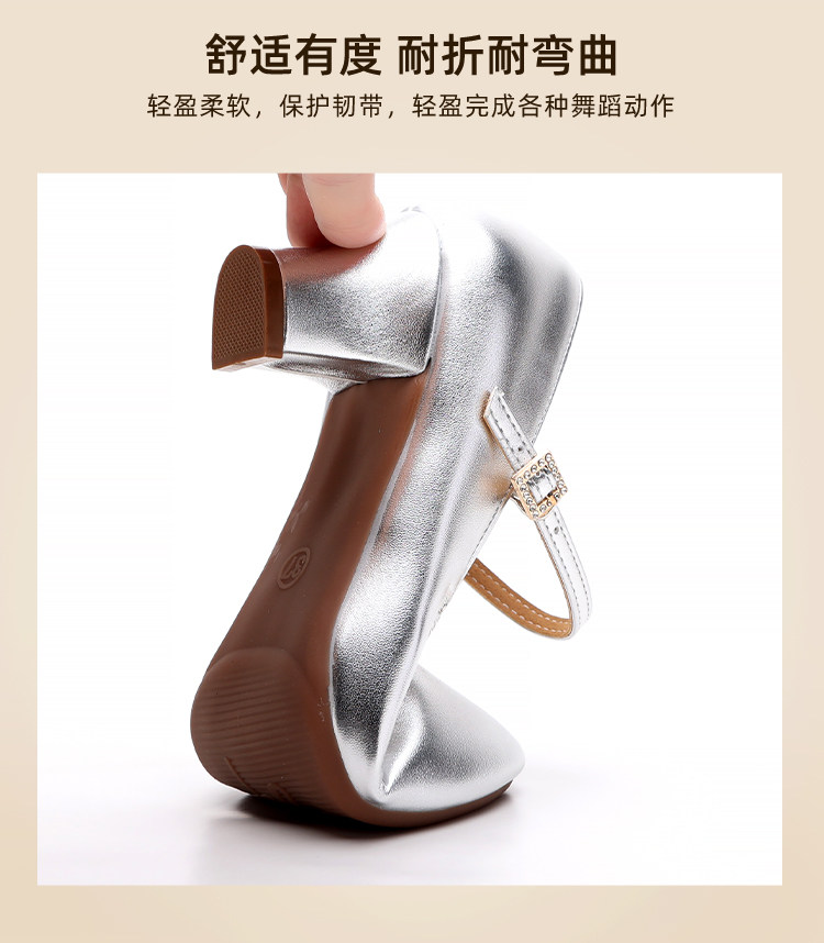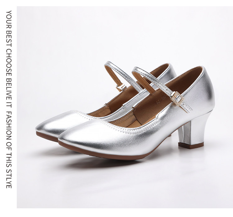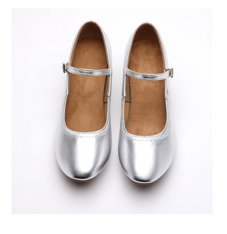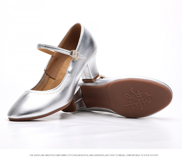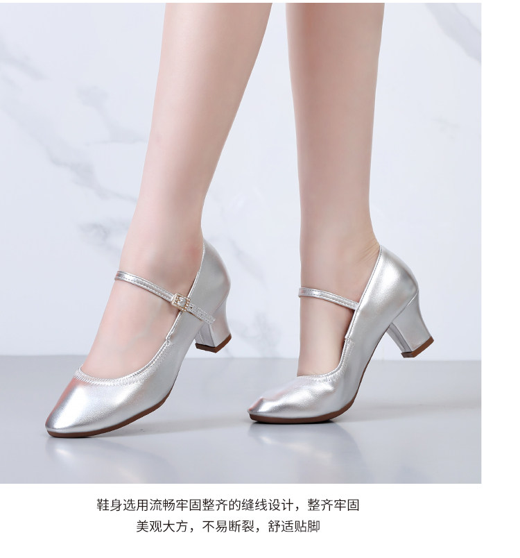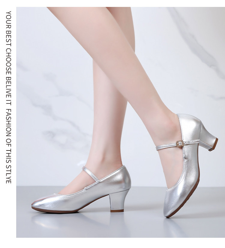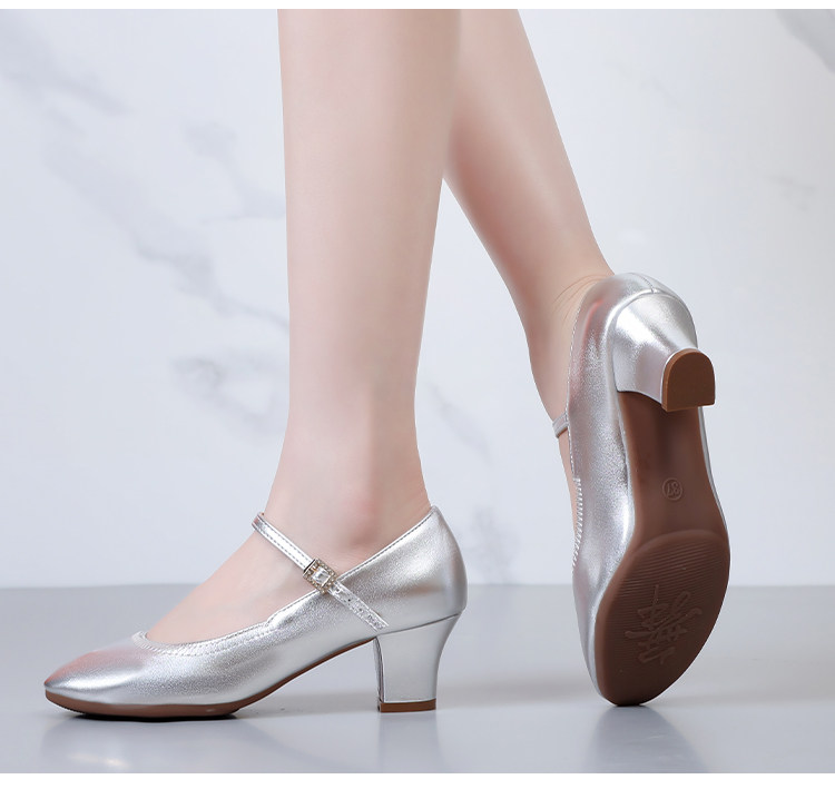 Chaussures de danse à bout rond gris argenté, chaussures de danse carrées en cuir souple, chaussures en cuir de danse de salon à talons hauts de printemps et d'automne, chaussures de danse à talons argentés