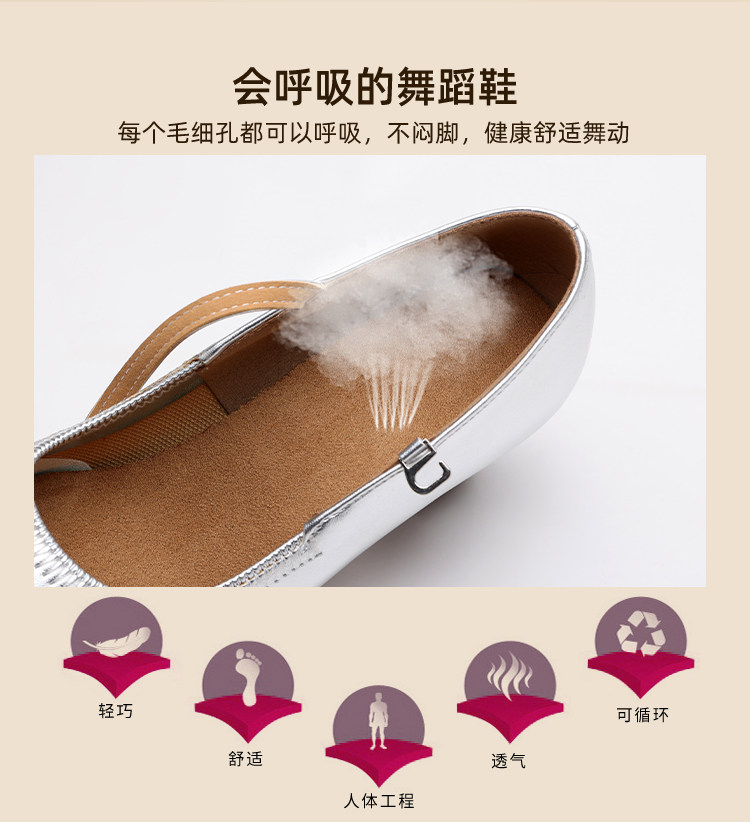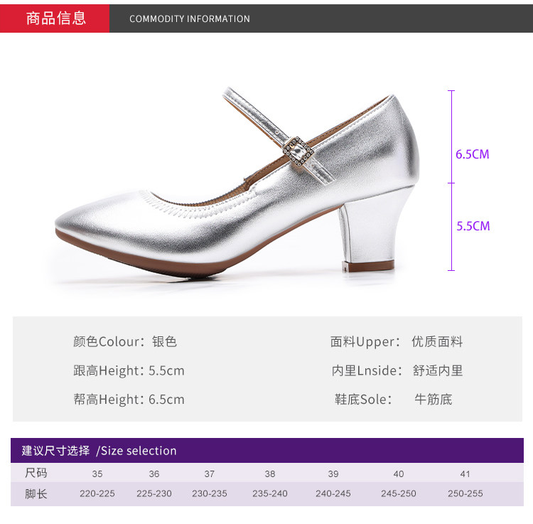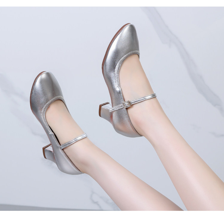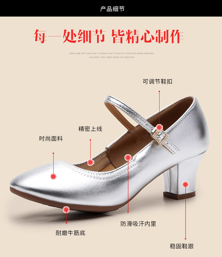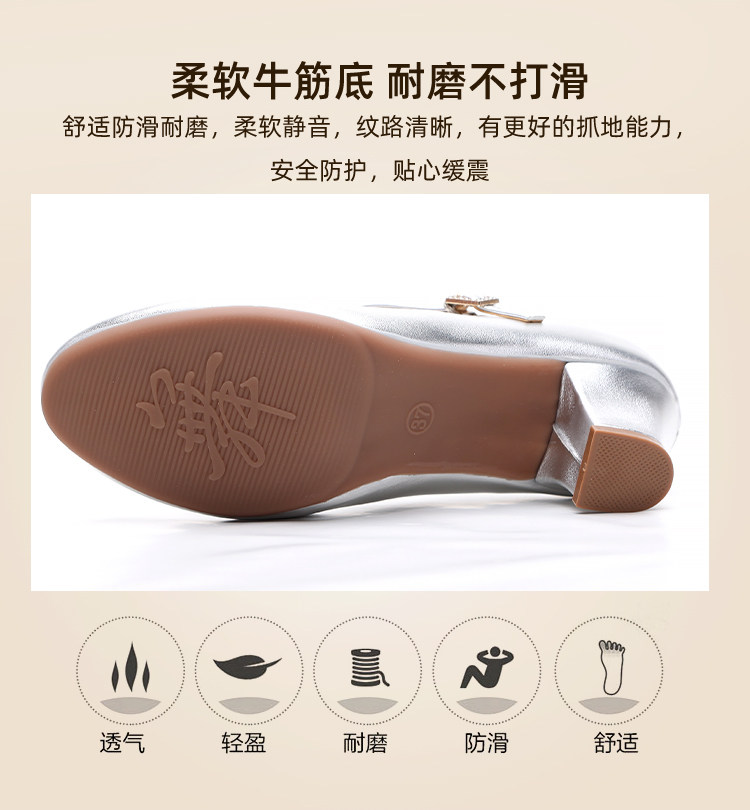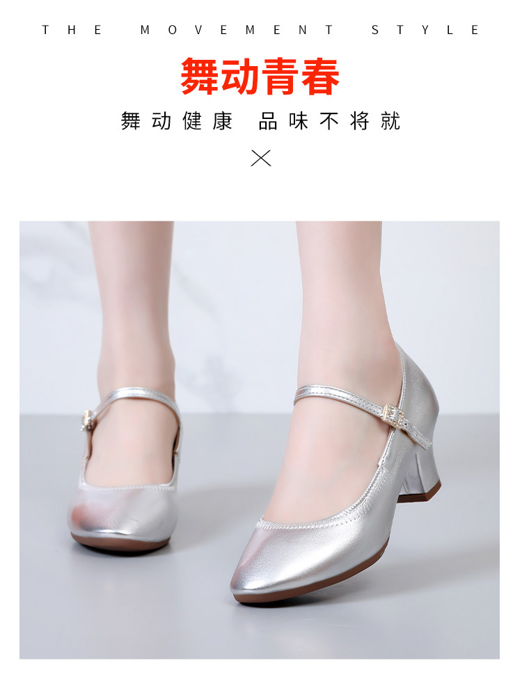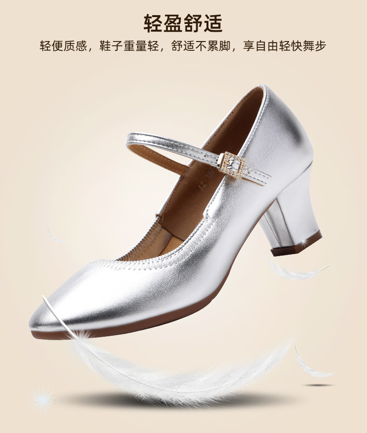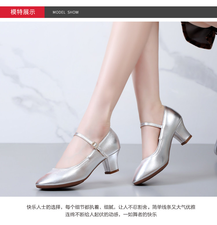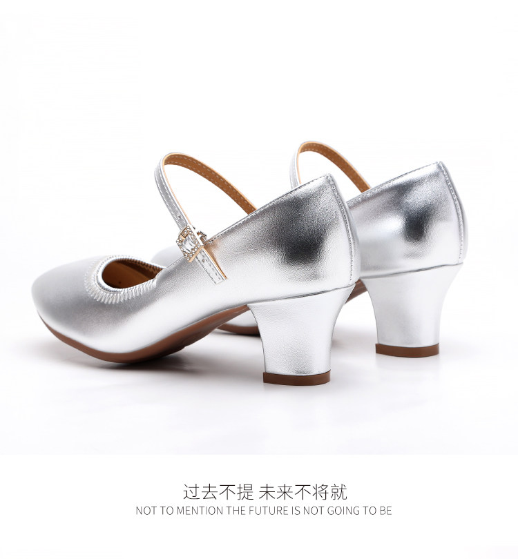 Chaussures de danse à bout rond gris argenté, chaussures de danse carrées en cuir souple, chaussures en cuir de danse de salon à talons hauts de printemps et d'automne, chaussures de danse à talons argentés