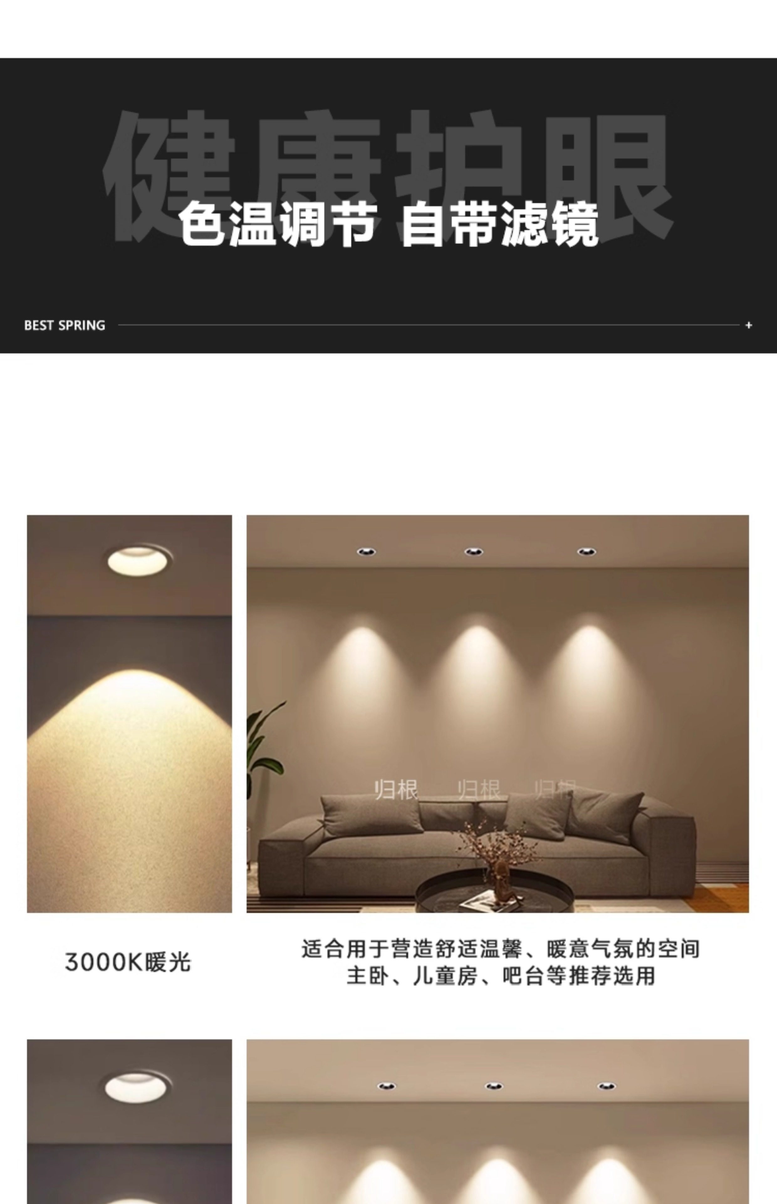 小山丘射灯嵌入式led天花防眩光洗墙灯窄边孔灯客厅护眼灯具