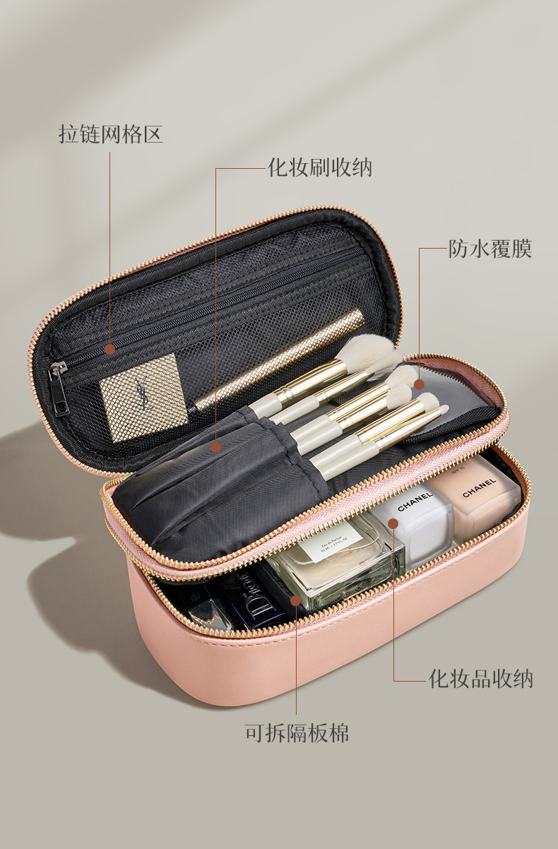 Цветовая классификация Розовая двухслойная сумка для хранения большой емкости [может вместить кисти для макияжа],Розовая двухслойная сумка + светодиодное зеркало