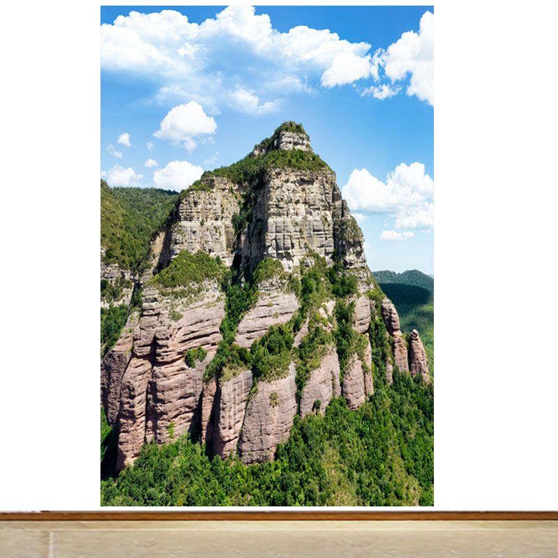 竖版蓝天白云高山大山靠山风景海报自粘画客厅玄关背景墙招财墙画